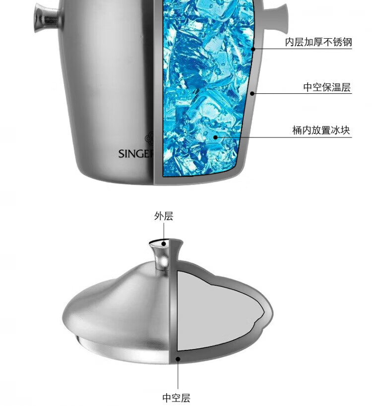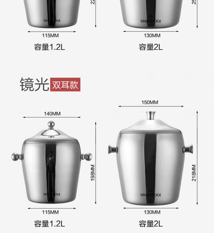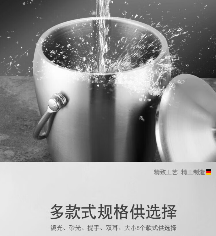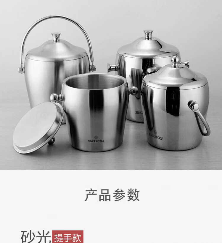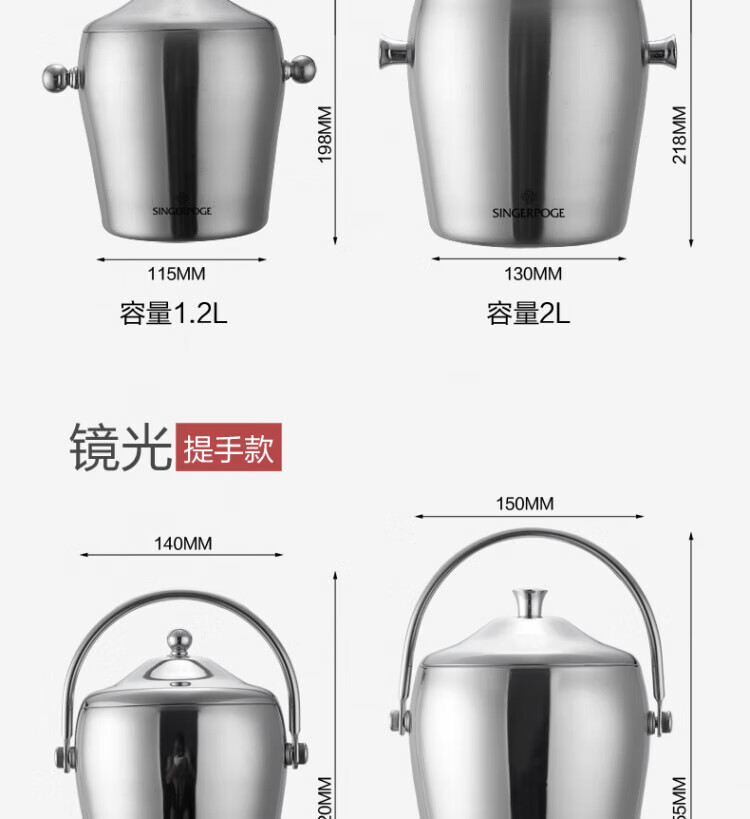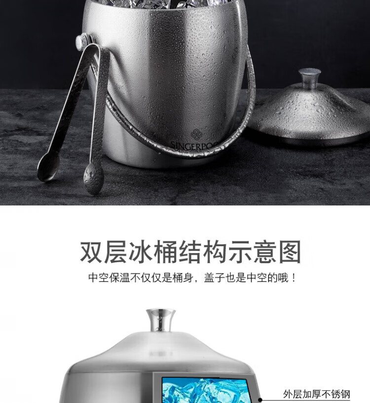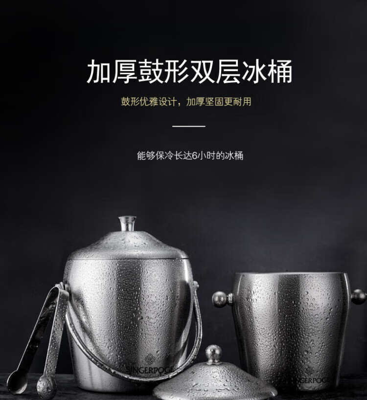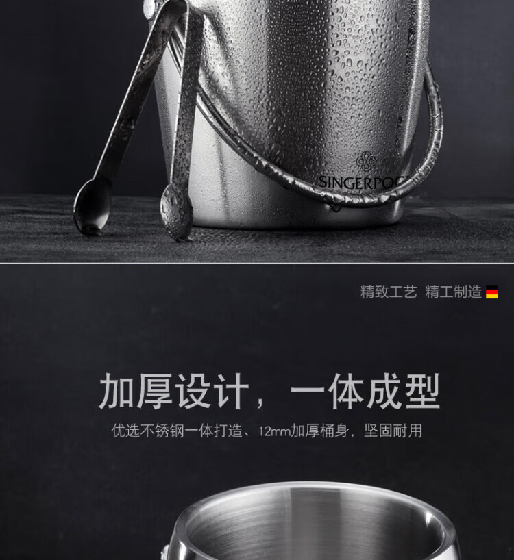 WCZ German high-end stainless steel ice bucket champagne bucket red wine iced beer ice bucket ktv bar insulated ice wine bucket sanded handle ice bucket with ice clip set 1.2L