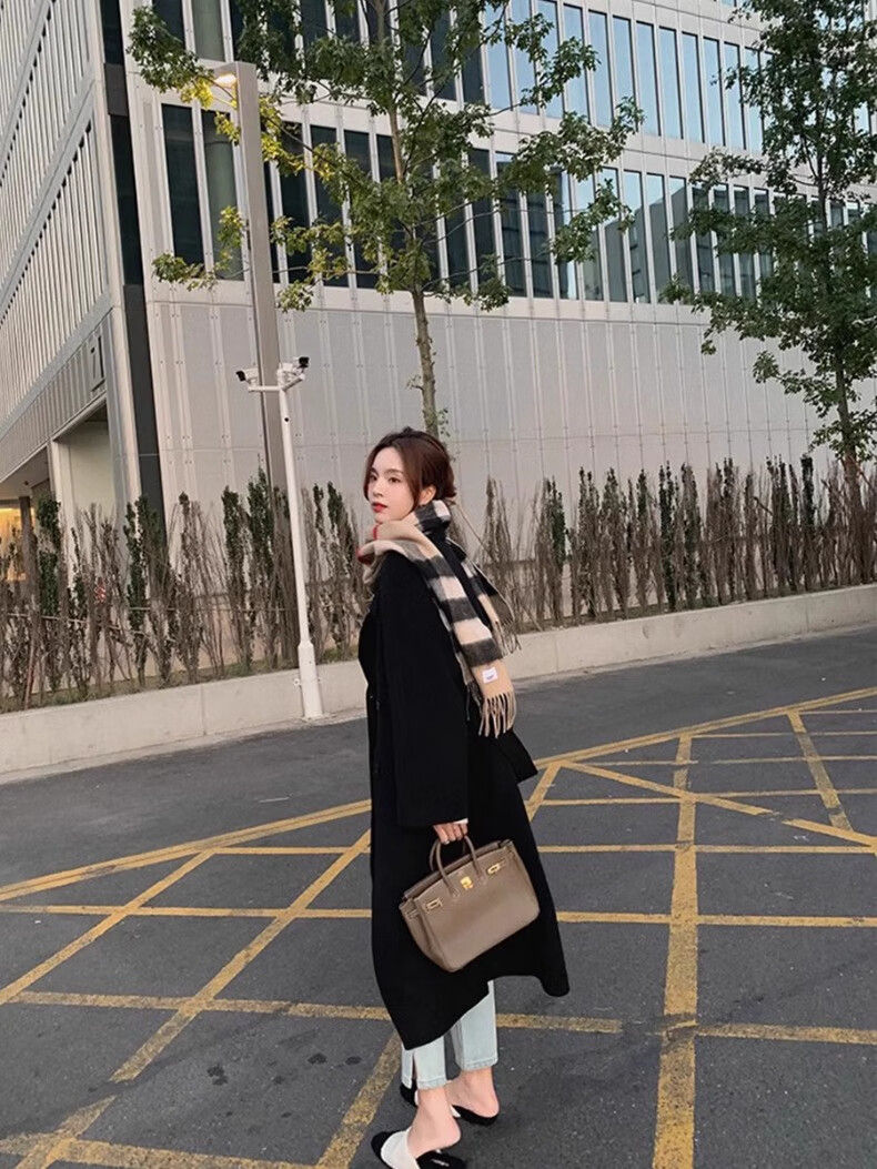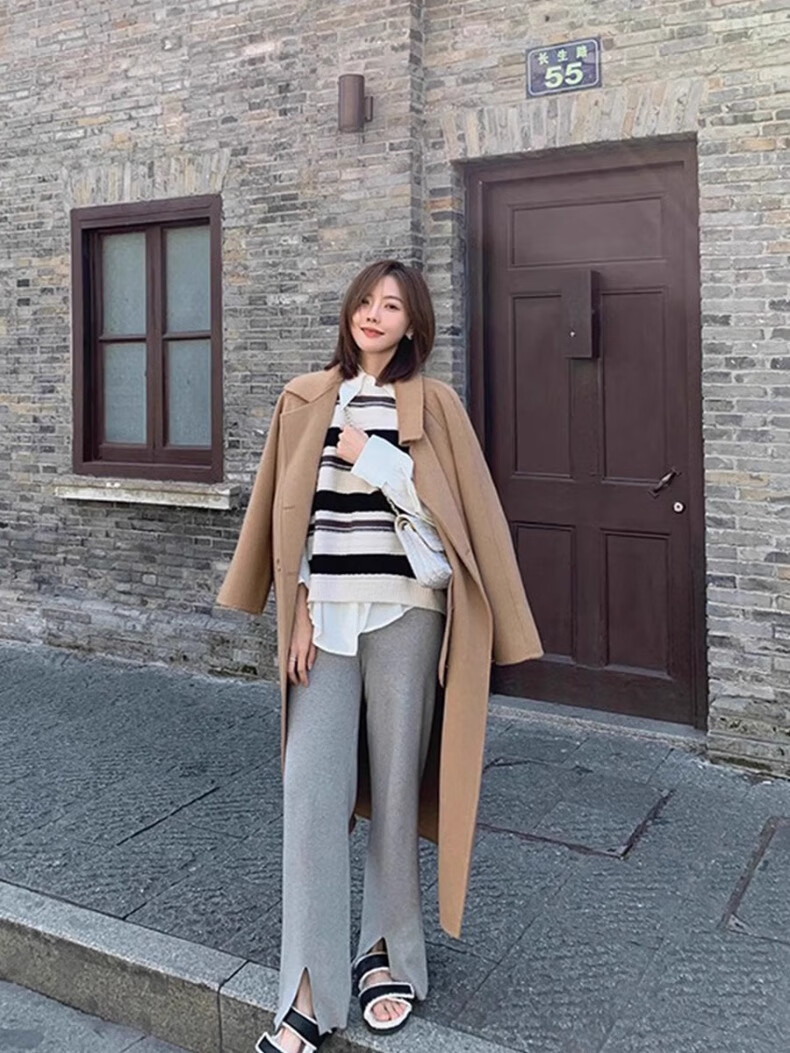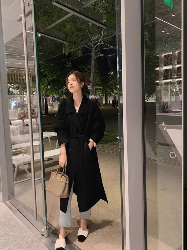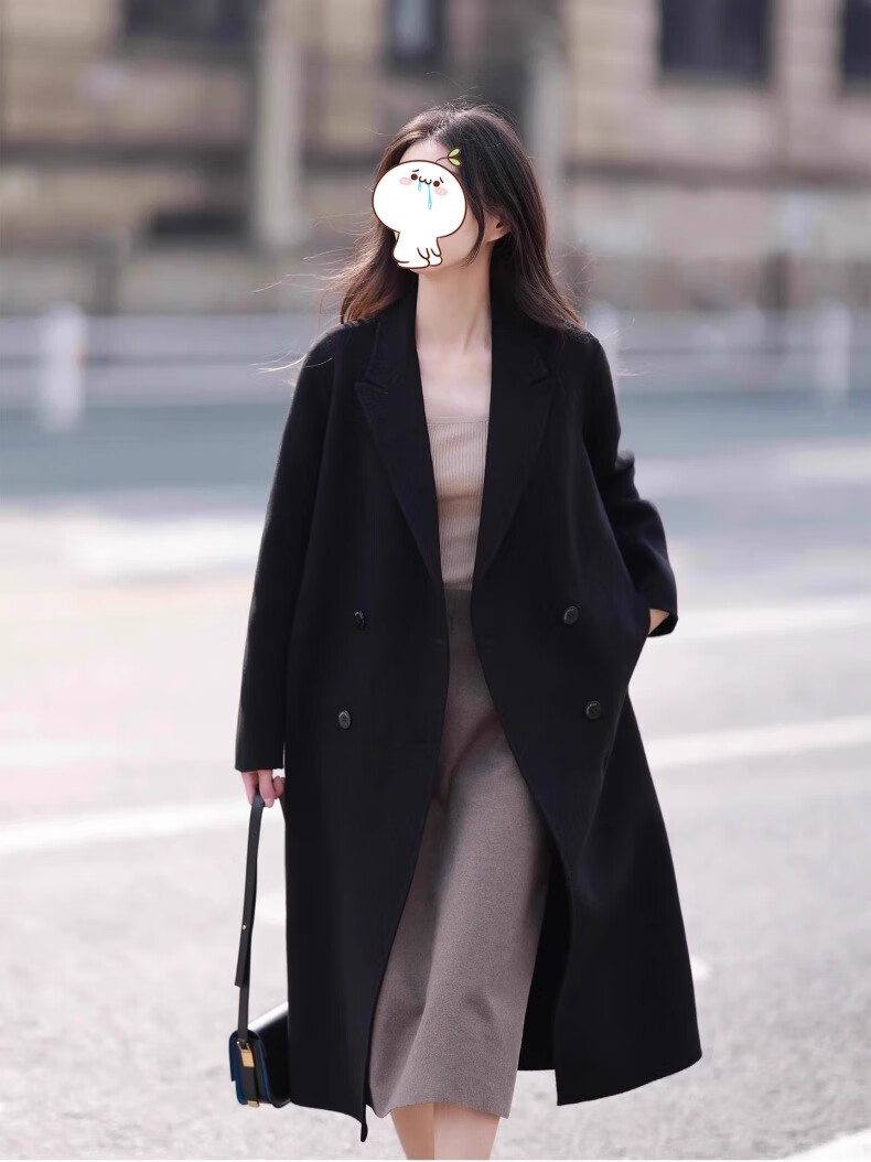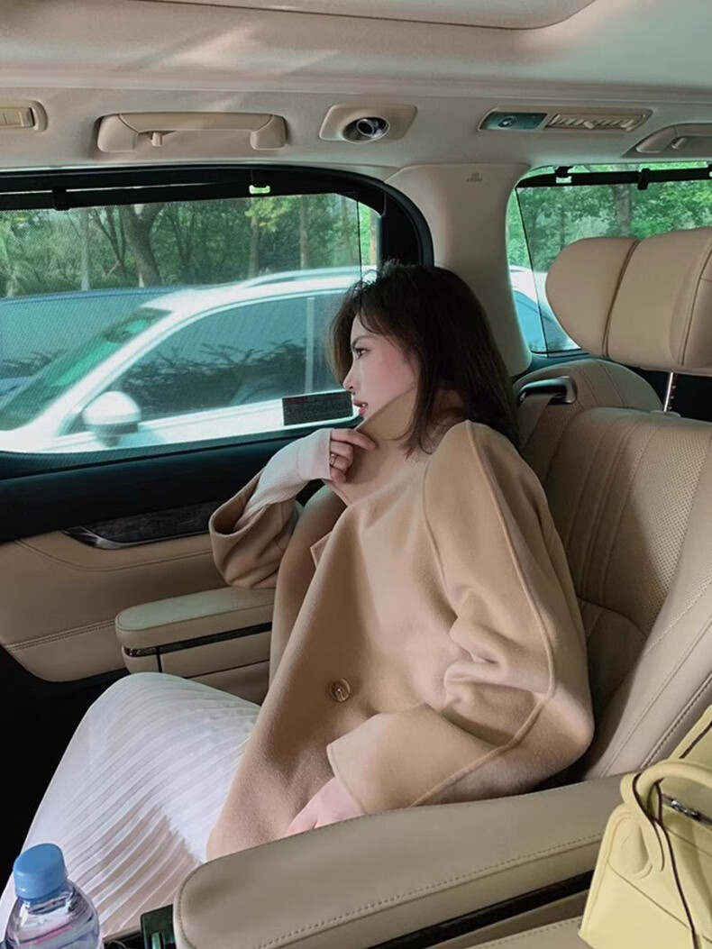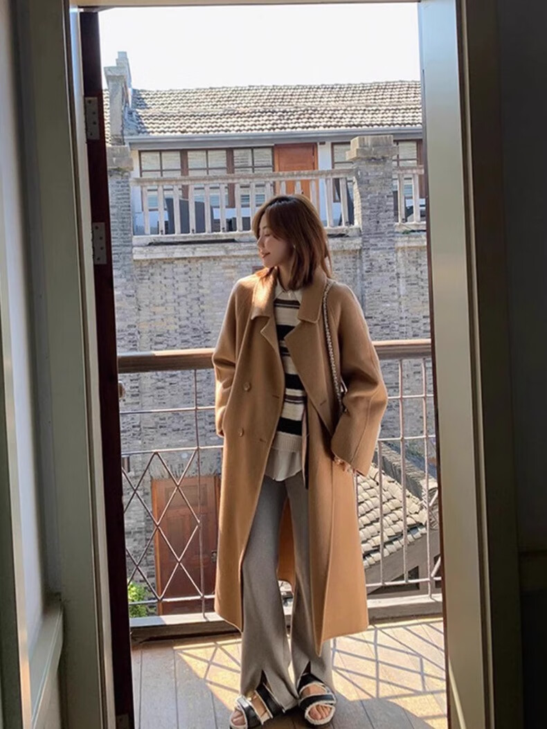 KMZOE double-sided fleece wool coat for women loose 2025 autumn and winter new style small over-the-knee wool coat off-white S 105-120 catties