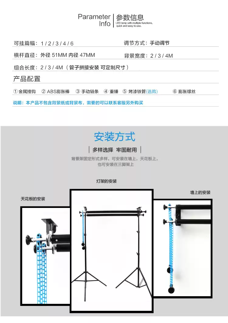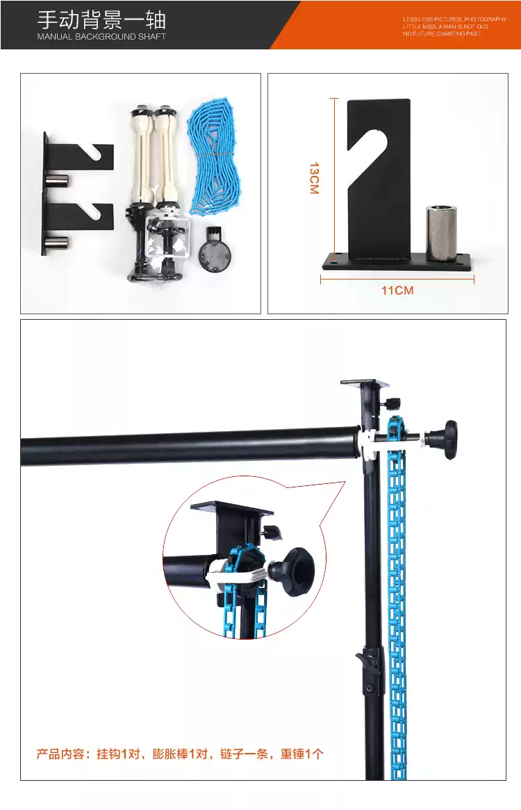 Lancaihe manual background axis photography equipment gantry photo studio studio reel lift background paper cloth light background frame 1 axis + a set of 3 meters tube