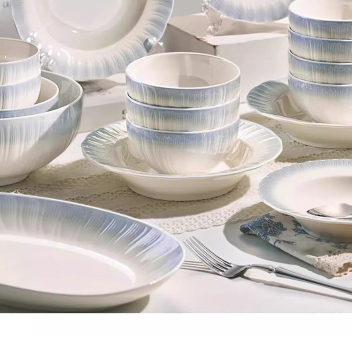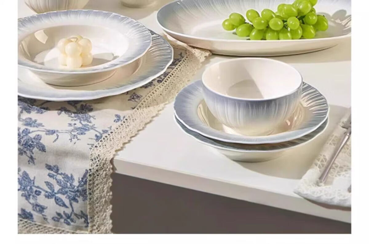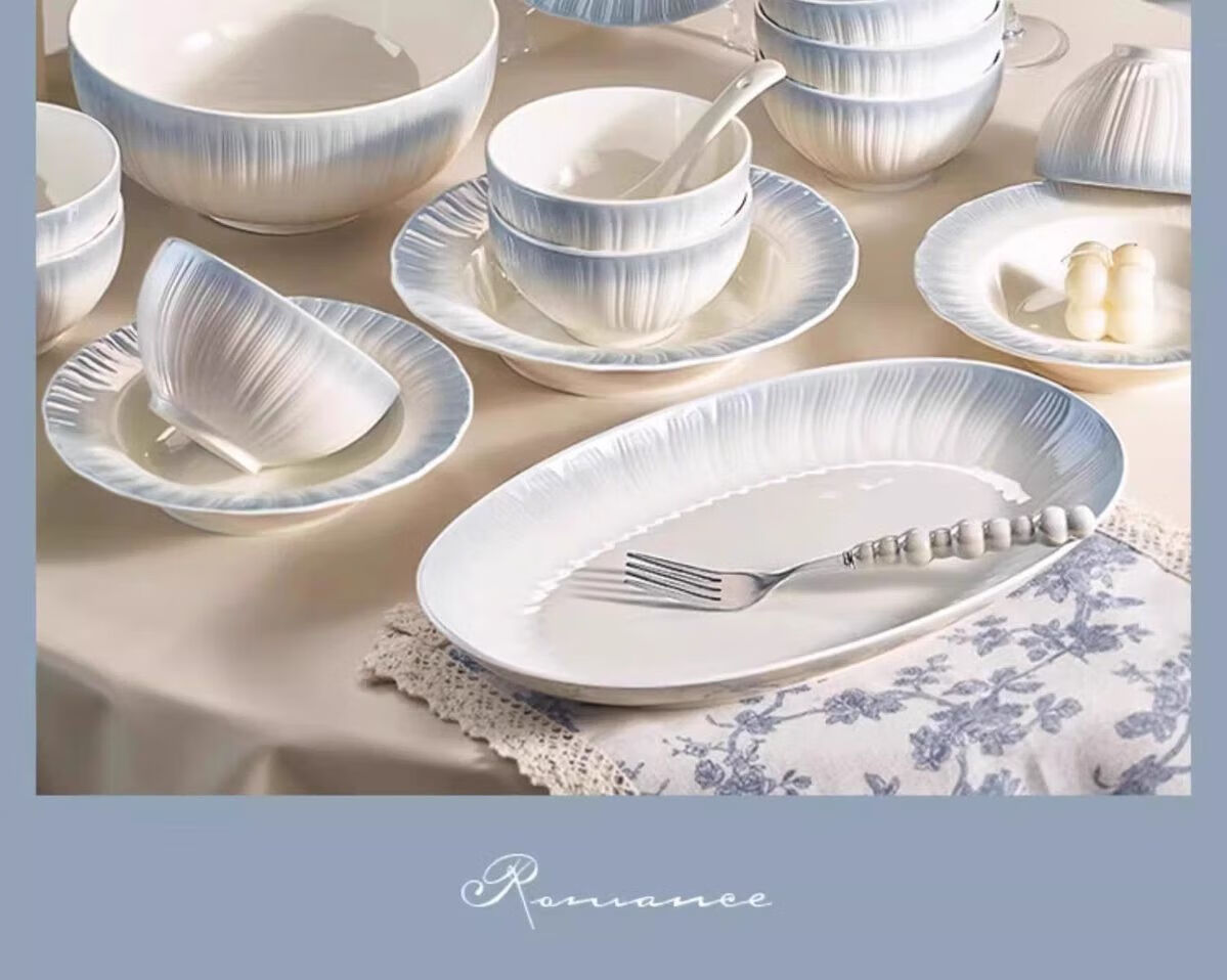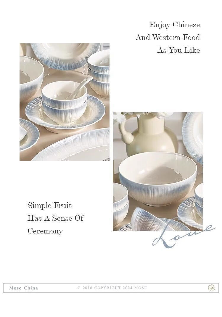 Runhua Nian underglaze color bowl and dish set for home 2025 new tableware, high-looking bowls and plates for moving into a new home, bowls, chopsticks and bowls as gifts, Yaohe, 40-piece set for eight people (microwave dishwasher compatible)