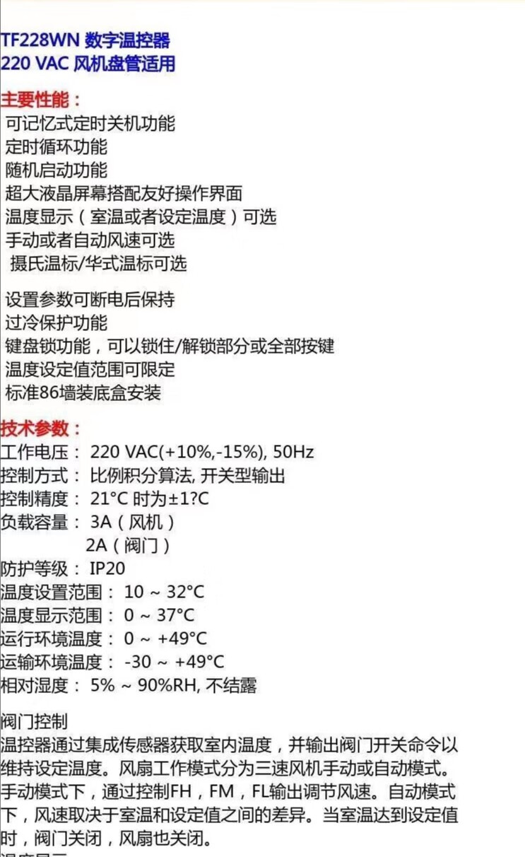 Honeywell LCD thermostat TF228WN central air conditioning panel fan coil controller three-speed switch WL8B2WB_B, two-pipe (new style)