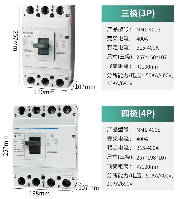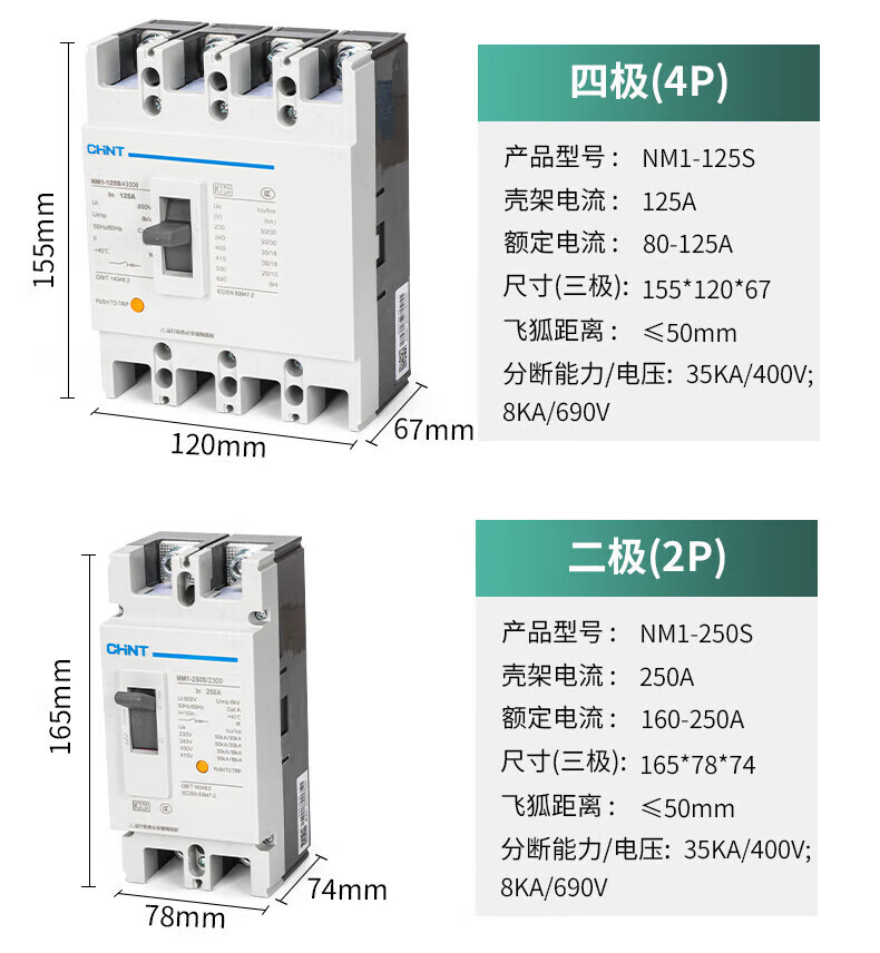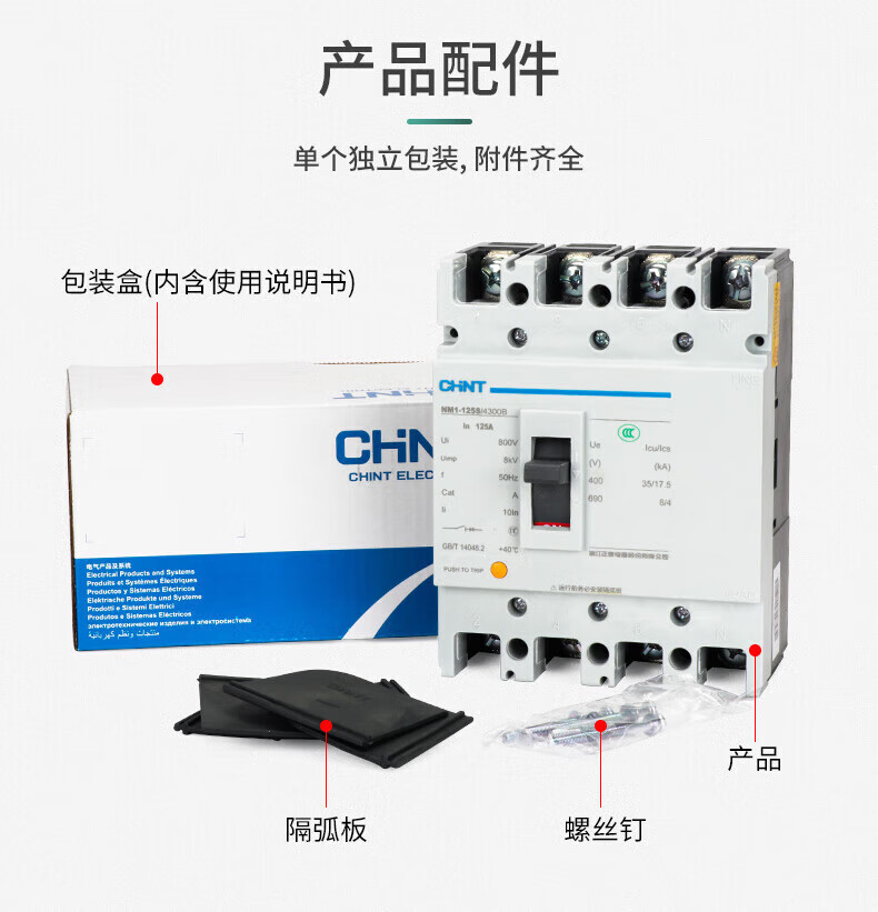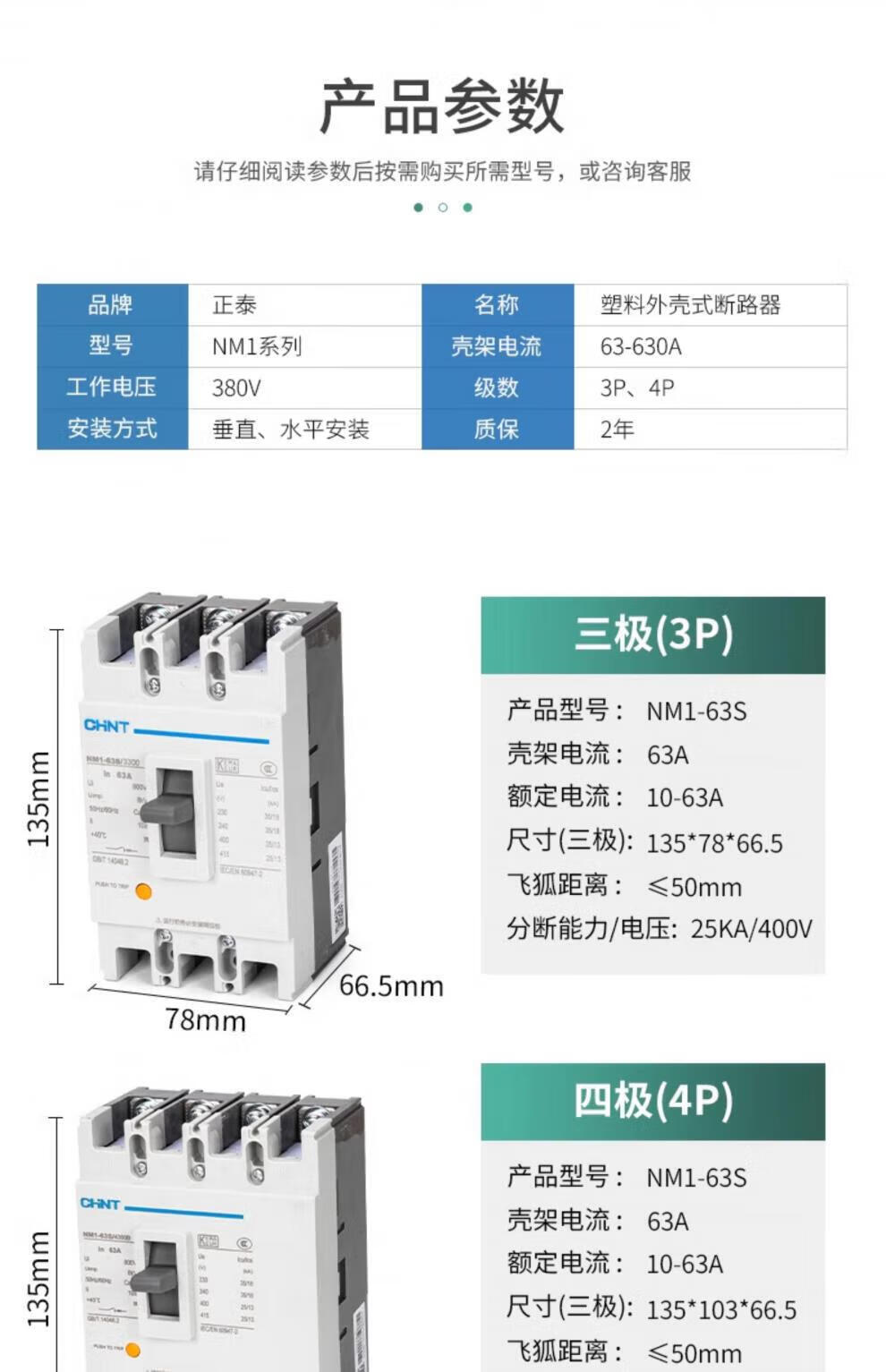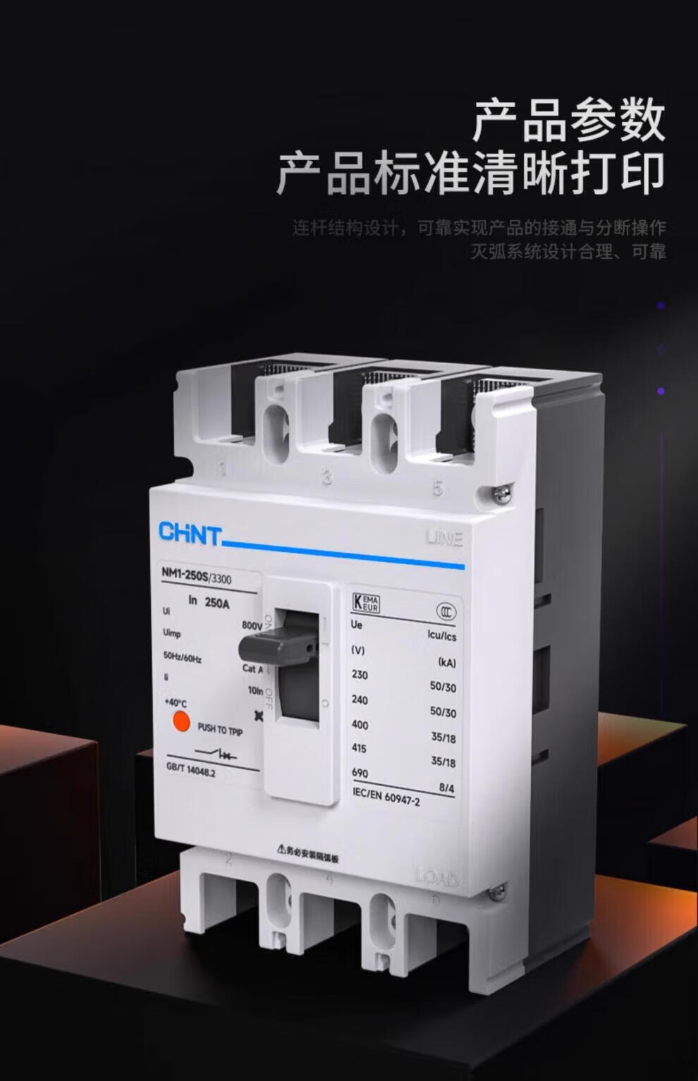 Chint plastic case circuit breaker 100A200 plastic case type 400 three-phase four-wire leakage 380v air switch 3P 10A 3P