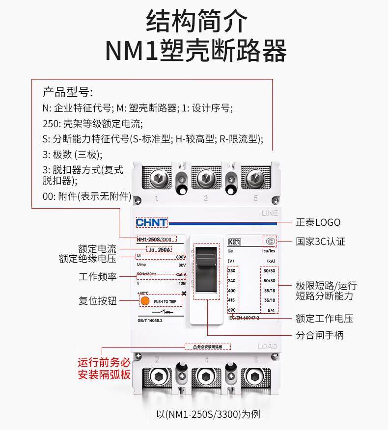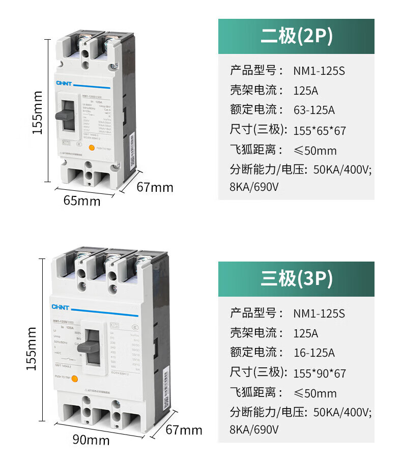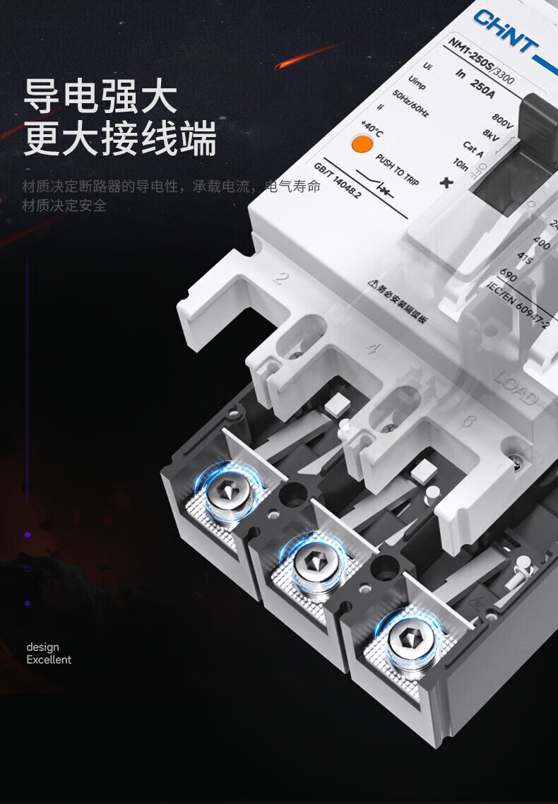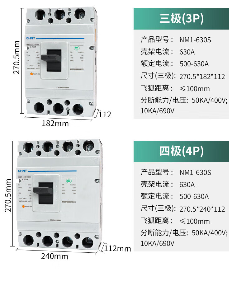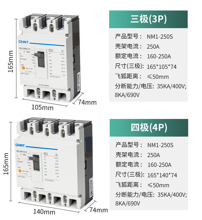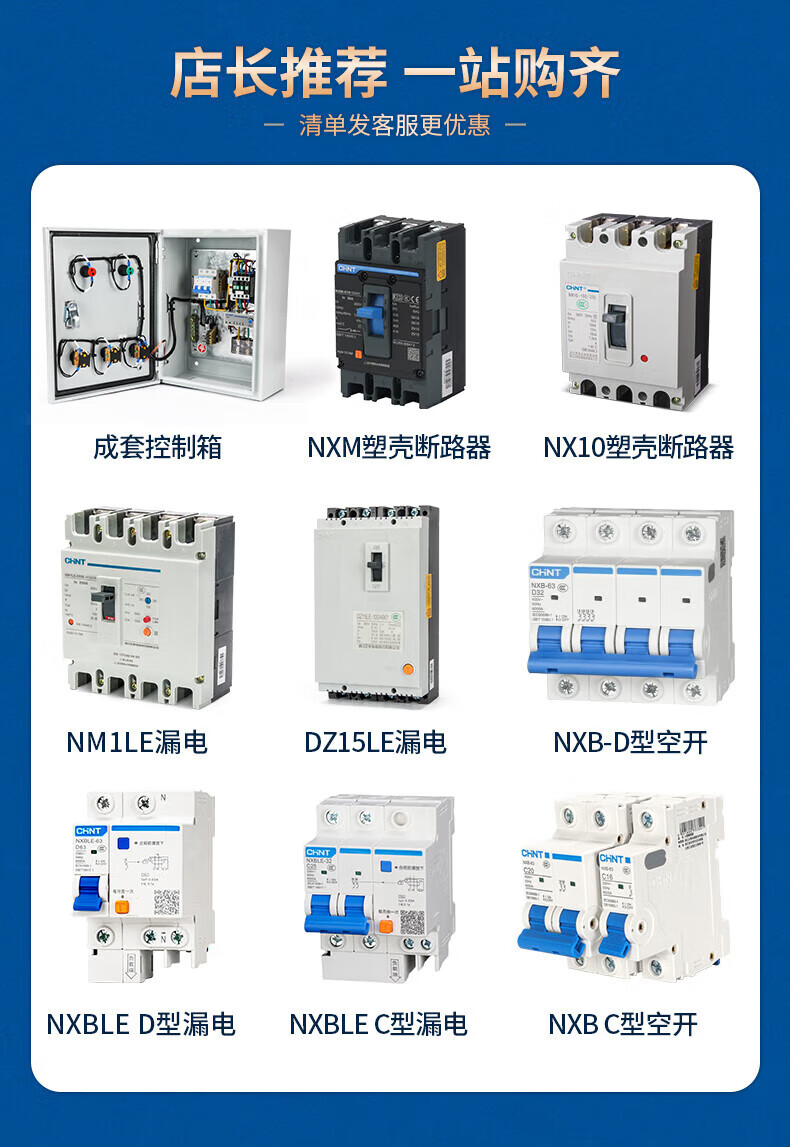 Chint plastic case circuit breaker 100A200 plastic case type 400 three-phase four-wire leakage 380v air switch 3P 10A 3P
