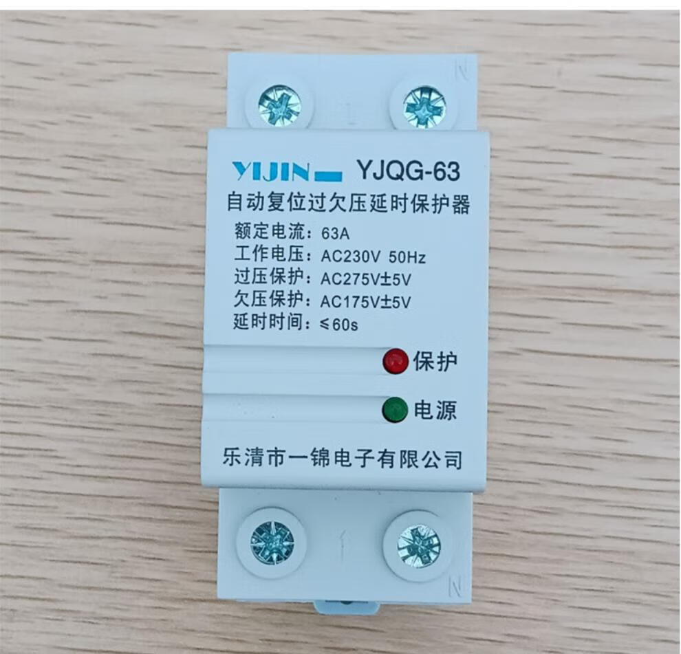 Yijin automatic reset over and under voltage delay protector YJQG-63 self-resetting protector 2P63A40A switch 2P63A lower incoming line and upper outgoing line