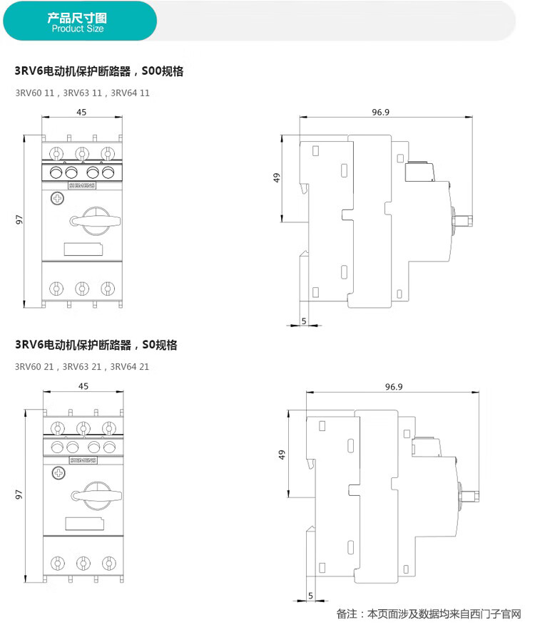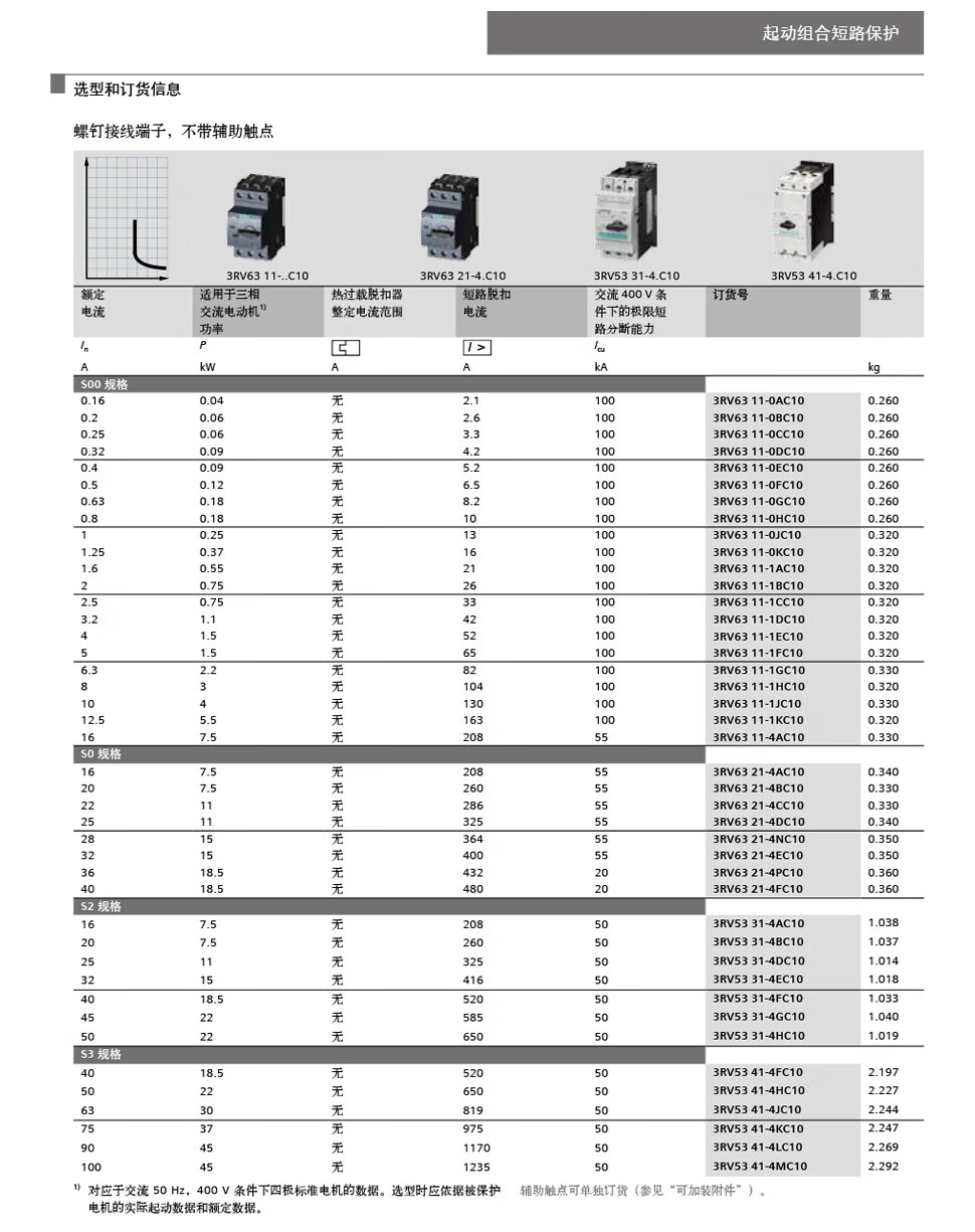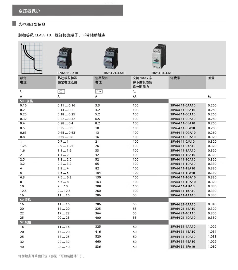 Siemens motor protective circuit breaker 011-1A/B/C/D/E/F/JA10 021-4EA15 0E 0.28-0.4A 3RV6011 current A10