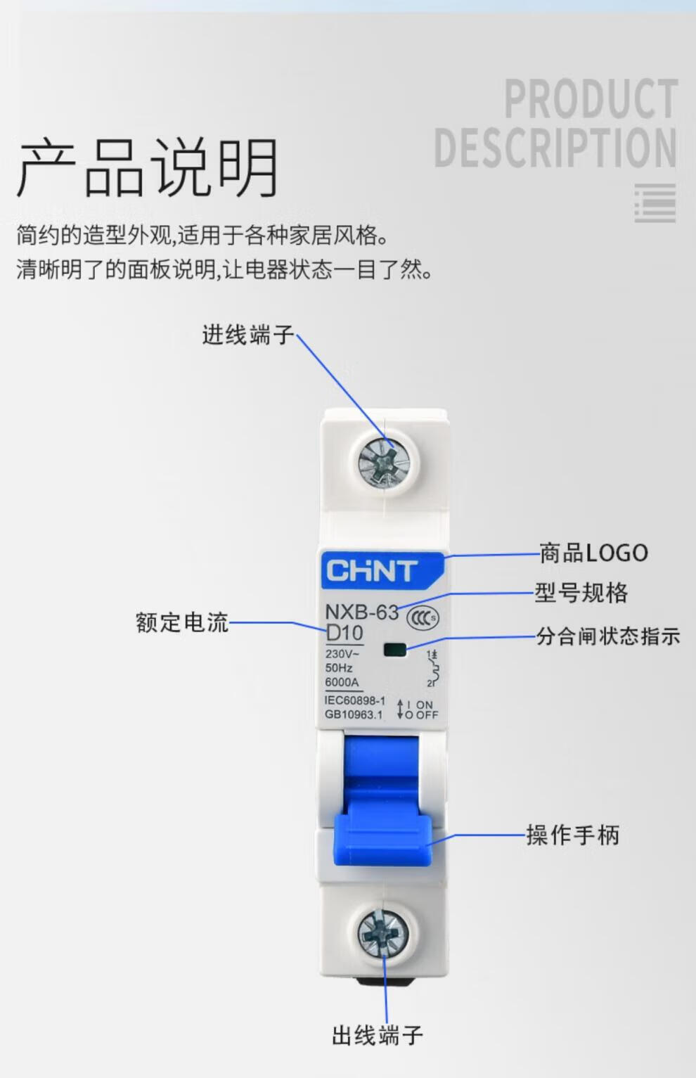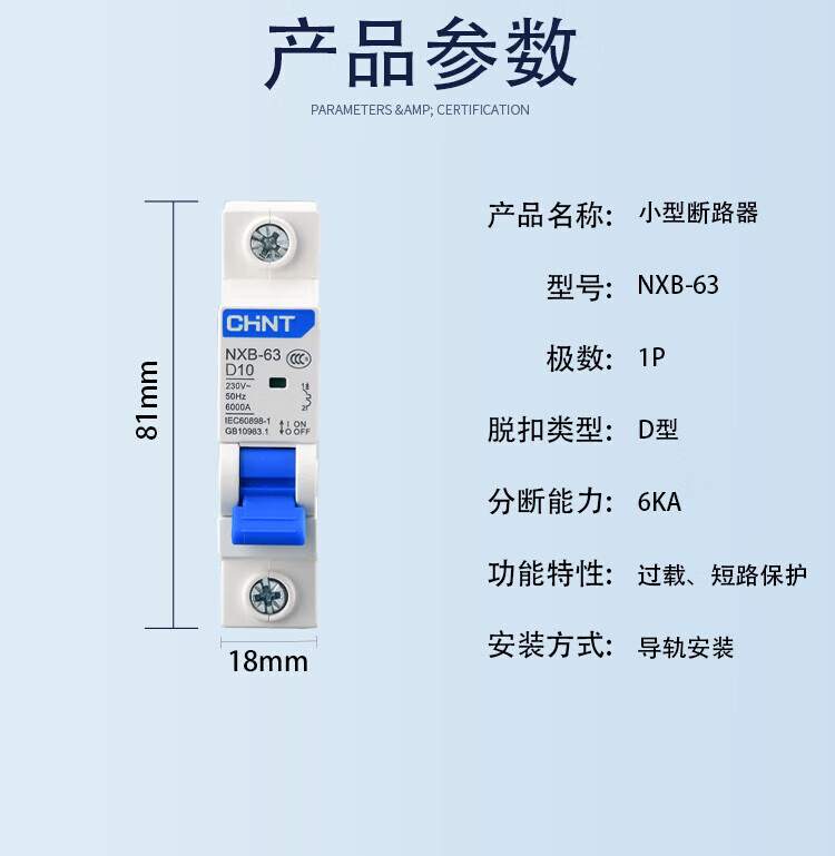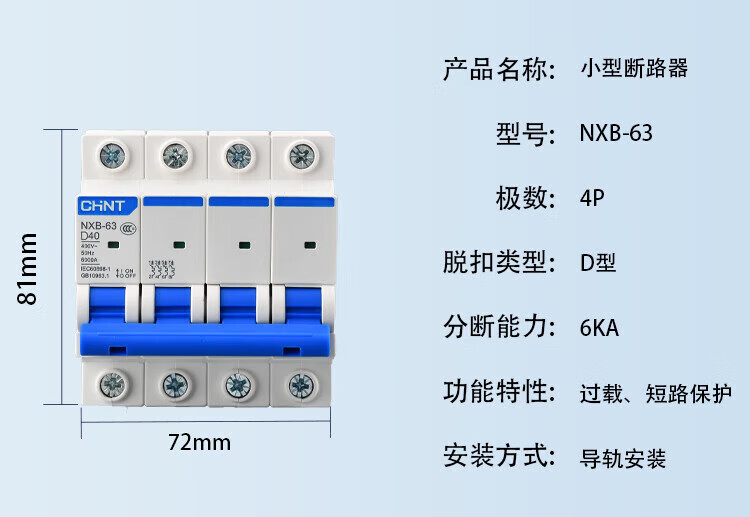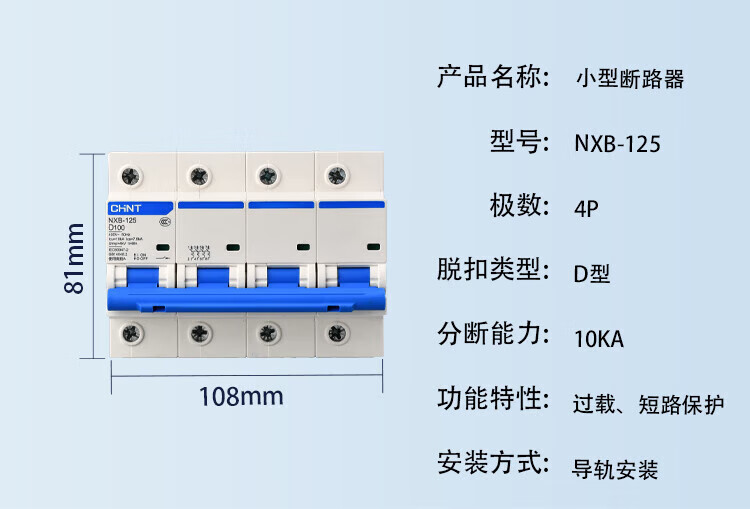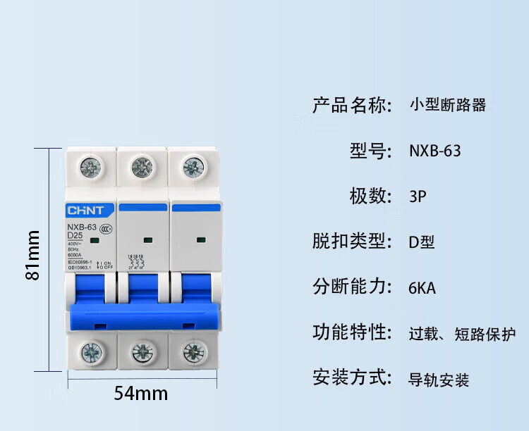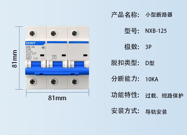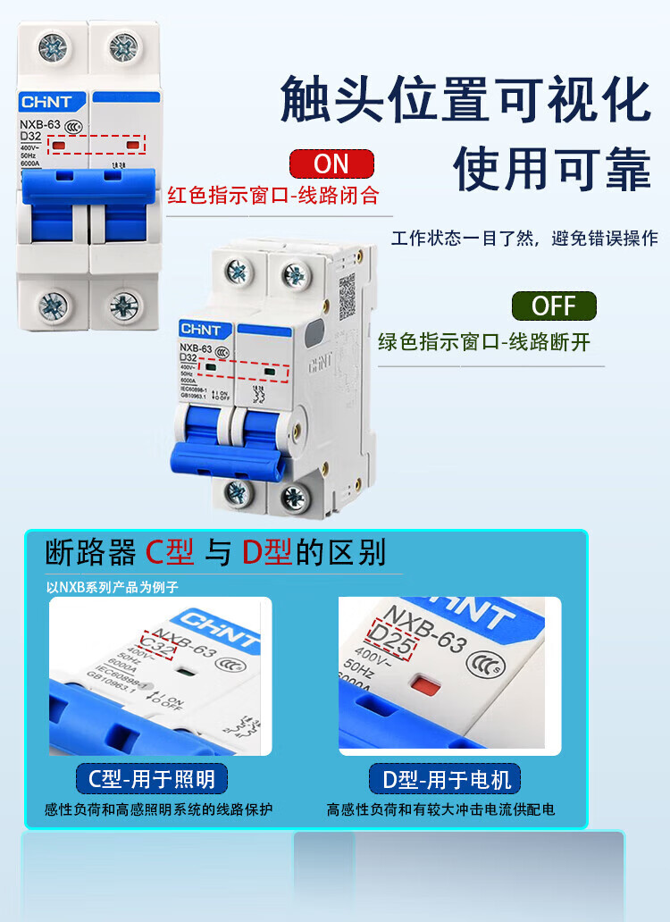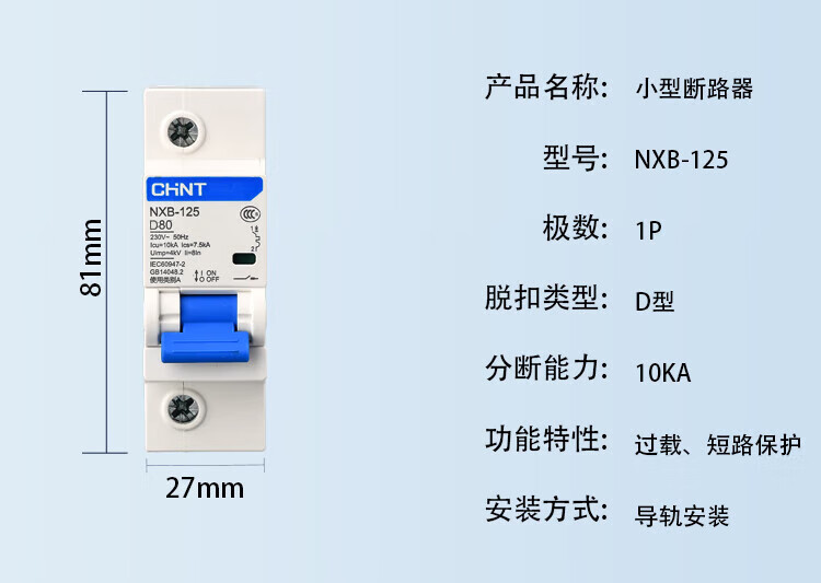 Chint air switch NXB-125 circuit breaker D type small 1P 2P 3P air switch DZ47 upgraded power type 63 1P 1A