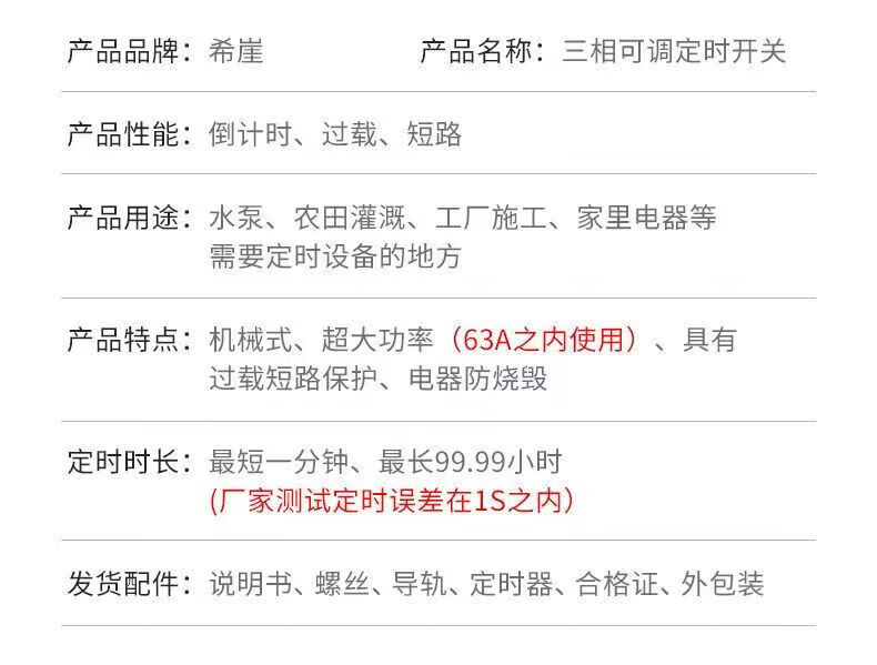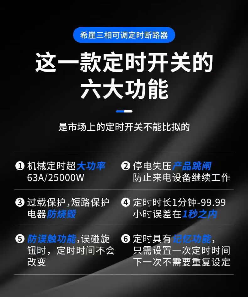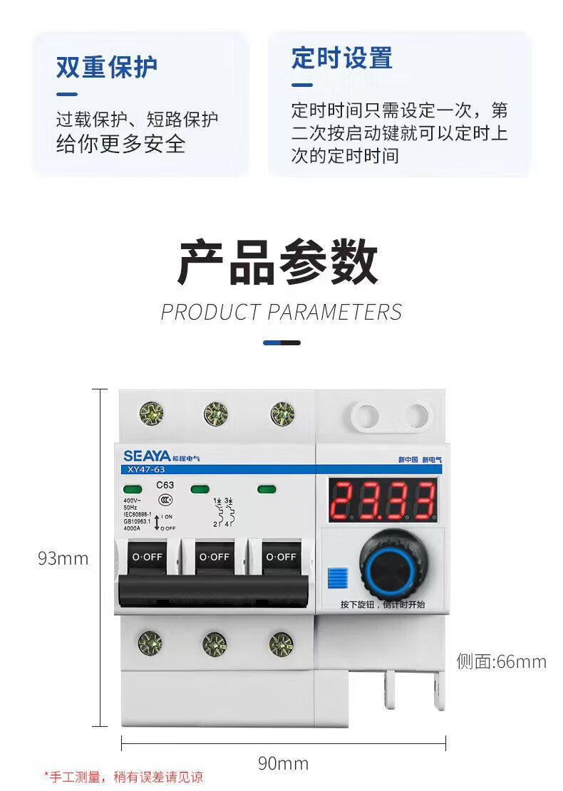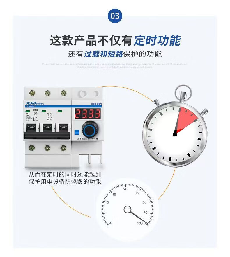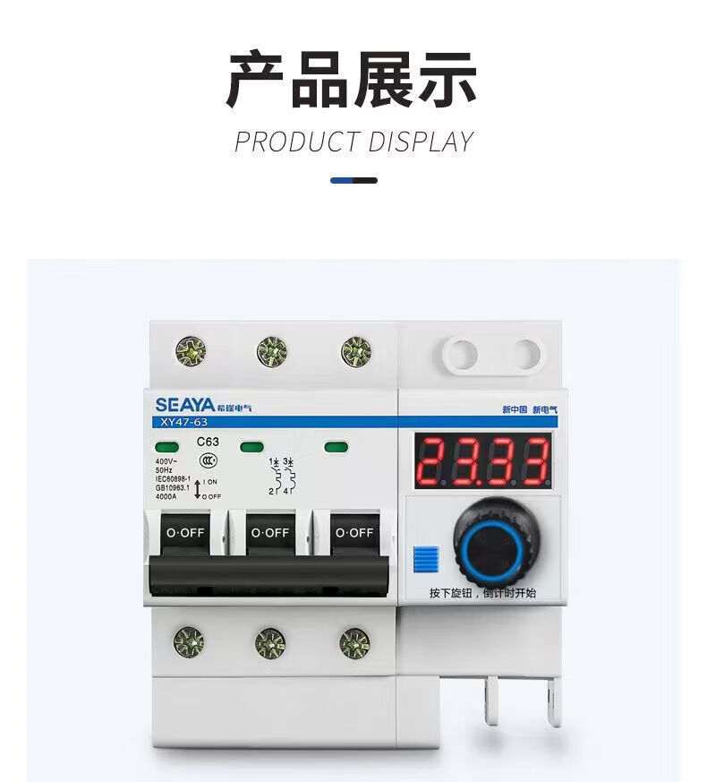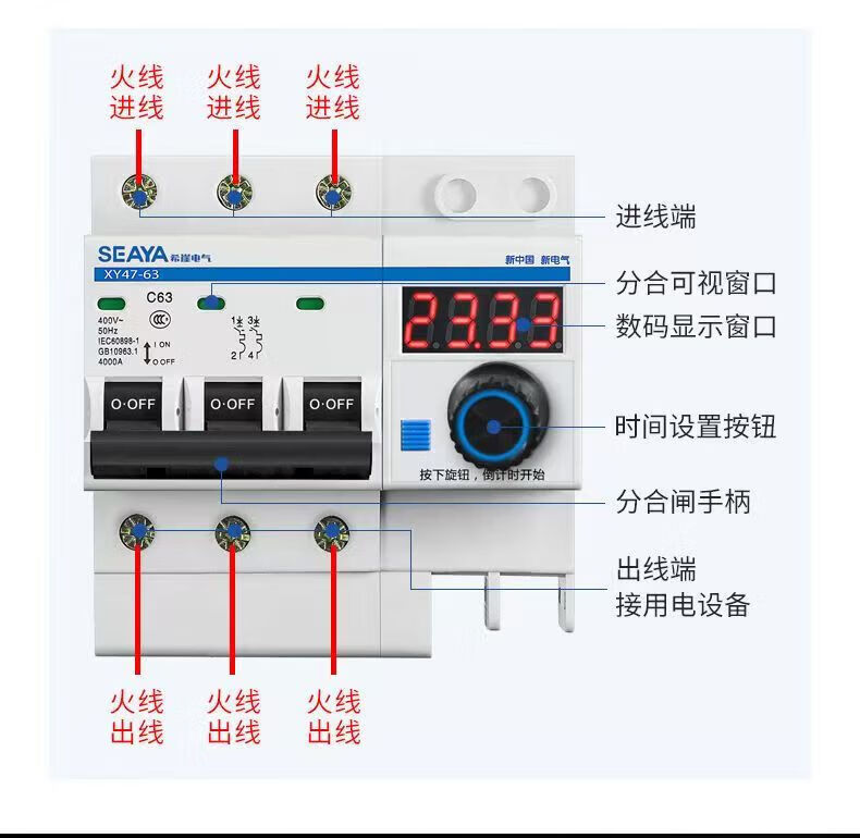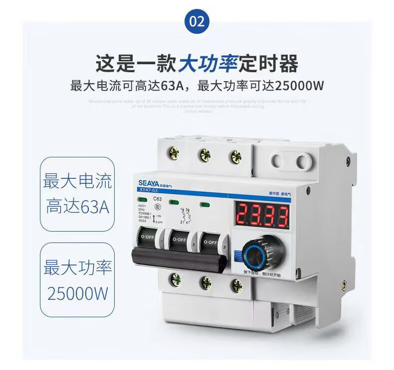 Xiya three-phase adjustable timing circuit breaker high-power water pump switch controller power-off switch main gate three-phase 380V timing switch 3P63A