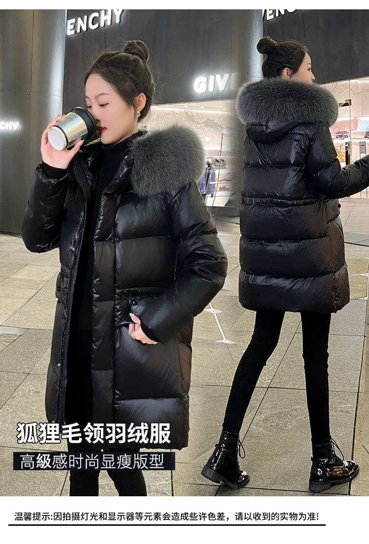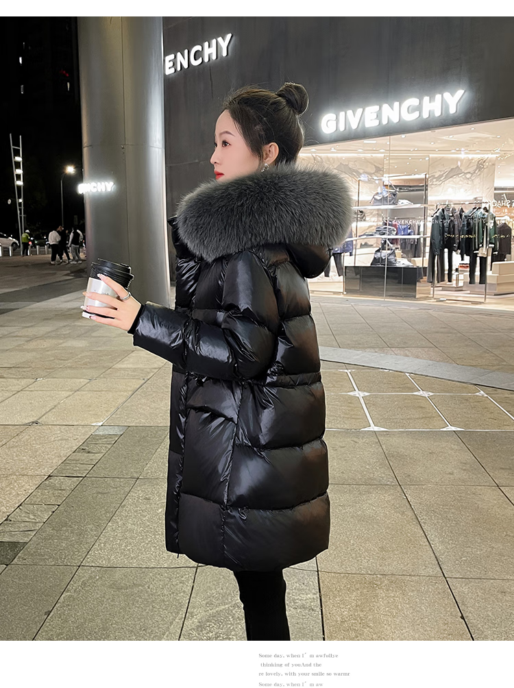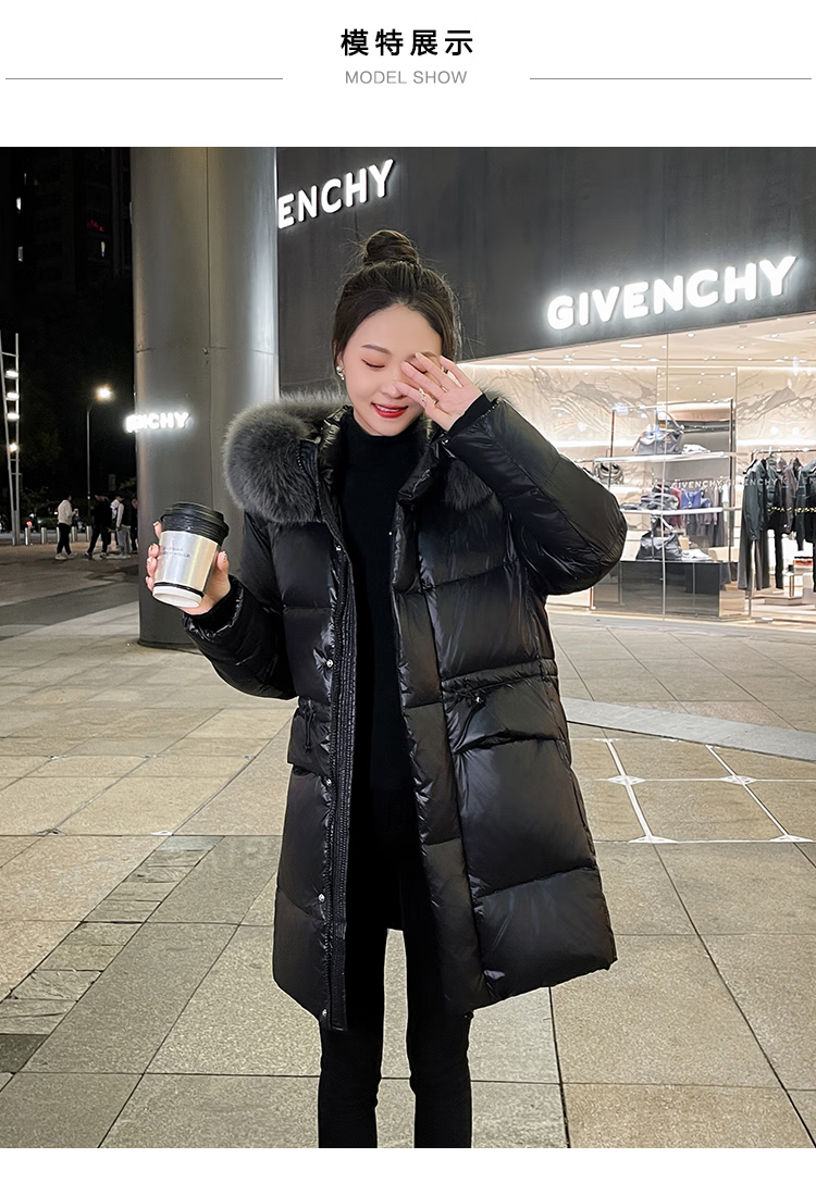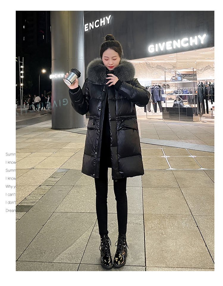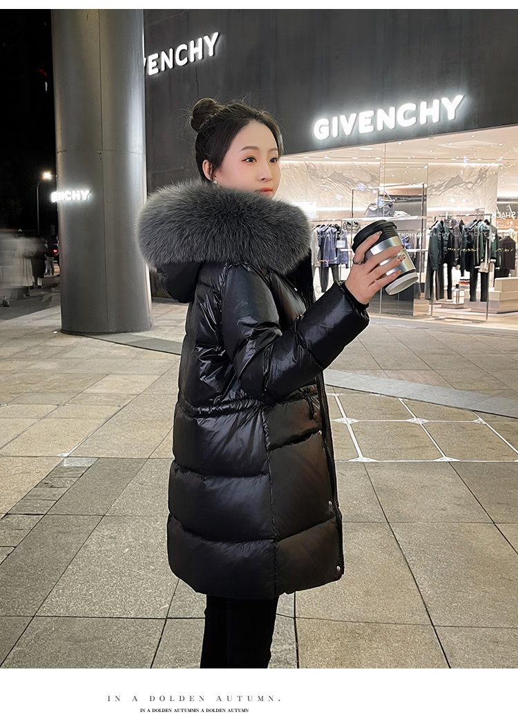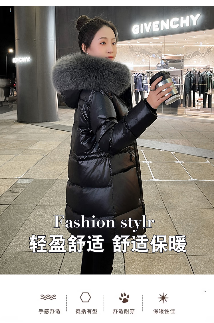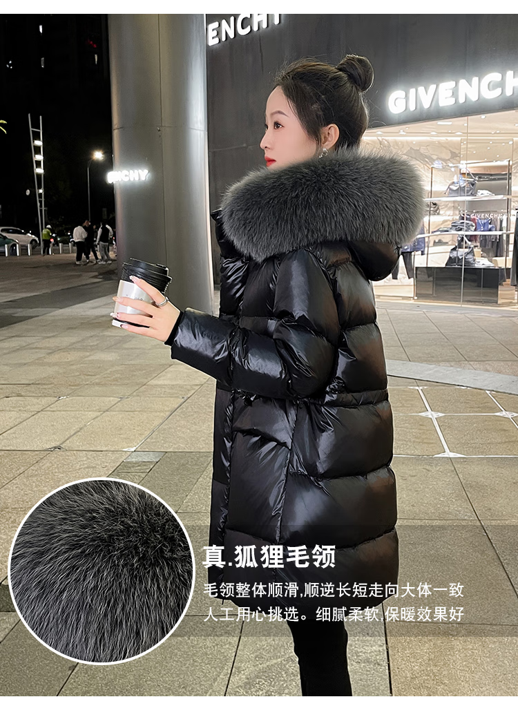 QVI high-end brand down jacket women's mid-length 2025 winter new style fashionable loose slimming thickened white duck down jacket black (real fox big fur collar) XL 130-145 catties