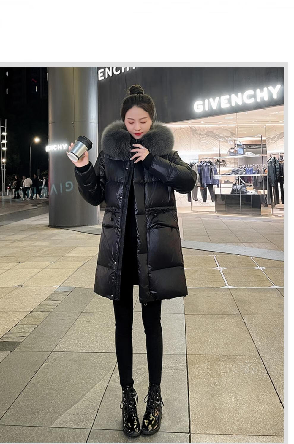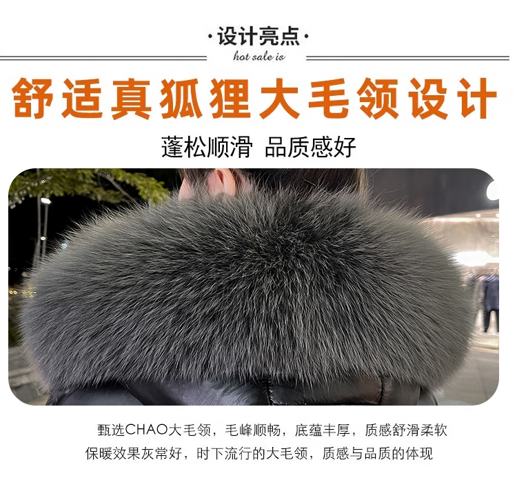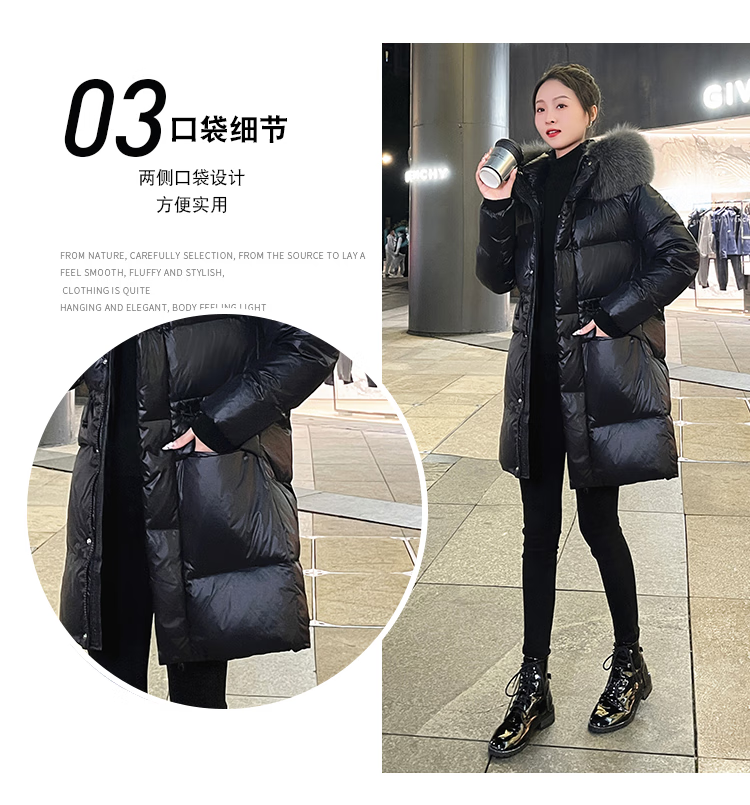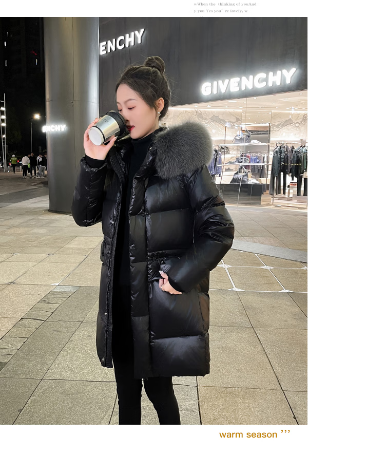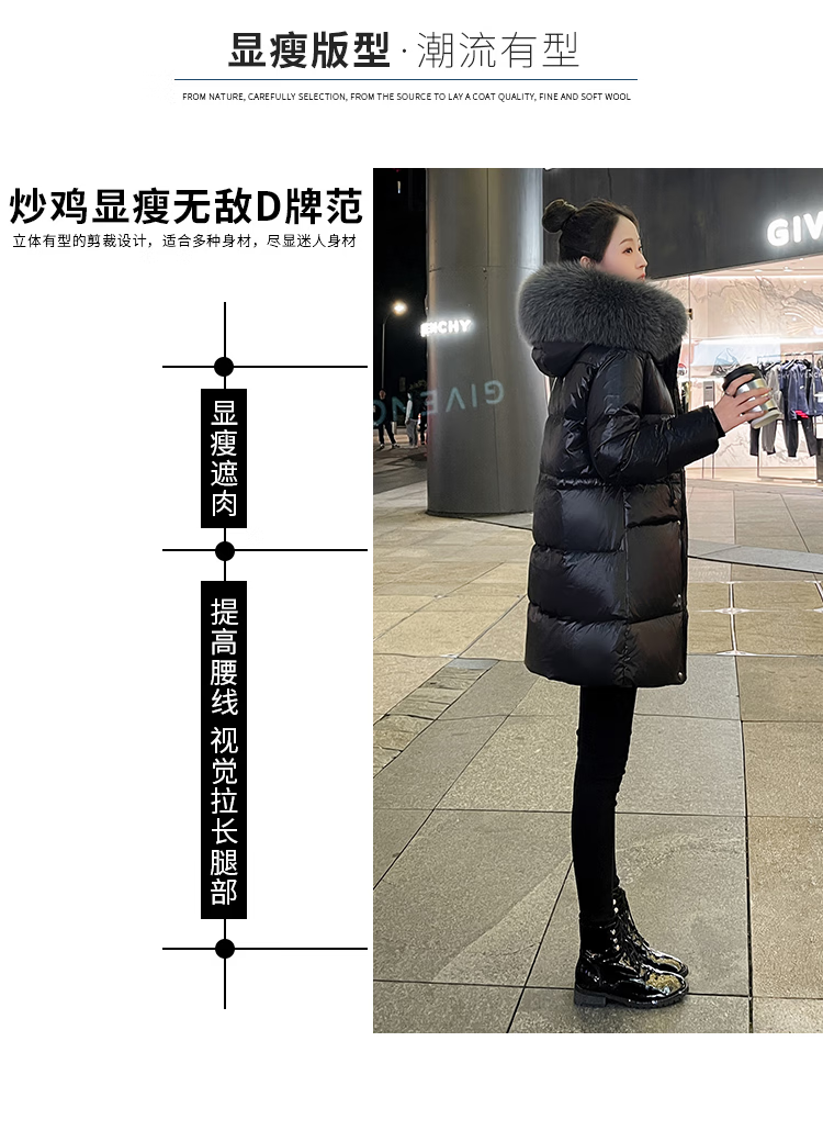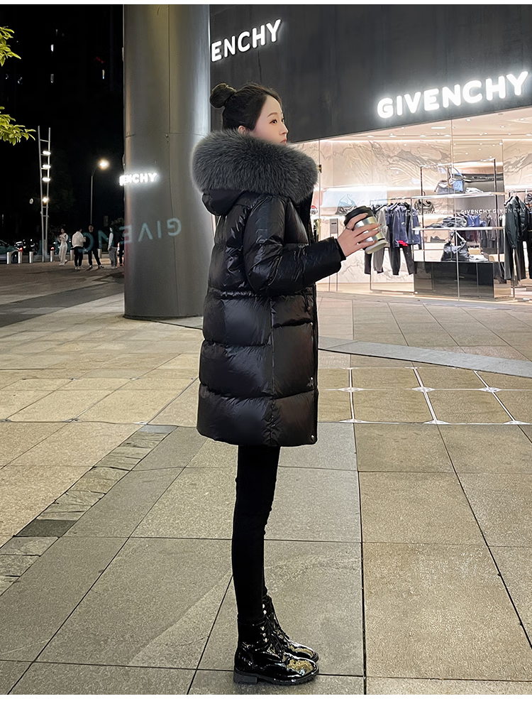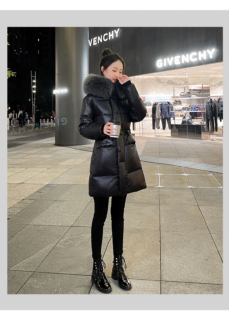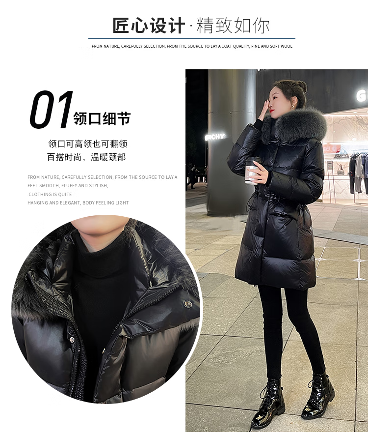 QVI high-end brand down jacket women's mid-length 2025 winter new style fashionable loose slimming thickened white duck down jacket black (real fox big fur collar) XL 130-145 catties