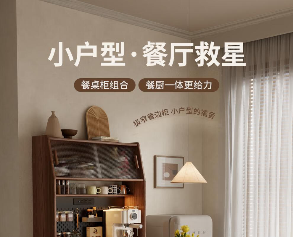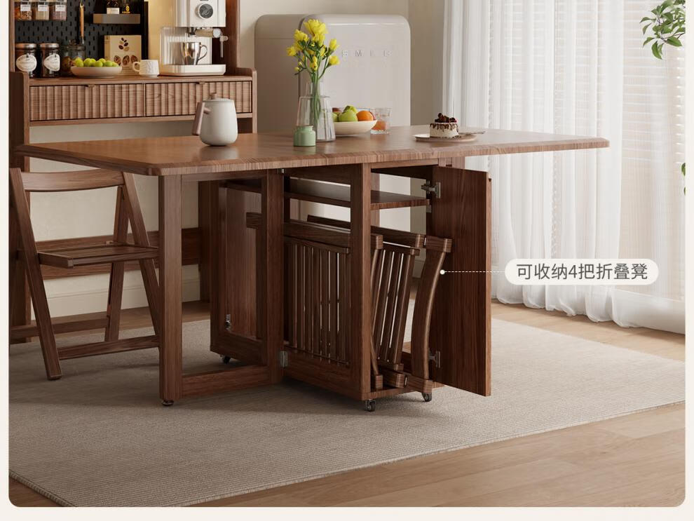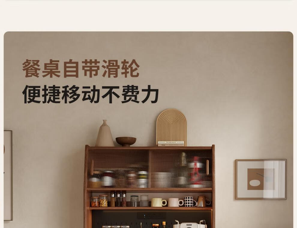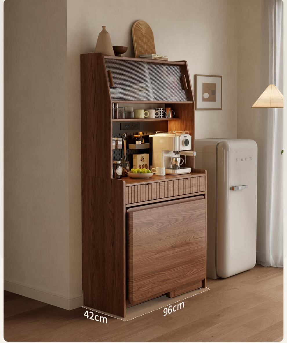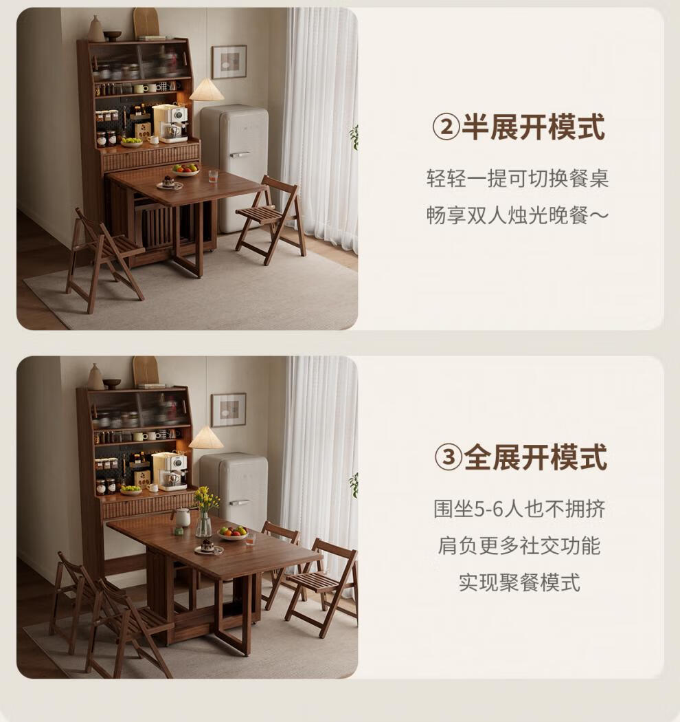 He Jiagong solid wood sideboard and dining table integrated home small apartment wall cabinet foldable dining table Nordic style living room storage sideboard