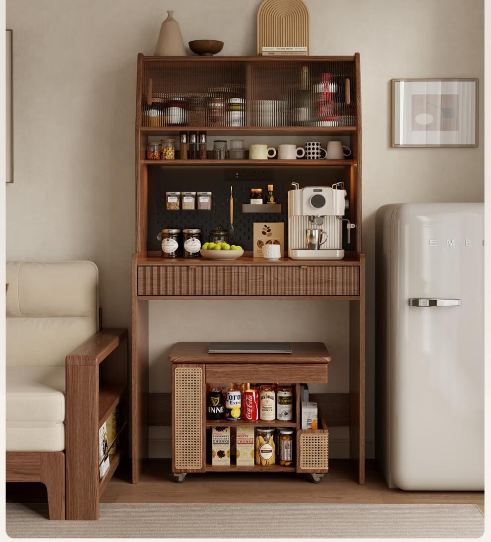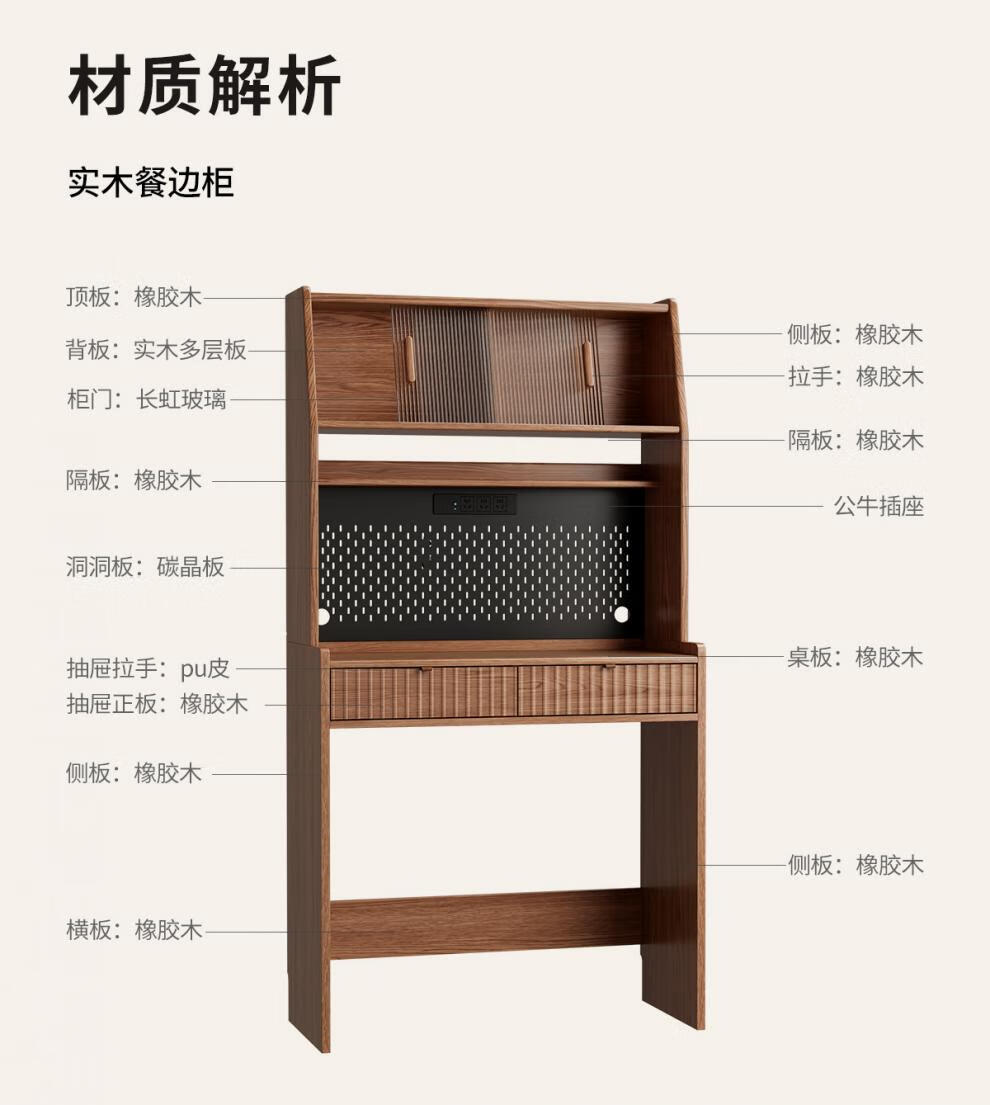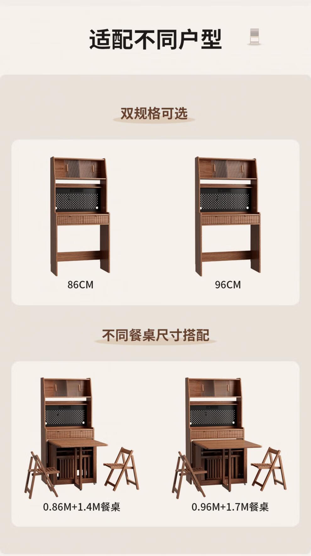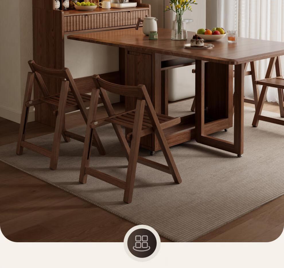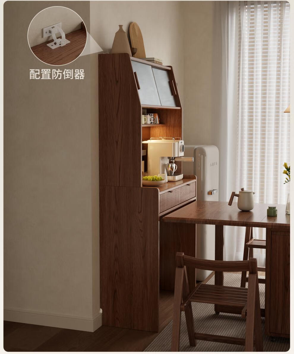 He Jiagong solid wood sideboard and dining table integrated home small apartment wall cabinet foldable dining table Nordic style living room storage sideboard
