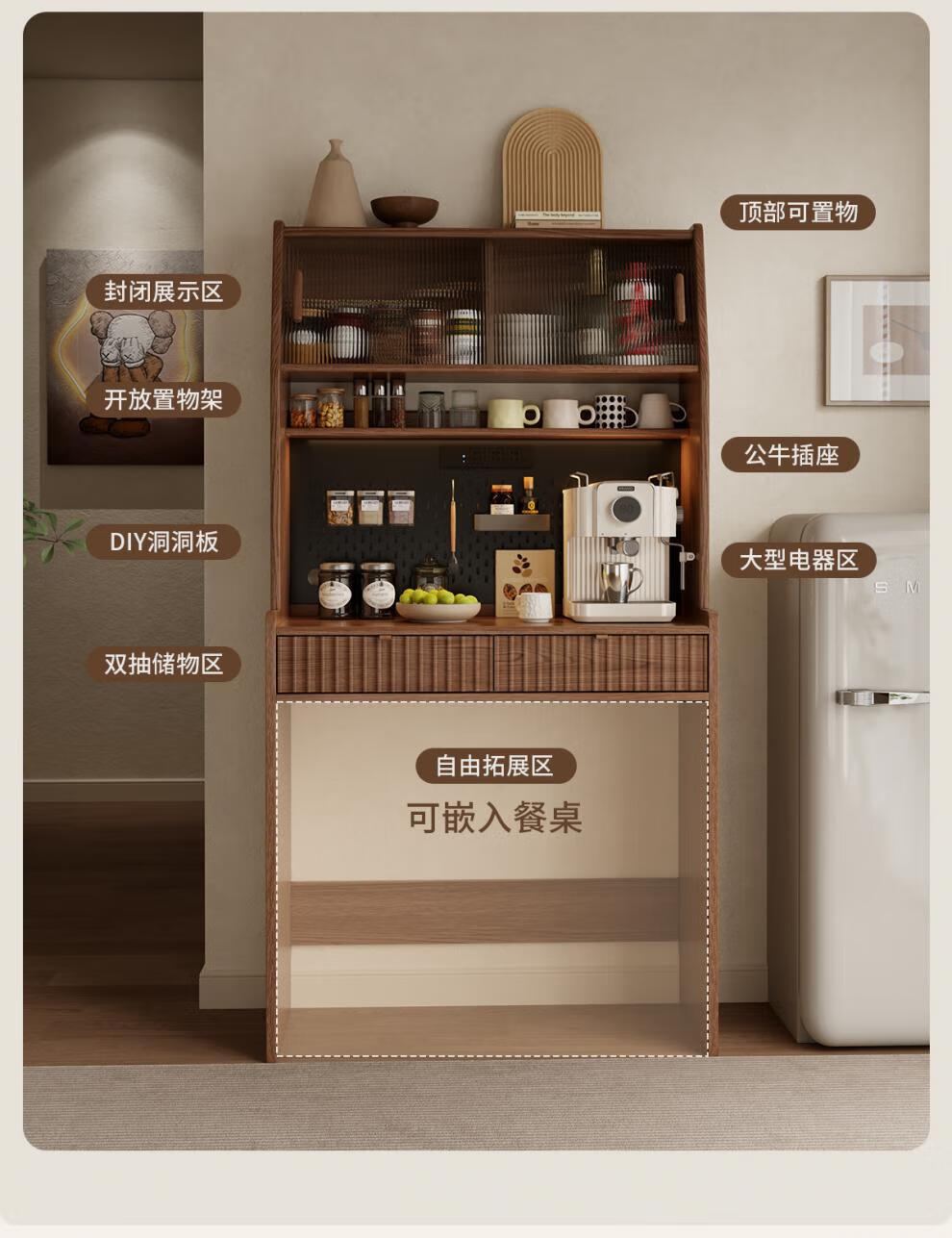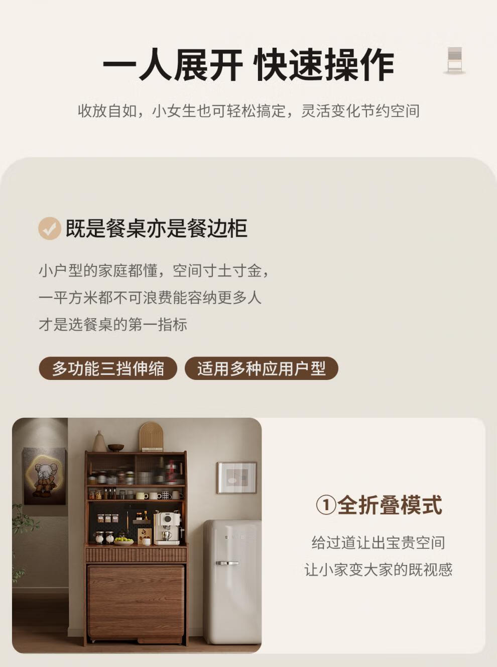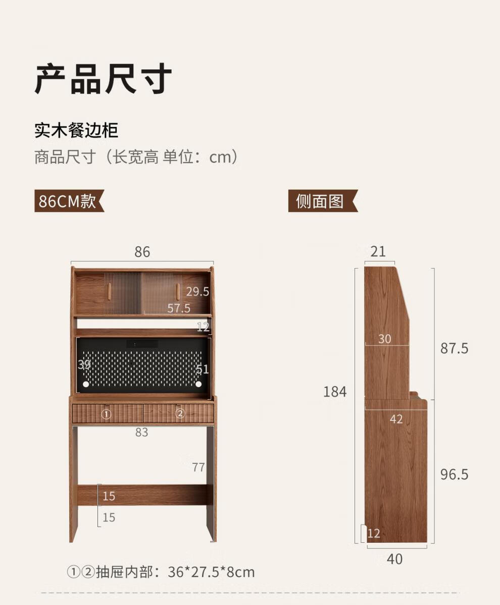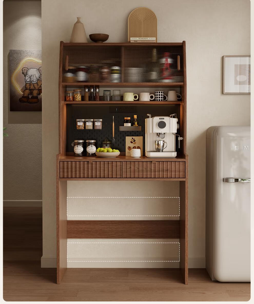 He Jiagong solid wood sideboard and dining table integrated home small apartment wall cabinet foldable dining table Nordic style living room storage sideboard