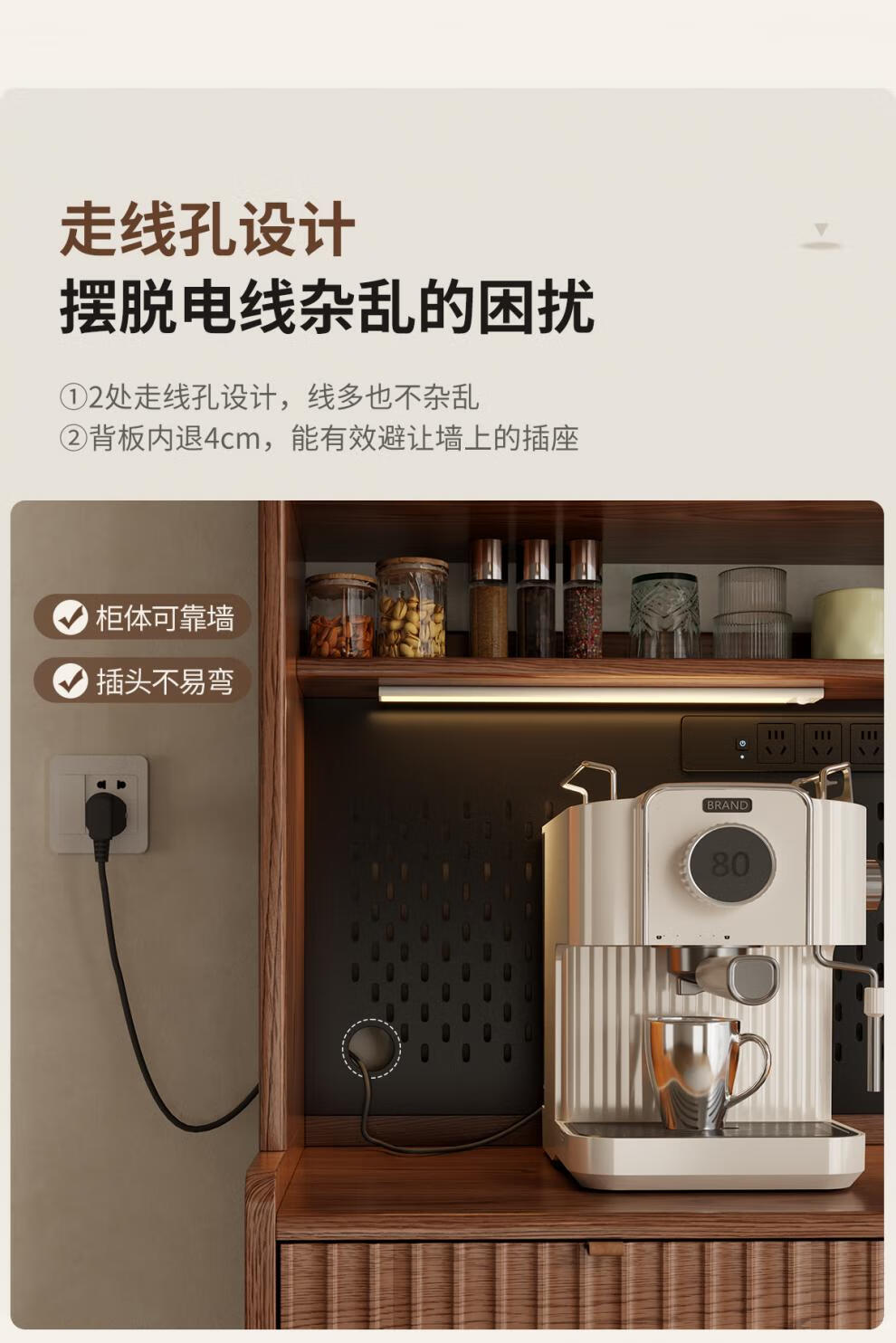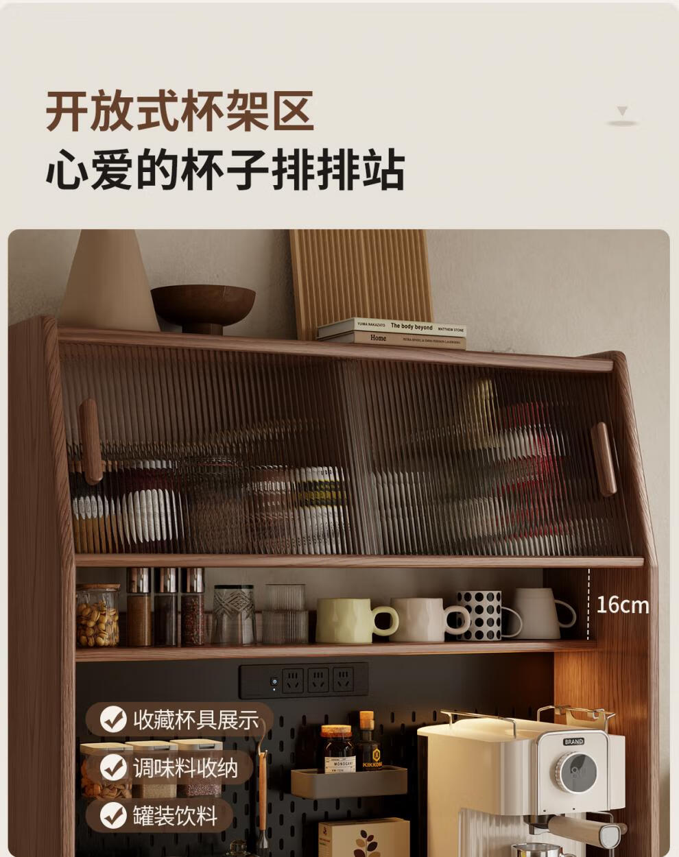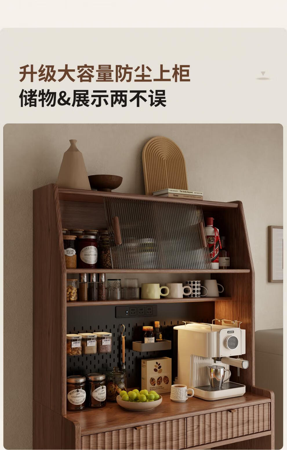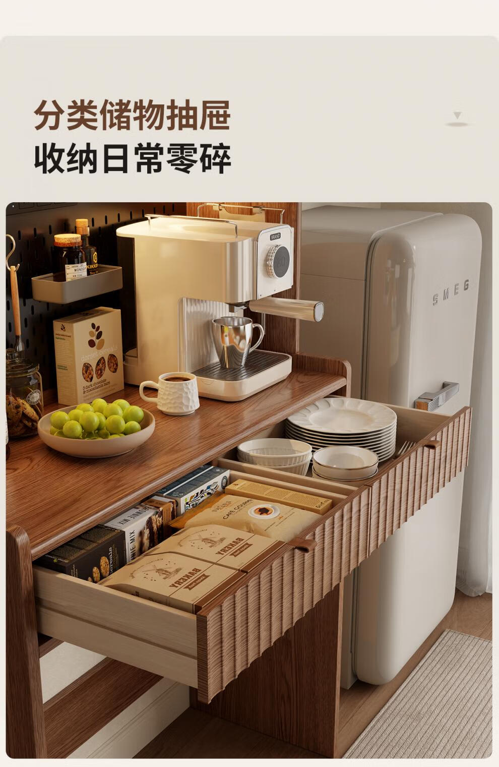 He Jiagong solid wood sideboard and dining table integrated home small apartment wall cabinet foldable dining table Nordic style living room storage sideboard