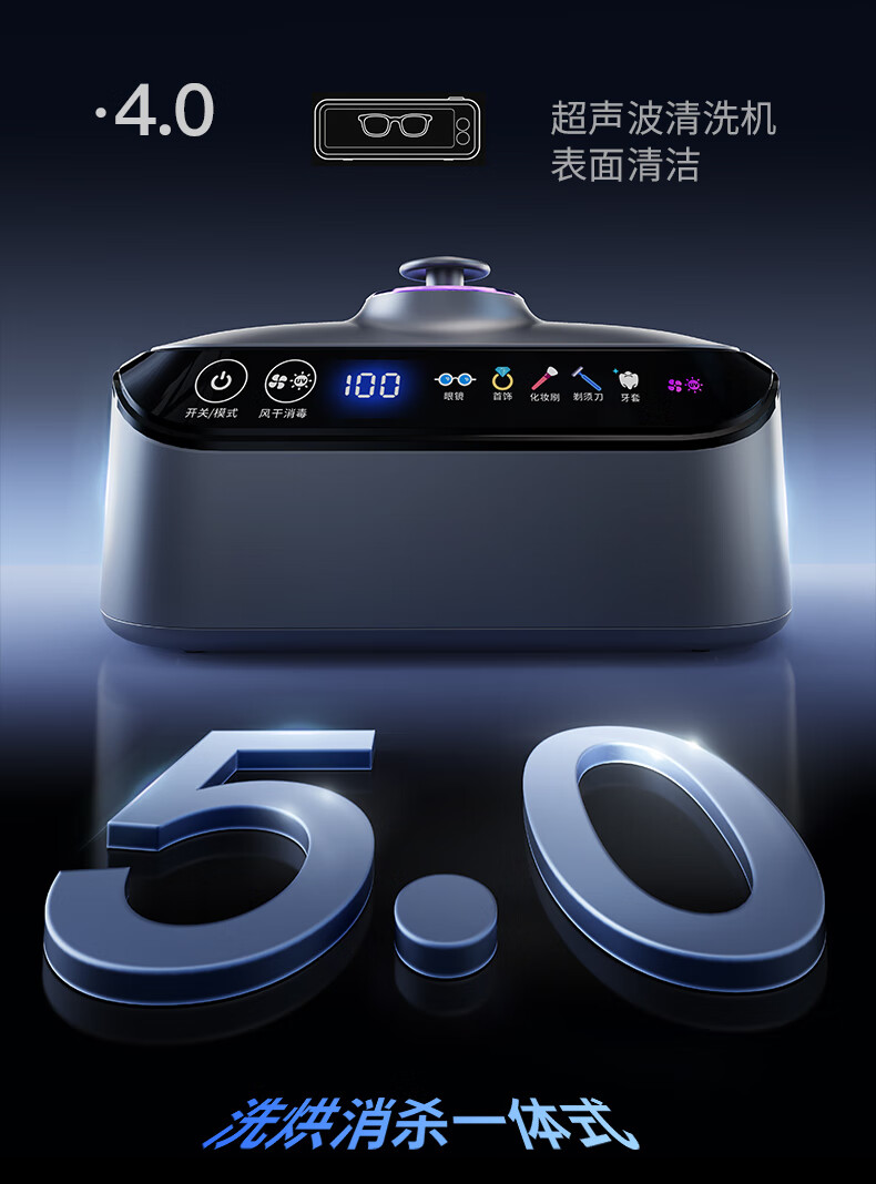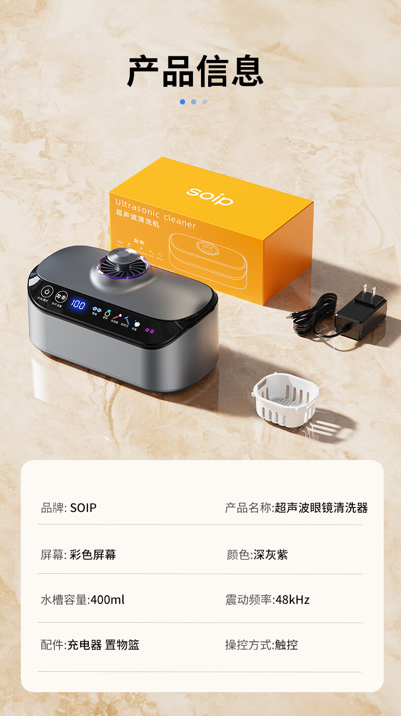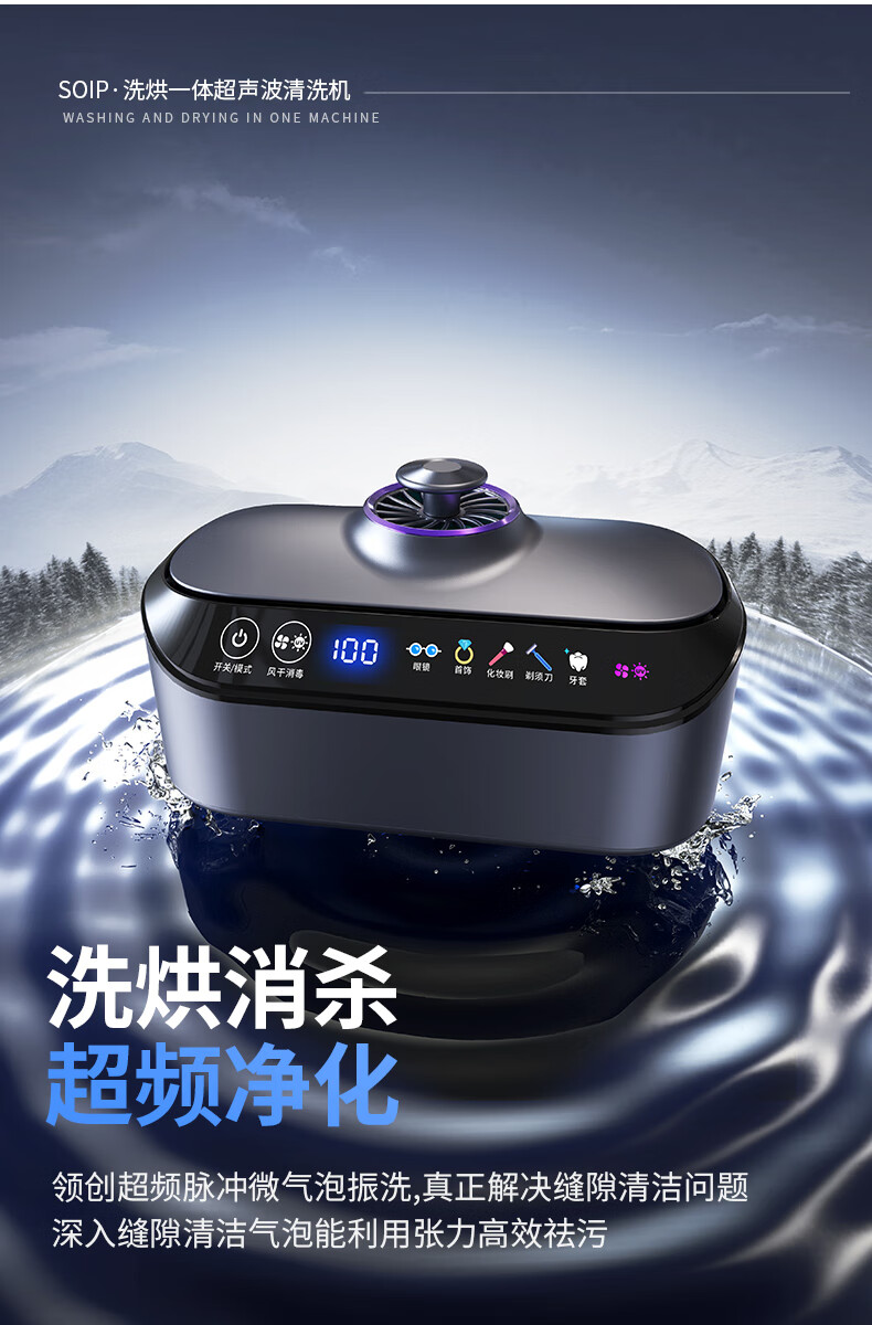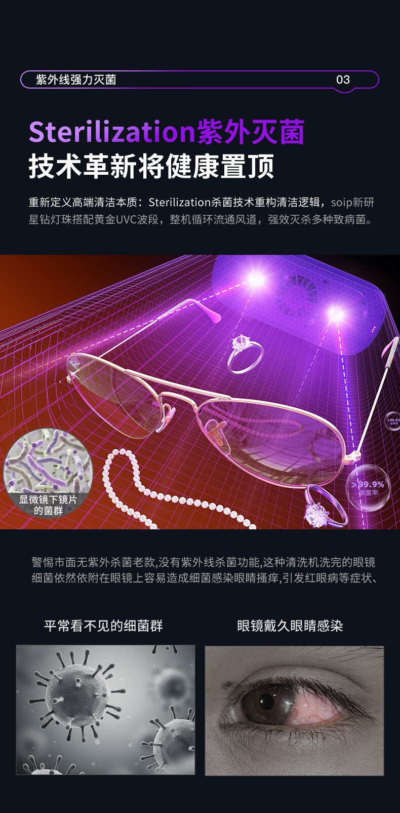 SOIP ultrasonic glasses cleaner, fully automatic washing and drying, portable household jewelry watch strap, denture braces, makeup brush, ring cleaning machine AI model - Dyson Purple Quad-core overclocking + UV sterilization