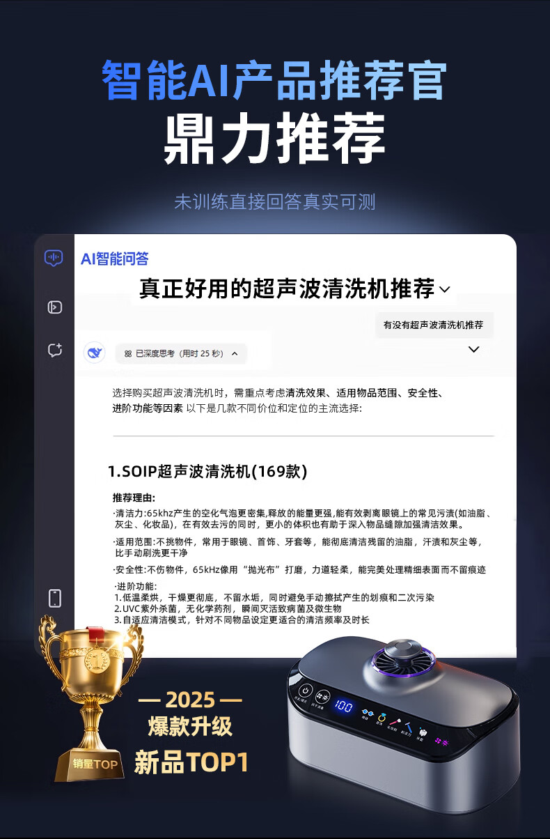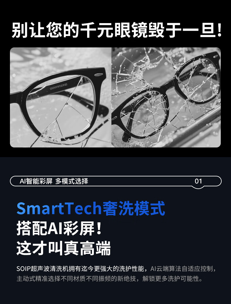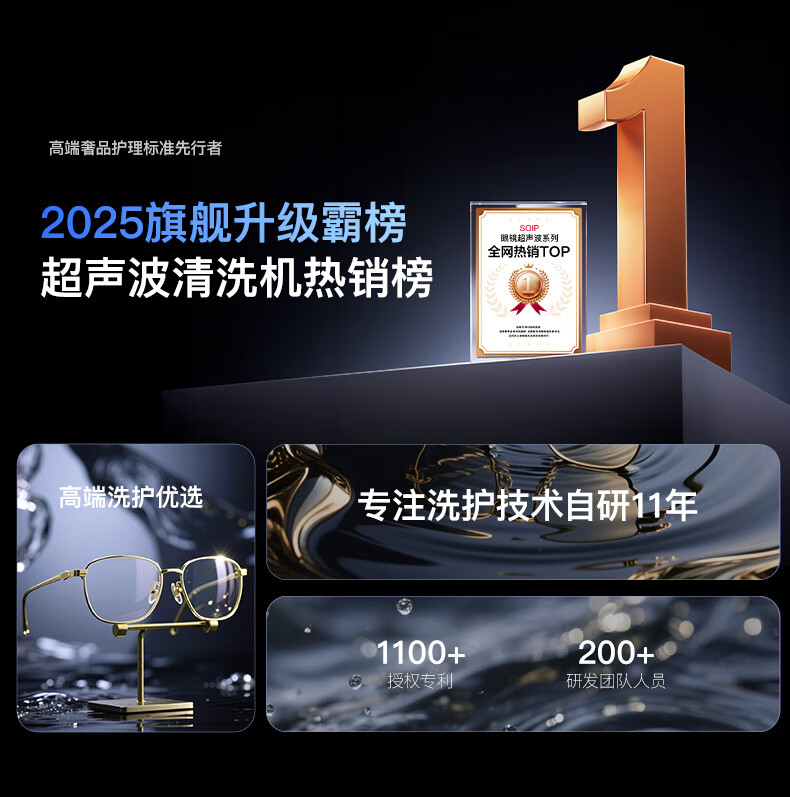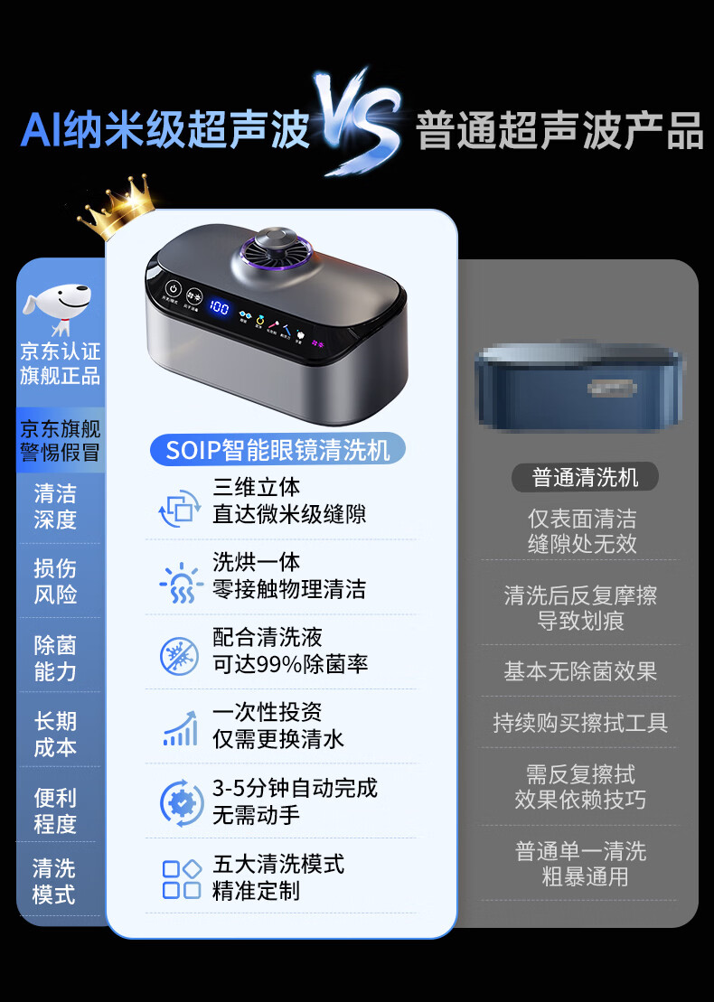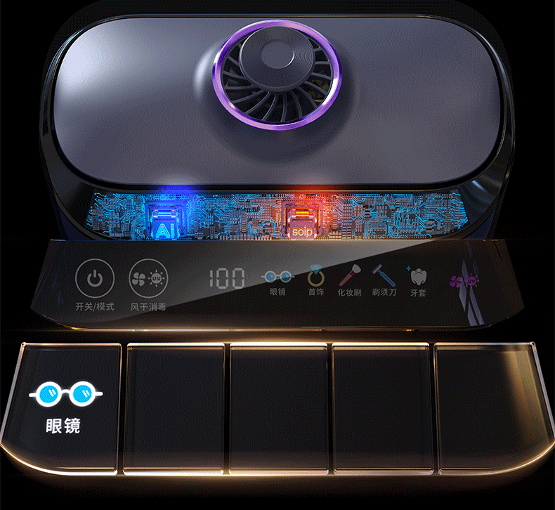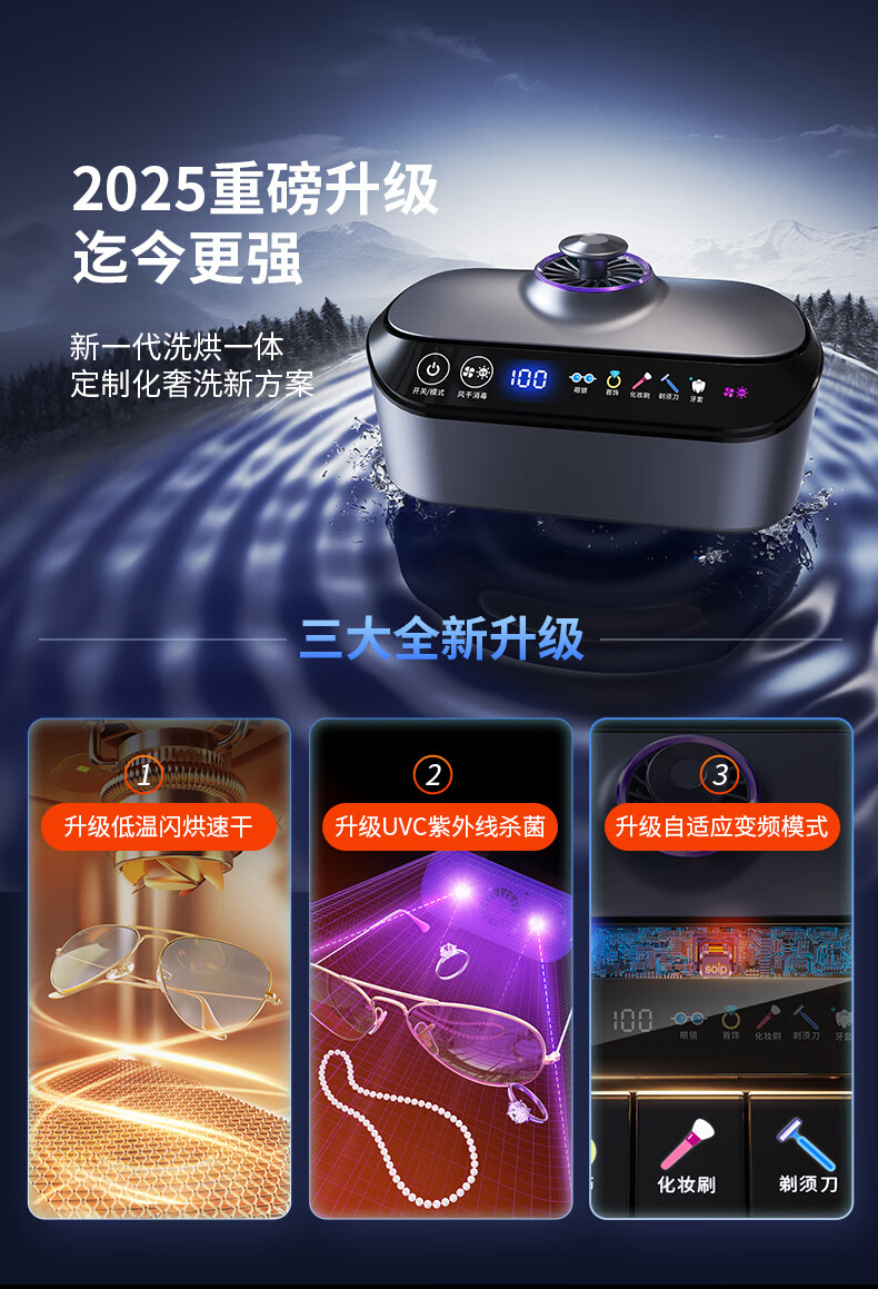 SOIP ultrasonic glasses cleaner, fully automatic washing and drying, portable household jewelry watch strap, denture braces, makeup brush, ring cleaning machine AI model - Dyson Purple Quad-core overclocking + UV sterilization