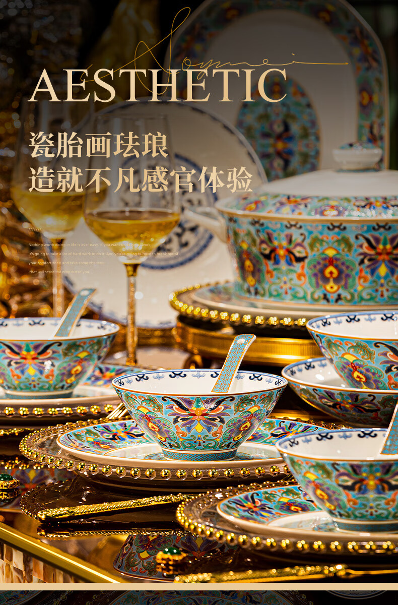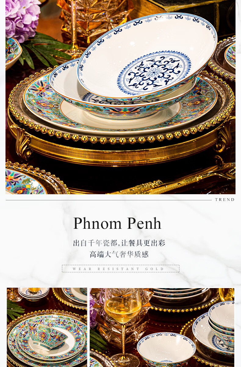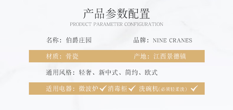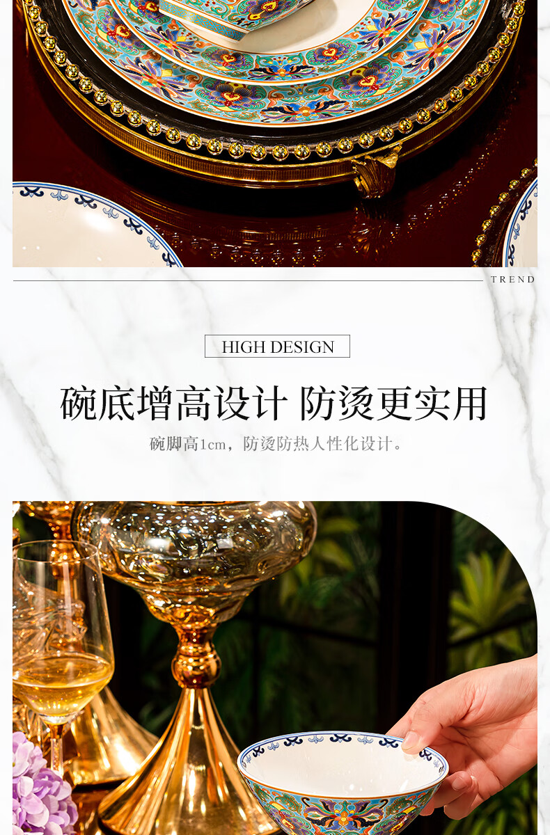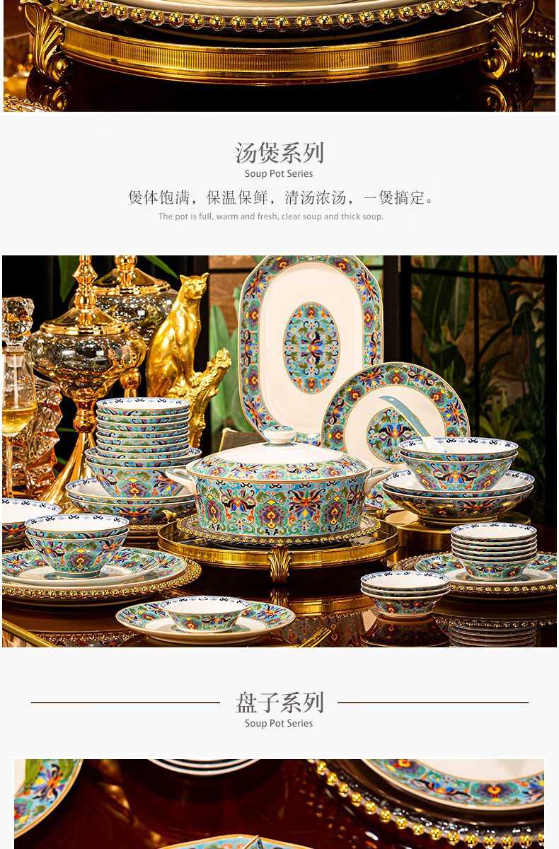 NINE CRANES high-looking enamel bowl set Jingdezhen bowl and plate set high-end housewarming gift bone china tableware set 30 pieces with large soup bowl | high-end brocade box | Earl's Garden