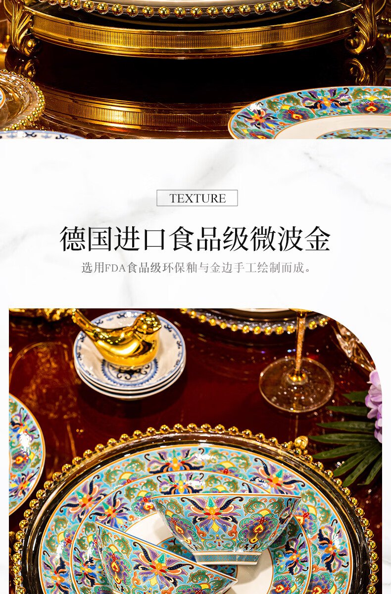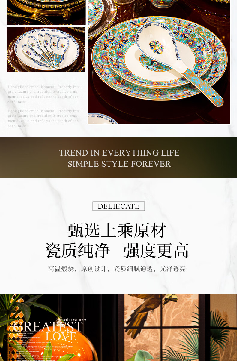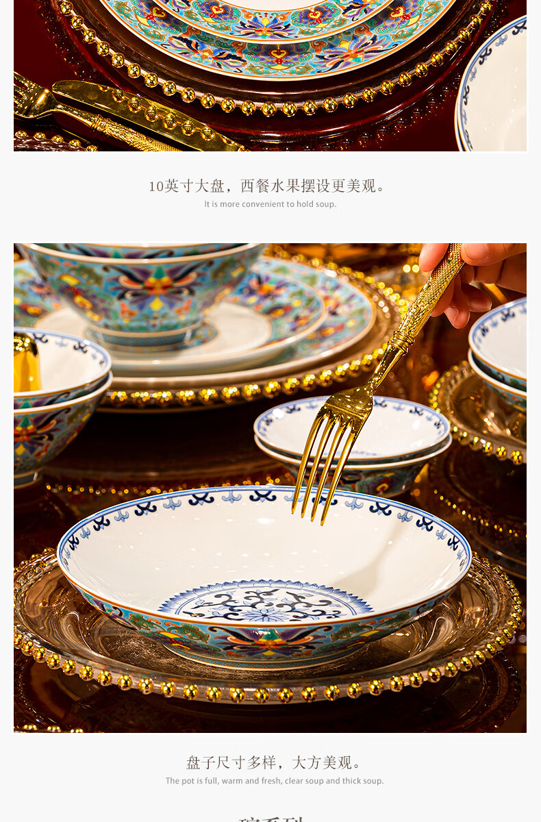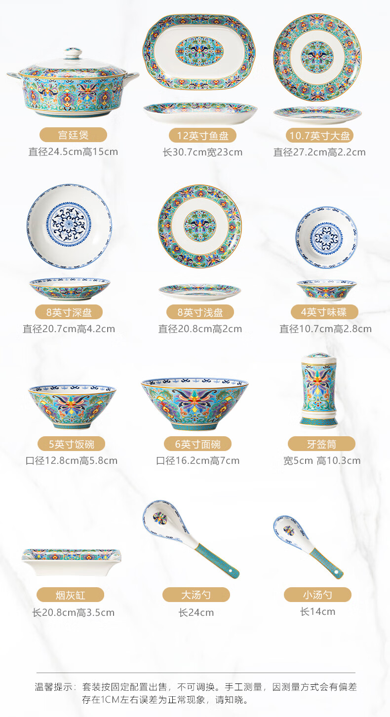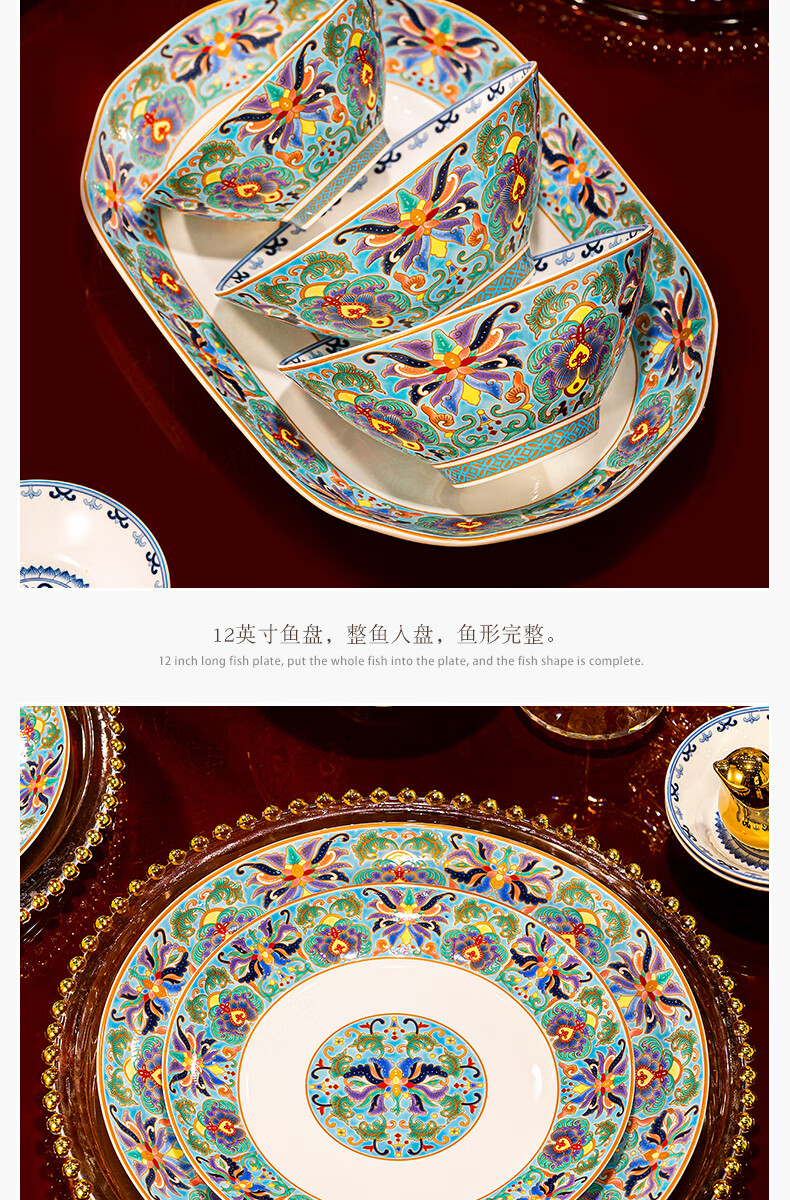 NINE CRANES high-looking enamel bowl set Jingdezhen bowl and plate set high-end housewarming gift bone china tableware set 30 pieces with large soup bowl | high-end brocade box | Earl's Garden