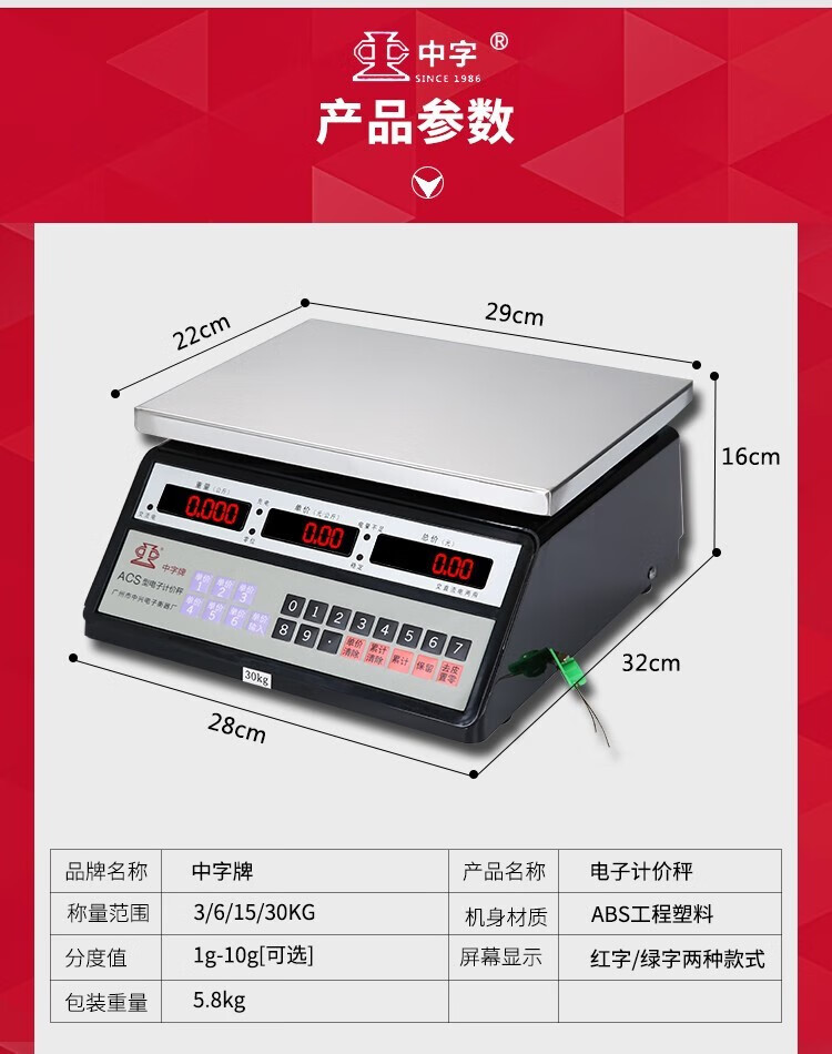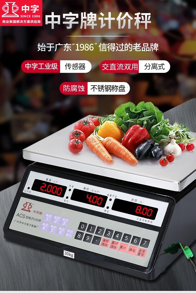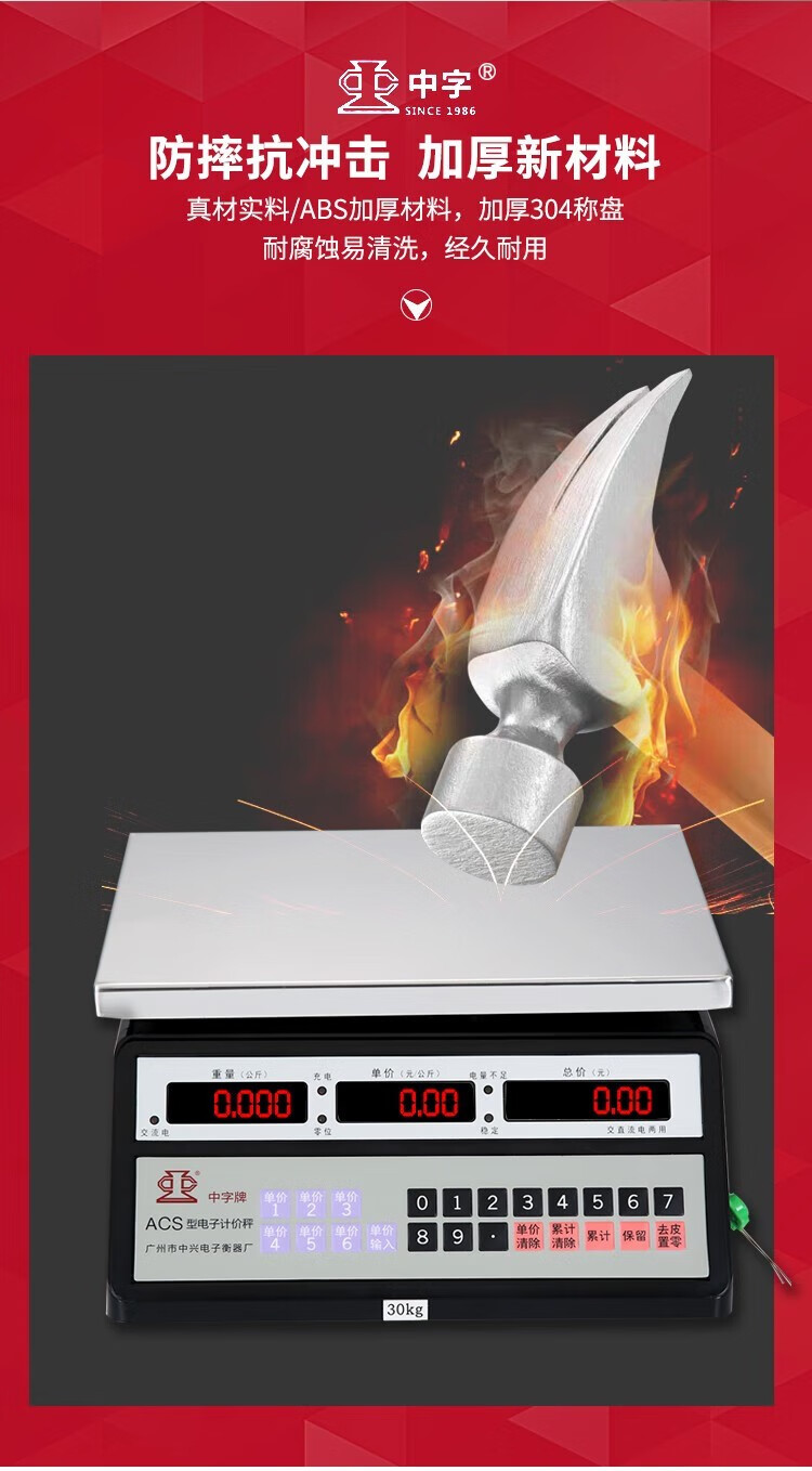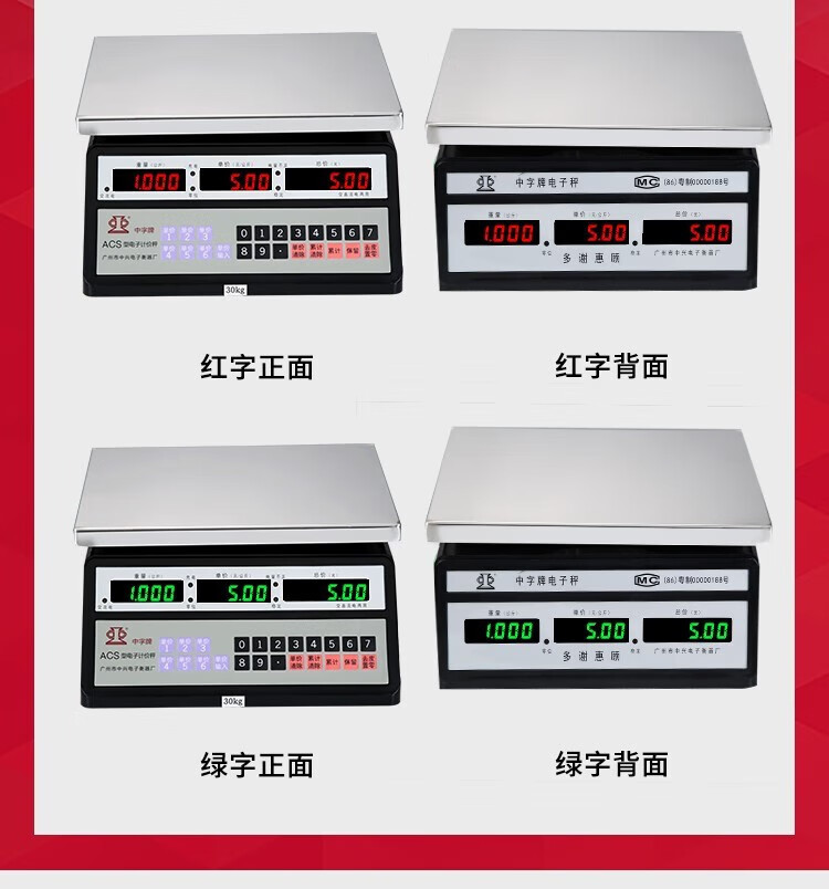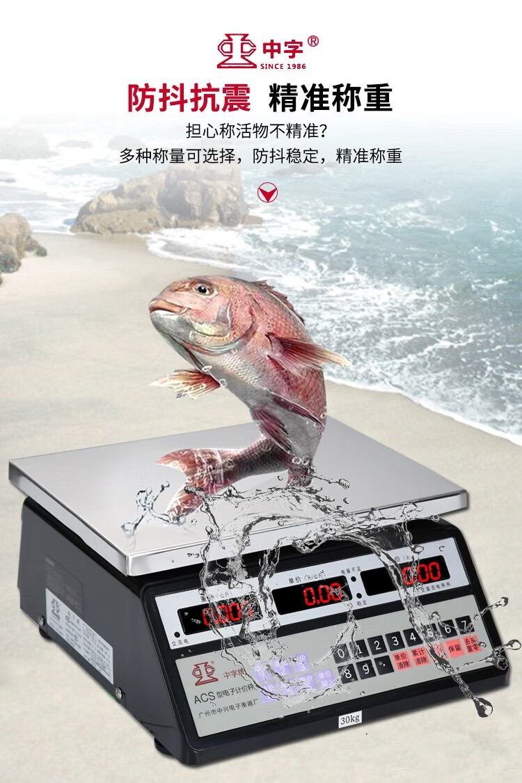 Guangzhou Zhongxing brand electronic scale commercial small stainless steel 30 kg waterproof scale aquatic seafood scale iron frame 300 kg indoor red letters 50*60cm