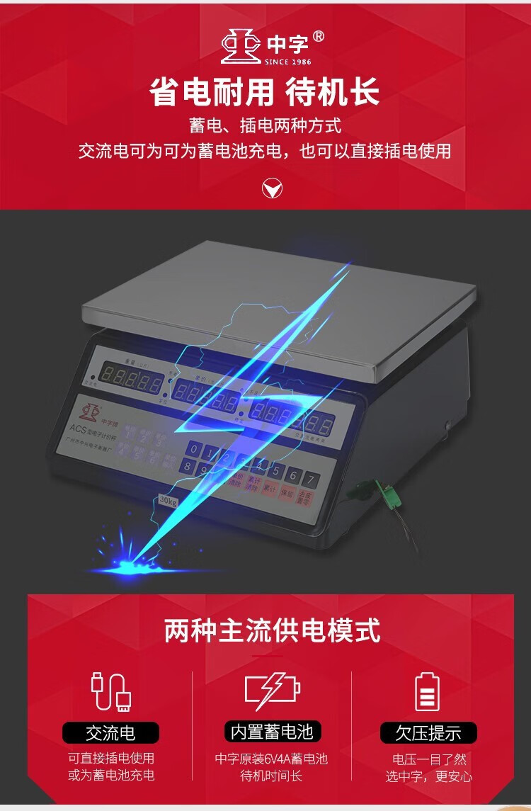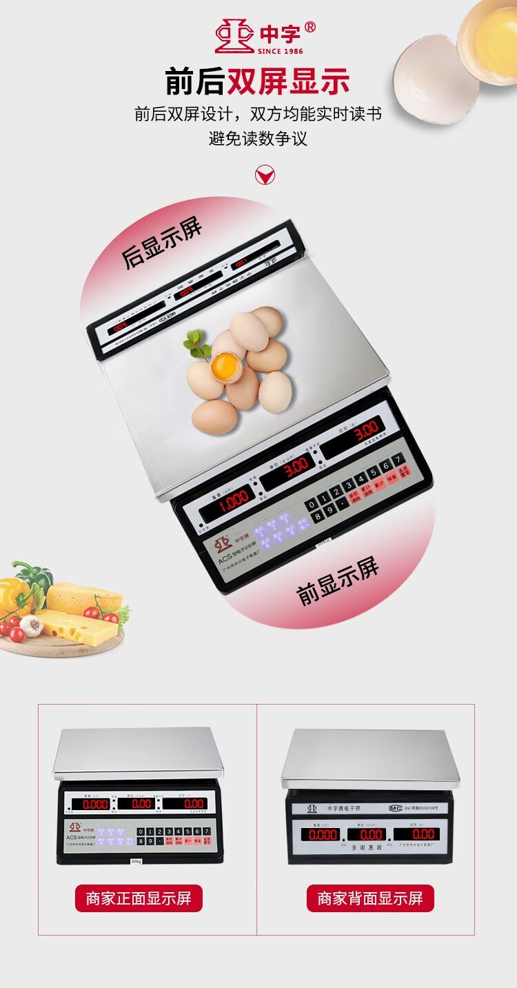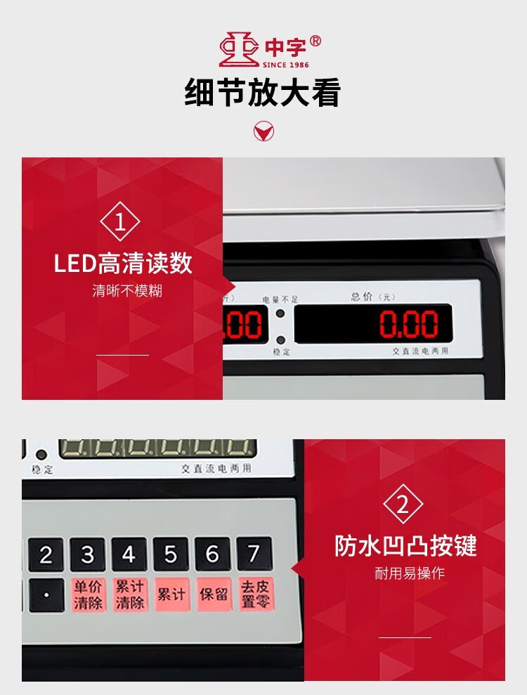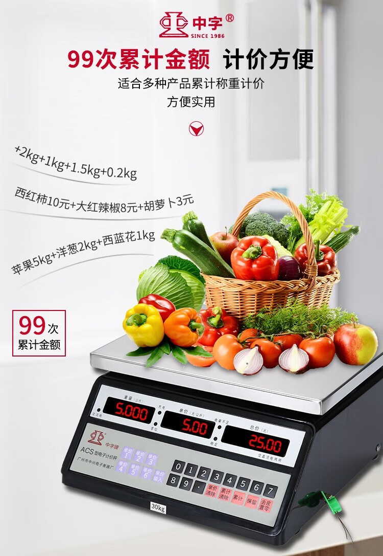 Guangzhou Zhongxing brand electronic scale commercial small stainless steel 30 kg waterproof scale aquatic seafood scale iron frame 300 kg indoor red letters 50*60cm