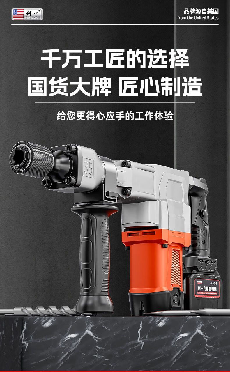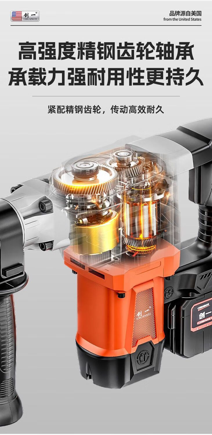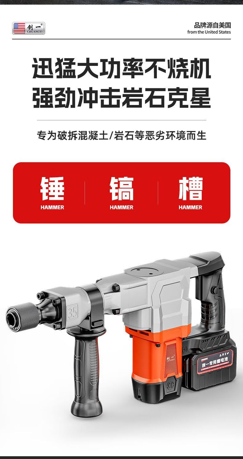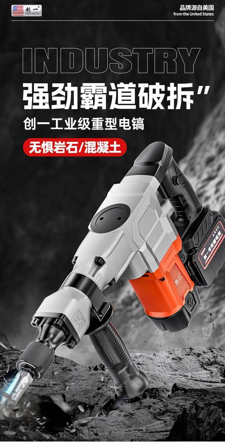 Chuangyi heavy-duty single-use lightweight brushless lithium battery pick high-power industrial-grade wall demolition, water and electricity installation concrete slotting pick 30-cell dual battery drama-free lithium battery pick + sharp pick package