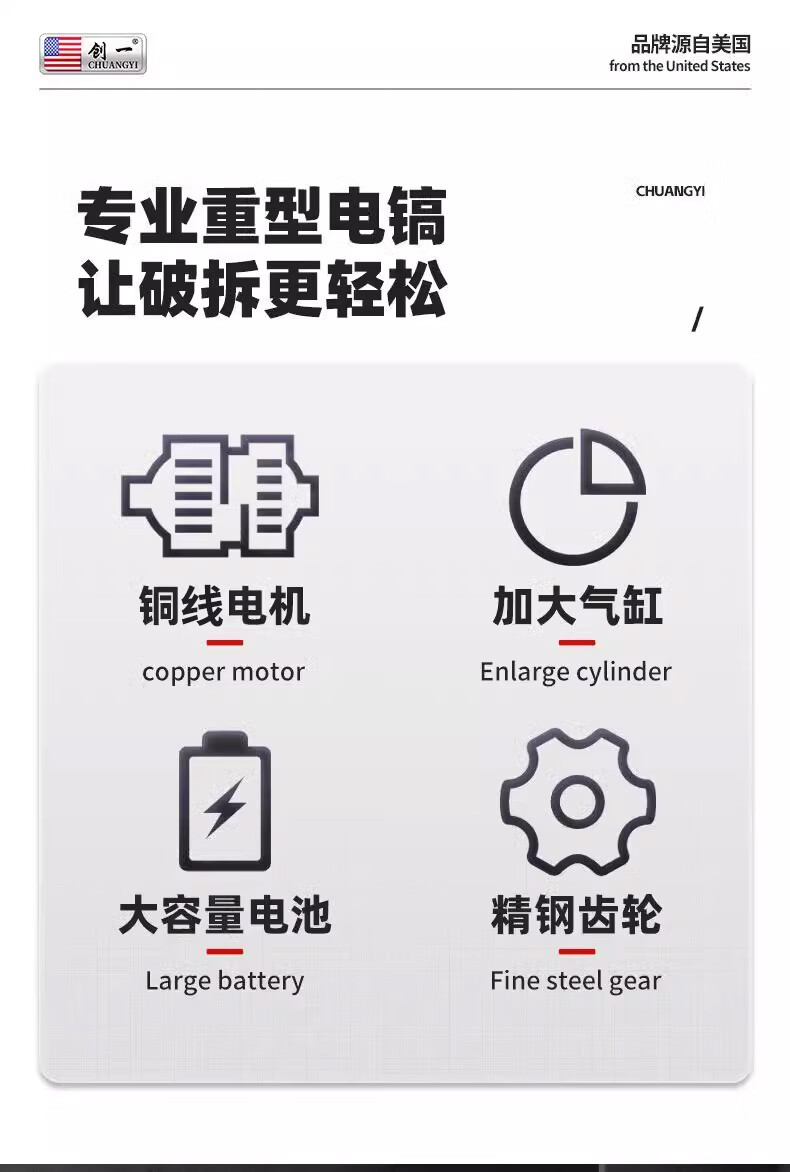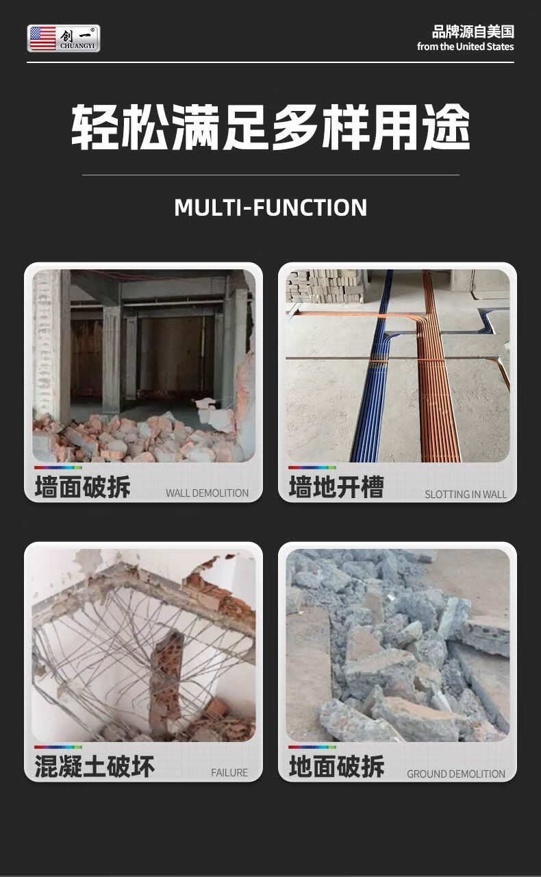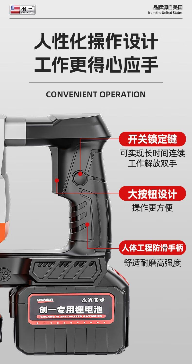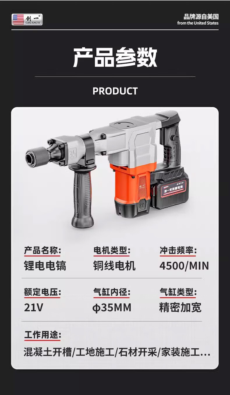 Chuangyi heavy-duty single-use lightweight brushless lithium battery pick high-power industrial-grade wall demolition, water and electricity installation concrete slotting pick 30-cell dual battery drama-free lithium battery pick + sharp pick package