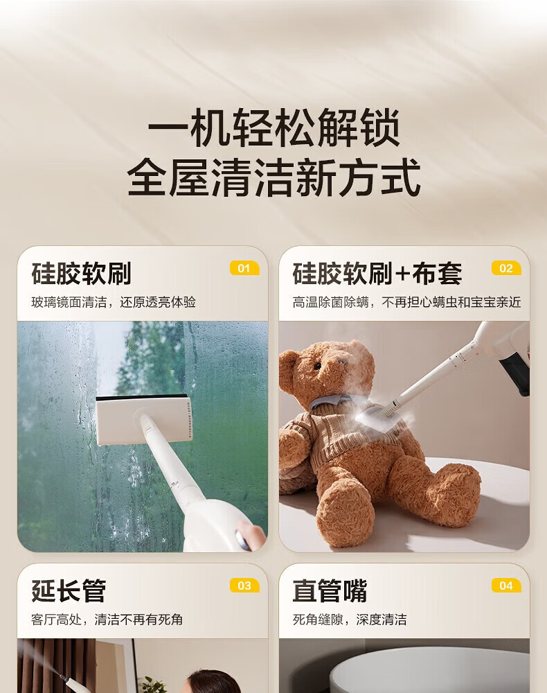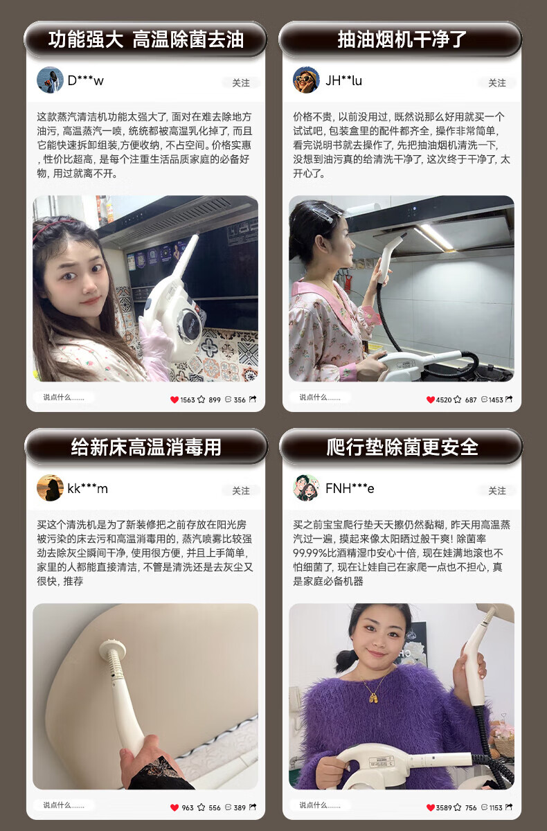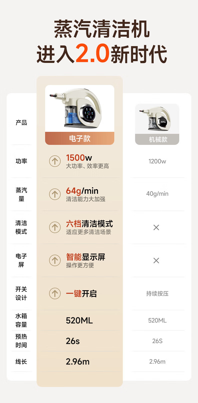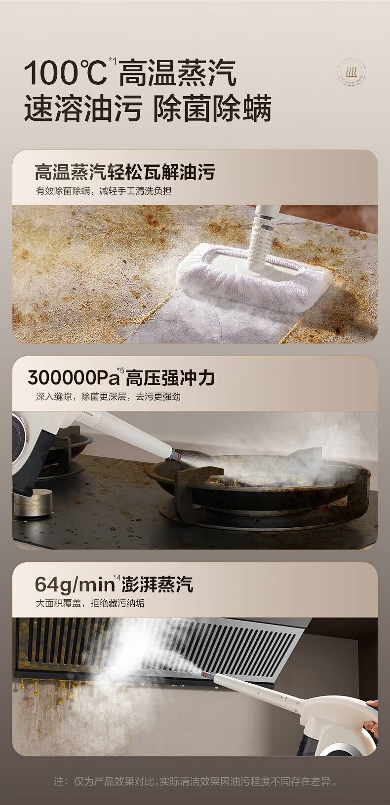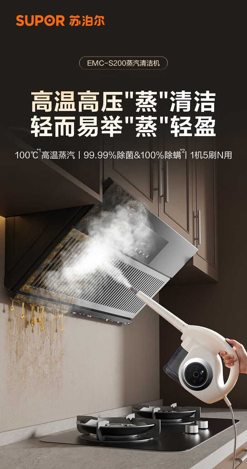 Supor official authentic steam cleaner, high temperature and high pressure steam engine, household portable sterilization, mite removal, decontamination, kitchen range hood, air conditioner, multi-function all-in-one cleaning machine, newly upgraded smart model, six-speed high-temperature cleaning steam engine + oil stain cleaner