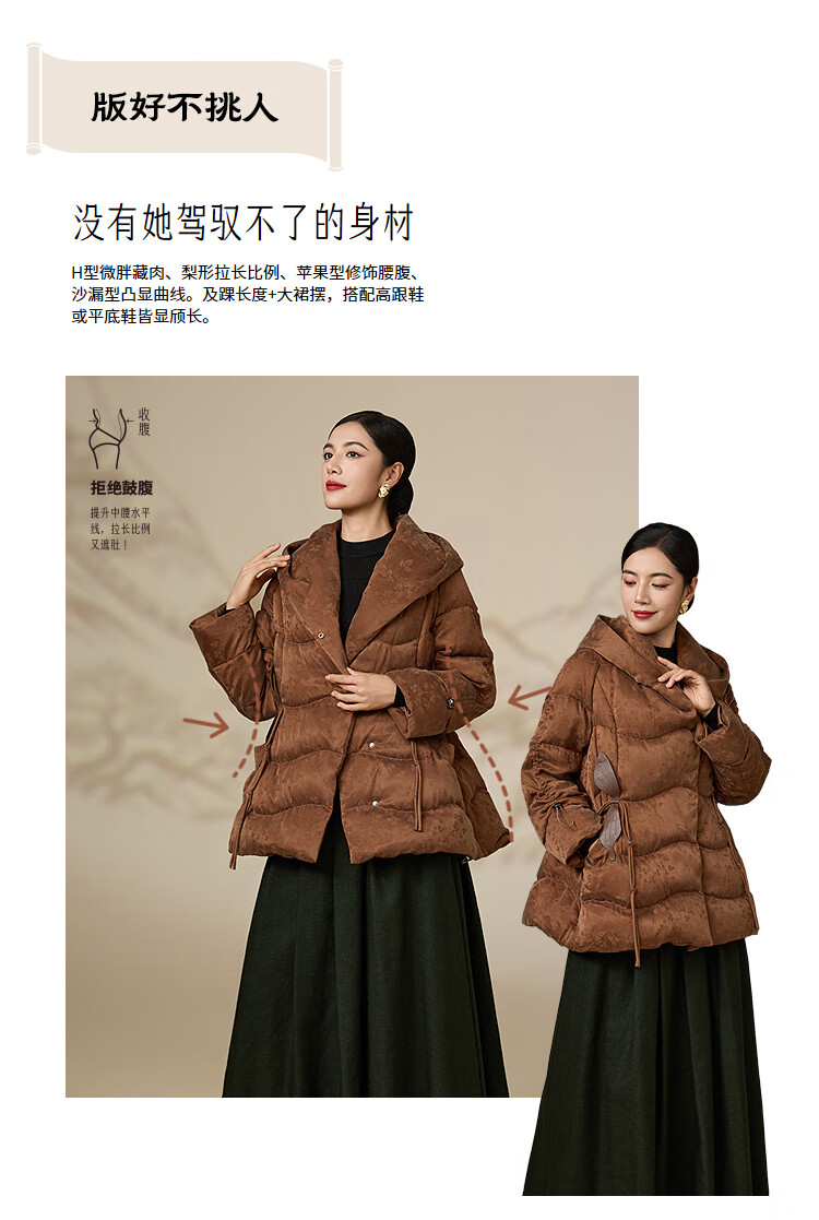 Xiangyin shopping mall same style winter down mid-length down jacket 2545113001 brown M