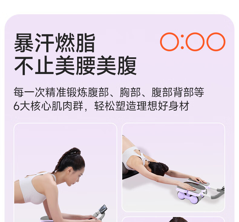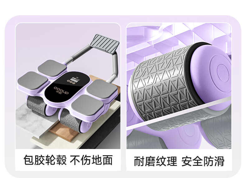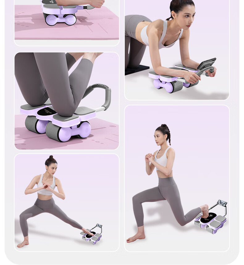 Sino-European fitness abdominal wheel automatic rebound curling abdominal slimming abdominal muscle training artifact sports household men and women four-wheel 2025 new upgraded four-wheel four-elbow support model - pink intelligent rebound - silent and anti-