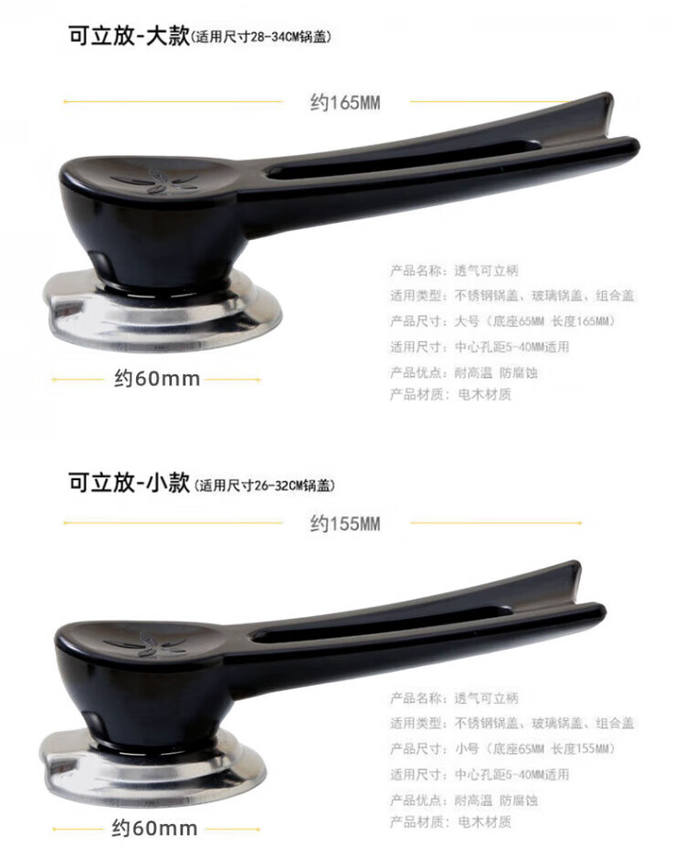 Kachi Muning German stand-up pot lid handle universal large hole anti-scalding cap wok milk pot iron glass pot lid handle stainless steel small style upright pot lid handle 2 pieces