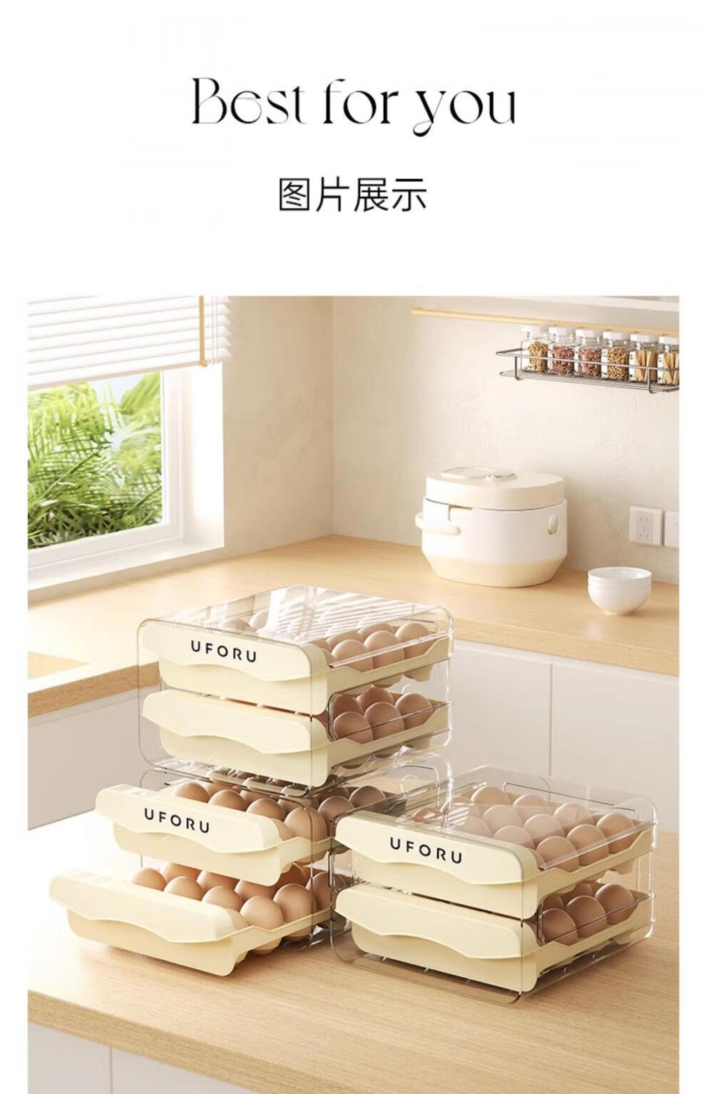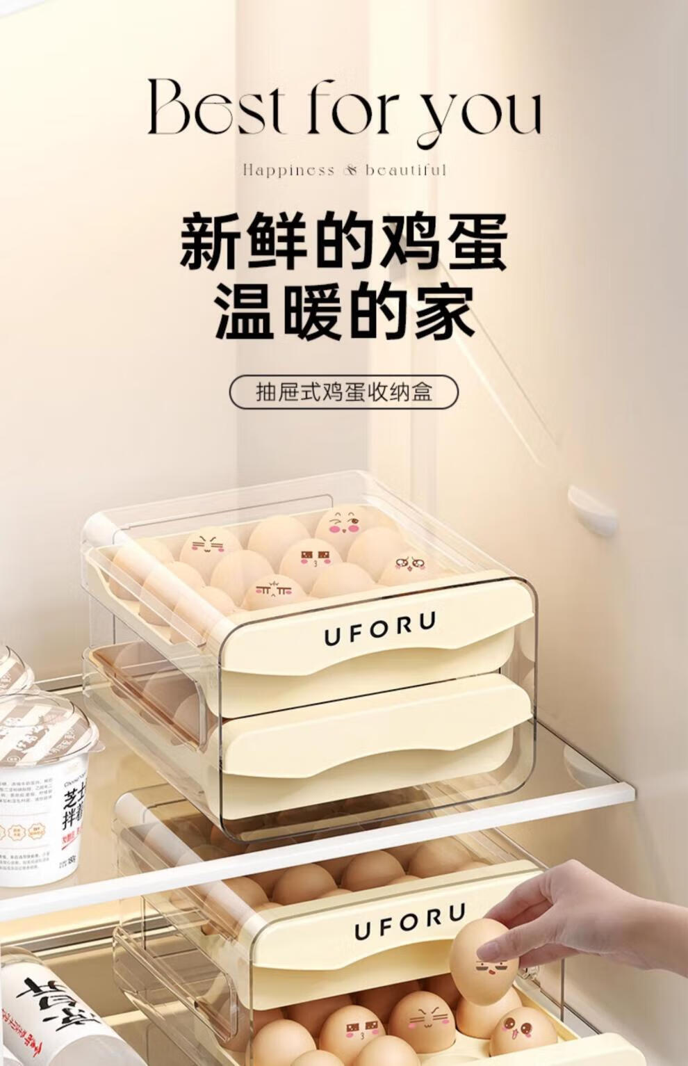 Miaopule egg storage box for refrigerator, special egg box, drawer-type food-grade home kitchen storage and organization god