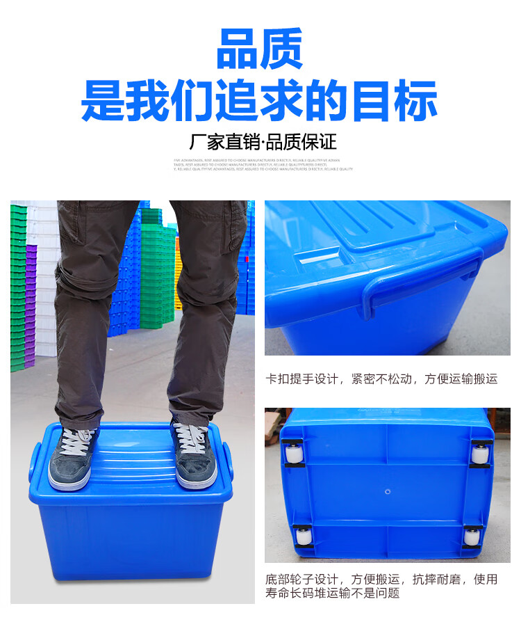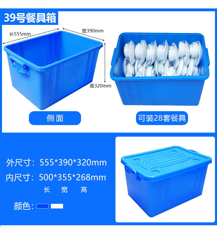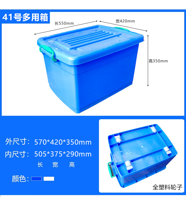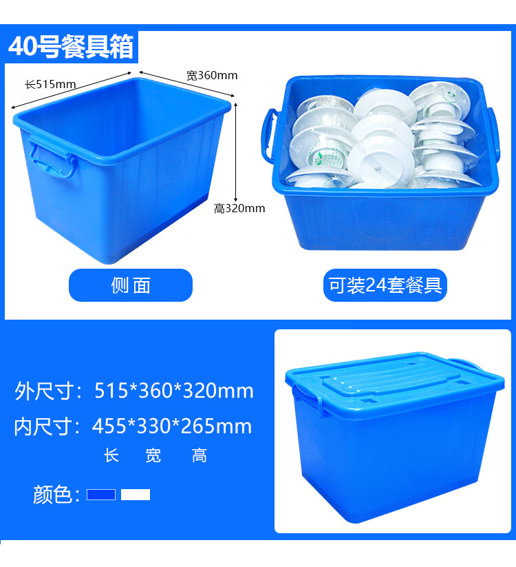 Seaport thickened plastic turnover box with wheels and lid tableware storage box storage box logistics transport box dishwashing box plastic box No. 40 cutlery box - blue - with lid and wheel Thickened new material - food grade