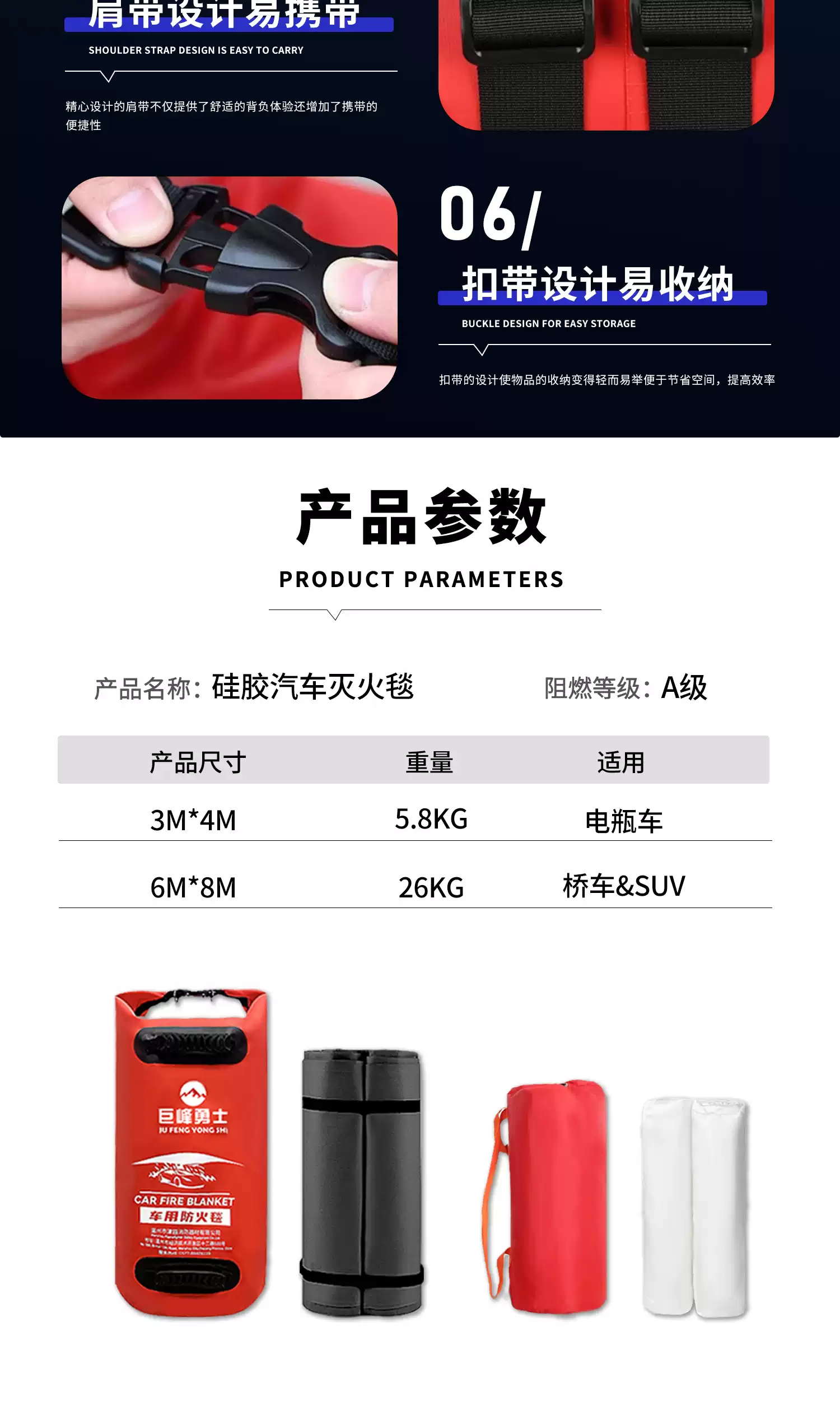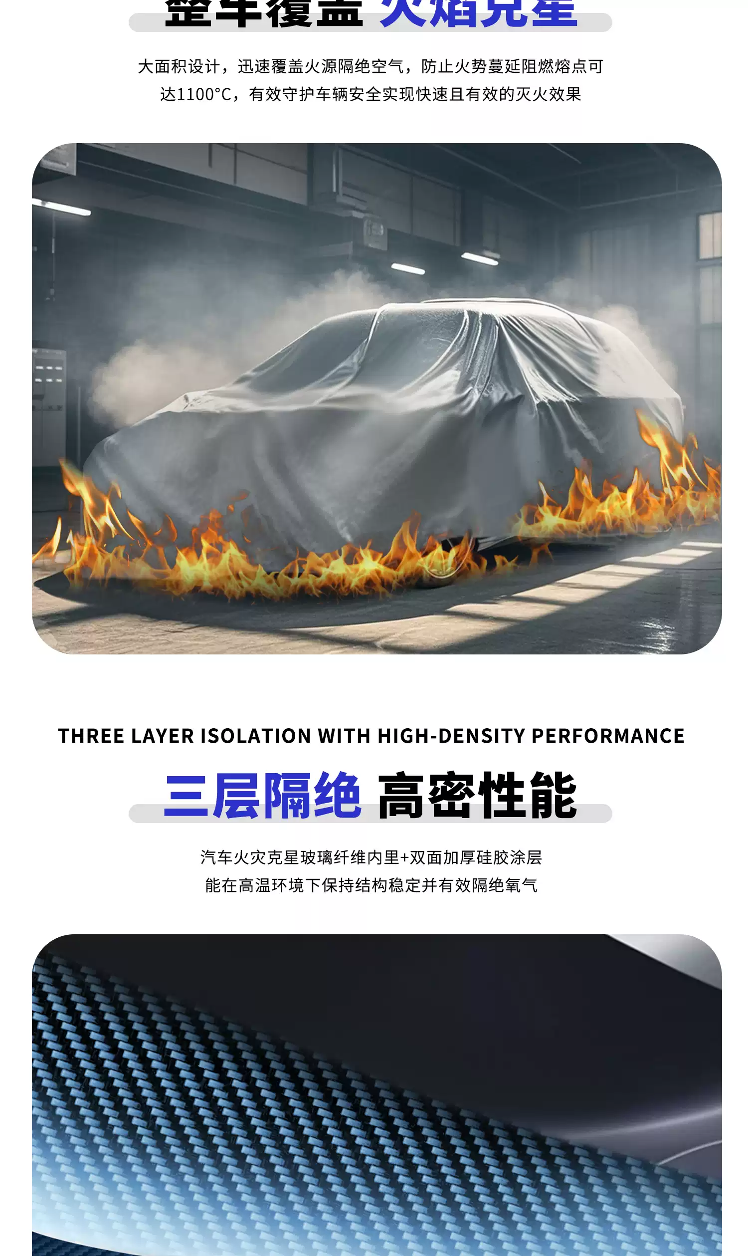 New energy vehicle fire blanket, silicone fire blanket for electric vehicle, fire truck cover, vehicle fire extinguishing cloth, 6x8m fiberglass car, SUV suitable