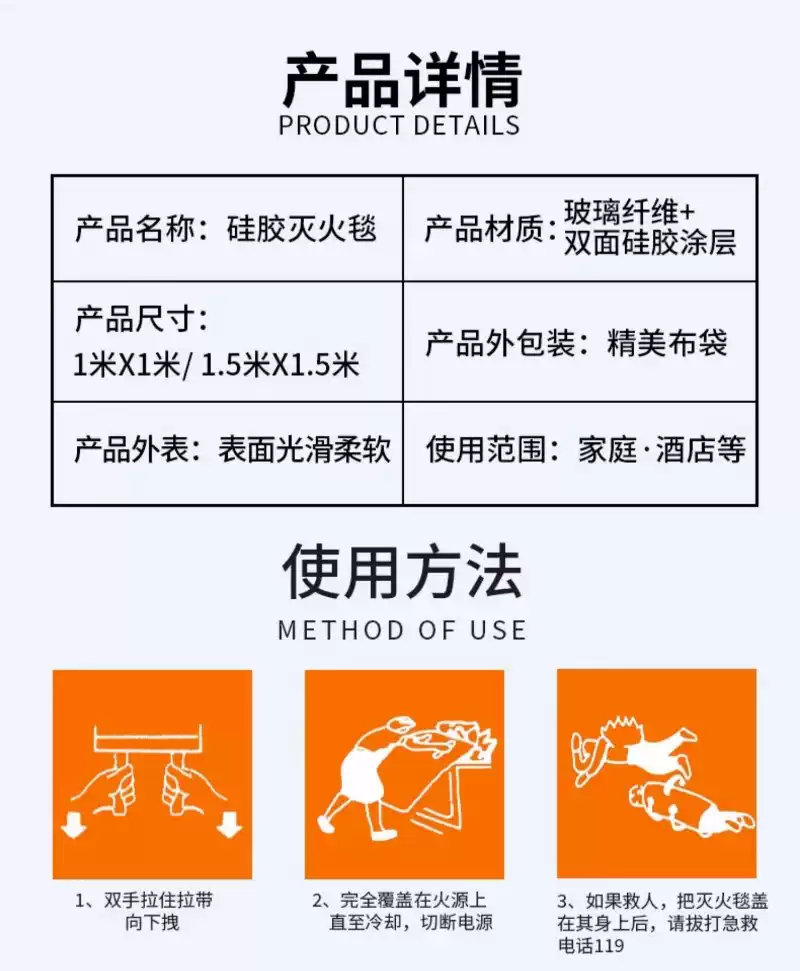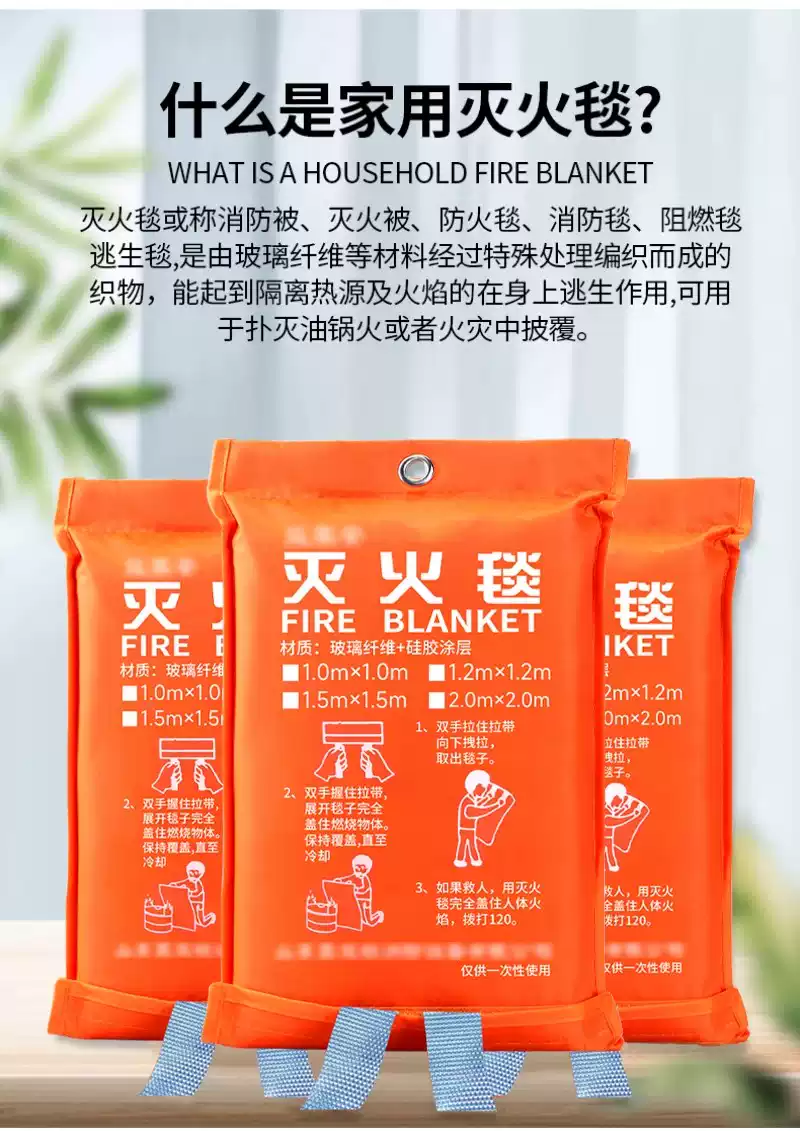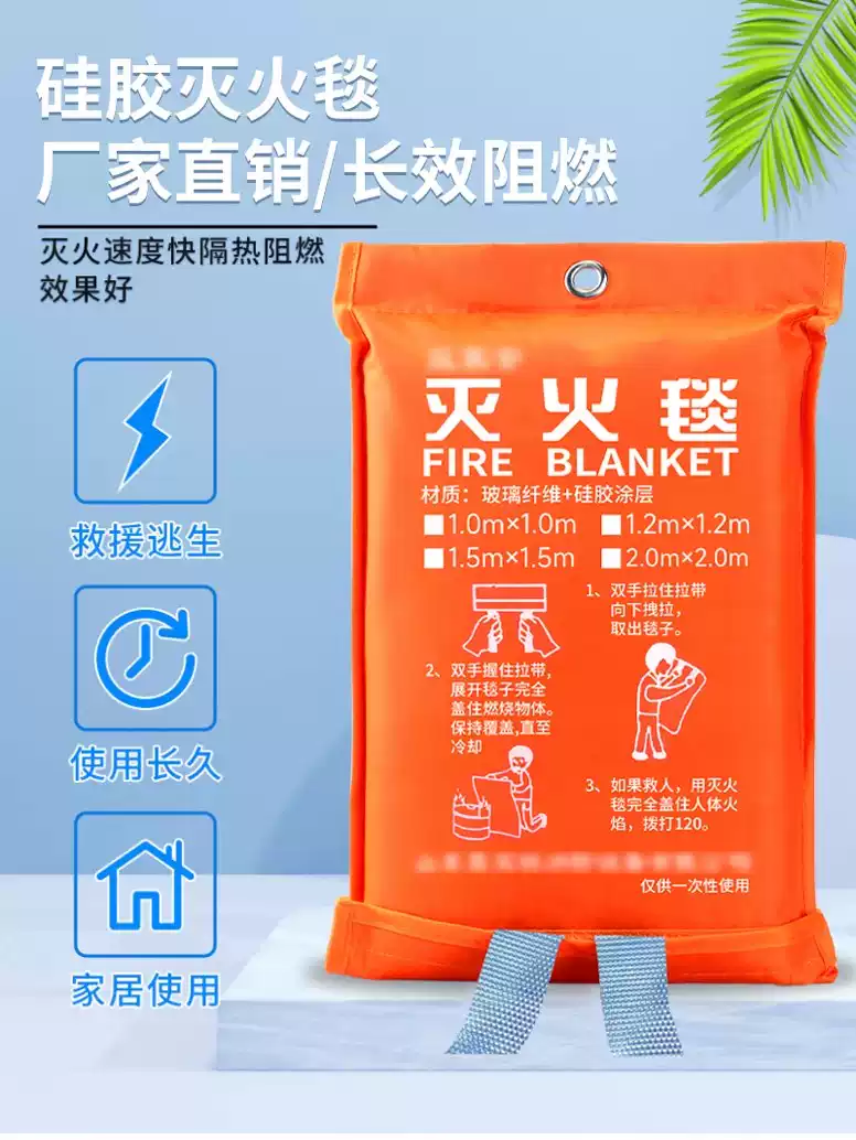 Silicone fire-extinguishing blanket, household fire-fighting certified kitchen fiberglass fire-resistant blanket, flame-retardant cloth, commercial national standard, 1 meter silicone fire-extinguishing blanket, single box