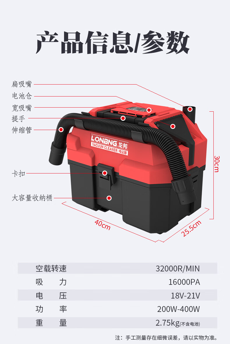 Longbang third generation tool box vacuum cleaner 21V lithium battery brushless industrial vacuum cleaner wireless high power high suction blowing Longbang vacuum cleaner bare metal Dayi A3 style pin