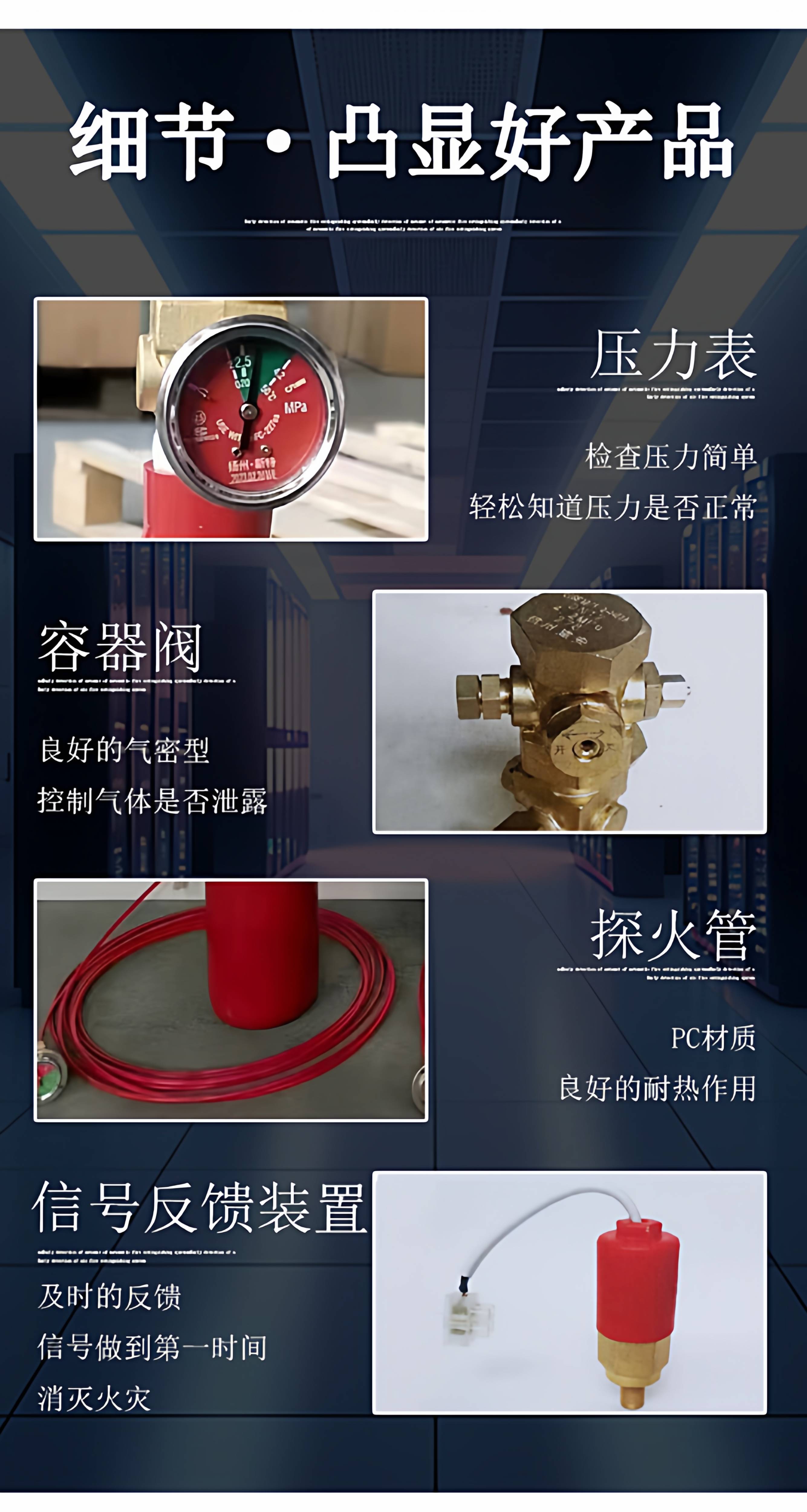 Minshan fire detection tube automatic fire extinguishing device gas fire extinguishing device carbon dioxide heptafluoropropane perfluorohexanone fire extinguisher direct heptafluoropropane fire detection tube 3KG