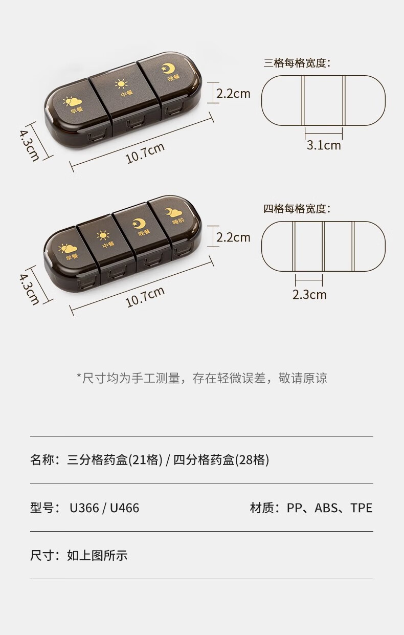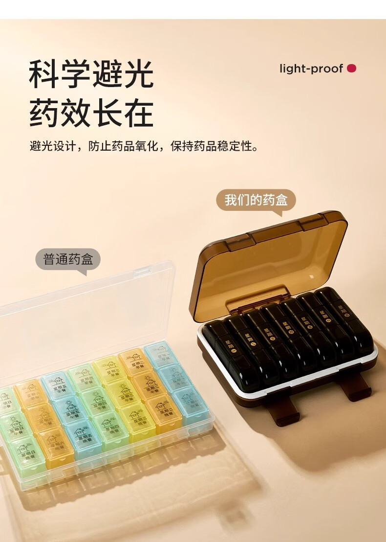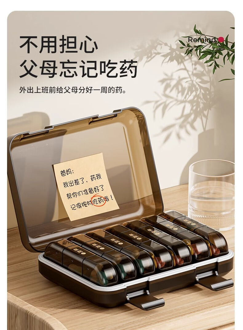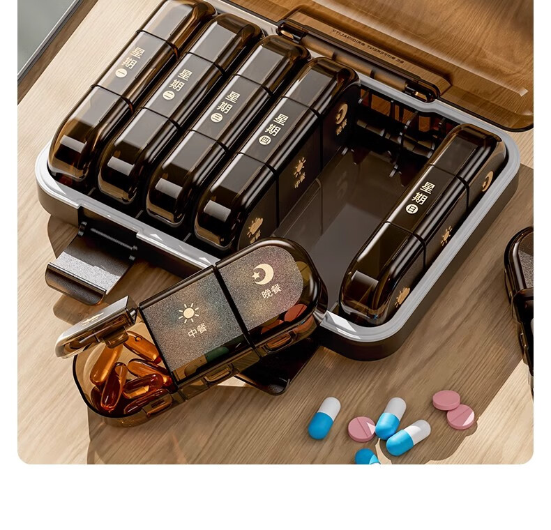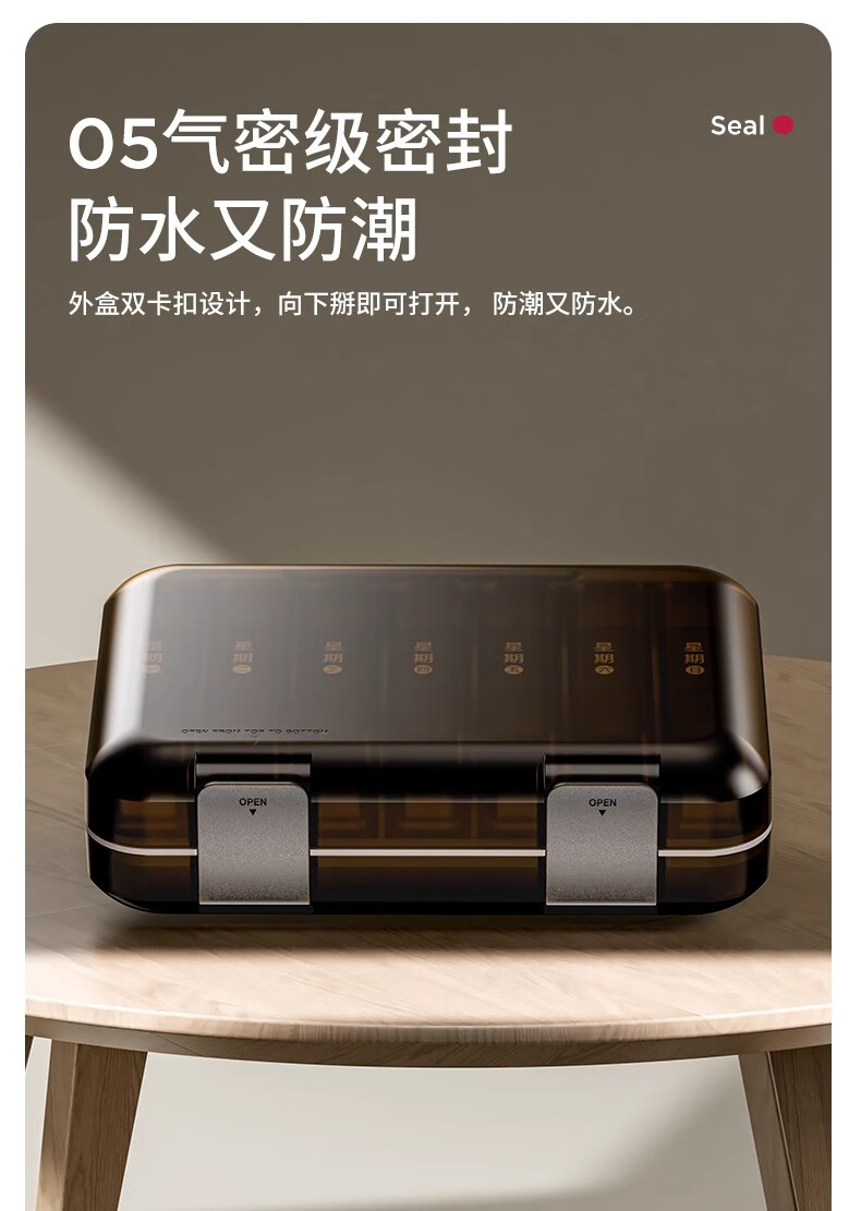 Huli German high-end medicine box seven days a week medicine dispenser medicine reminder medicine portable small box black 21 compartments food grade + moisture-proof + three-layer sealing