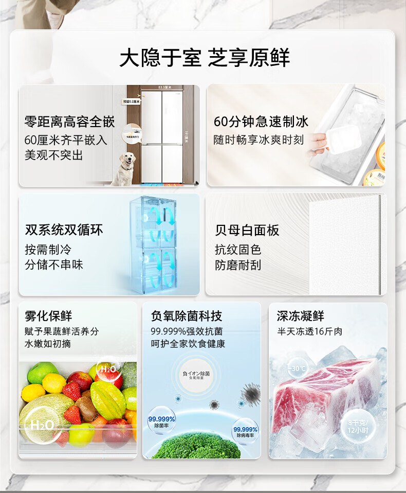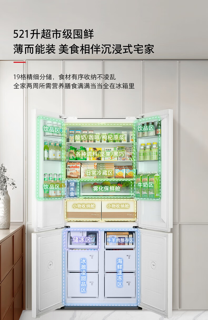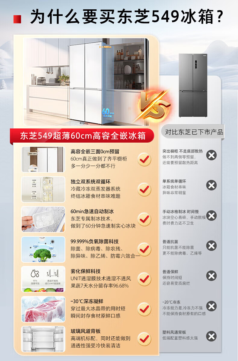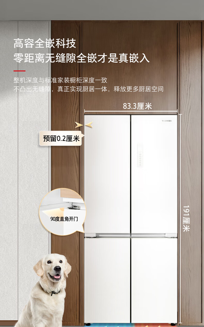TOSHIBA 549 white pearl high capacity fully embedded 60cm ultra-thin zero embedded dual system automatic ice making cross double door air-cooled frost-free household refrigerator GR-RF549WI-PM165 cloud white