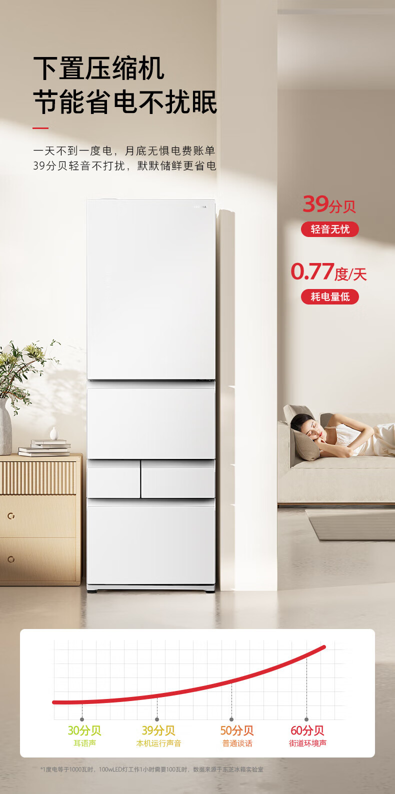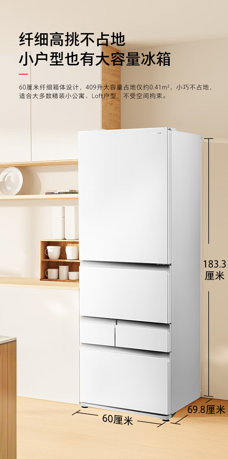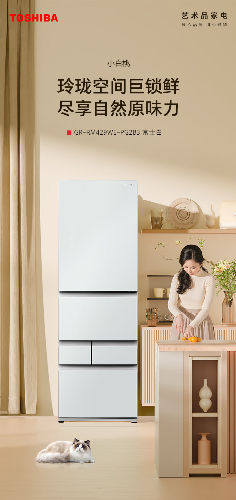 Toshiba (TOSHIBA) 429 small white peach, the same style as the Internet celebrity, Japanese-style five-door large-capacity small apartment built-in automatic ice-making air-cooled frost-free multi-door white household refrigerator GR-RM429WE-PG2B3 Fuji white glass panel