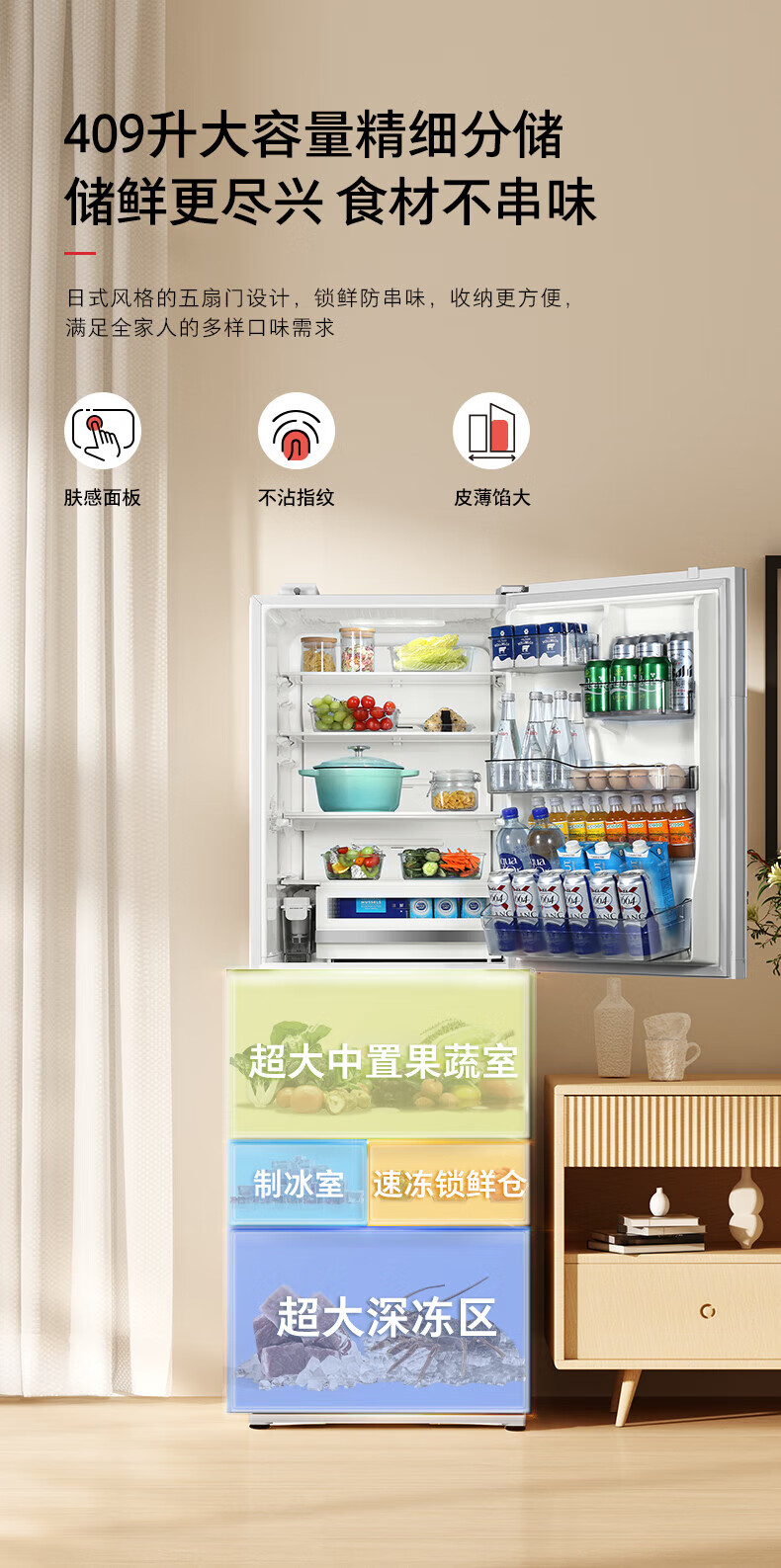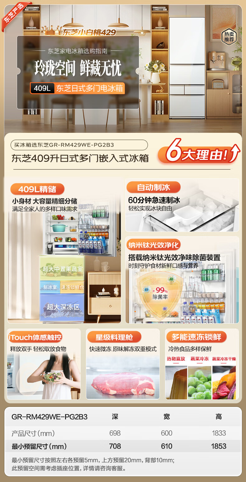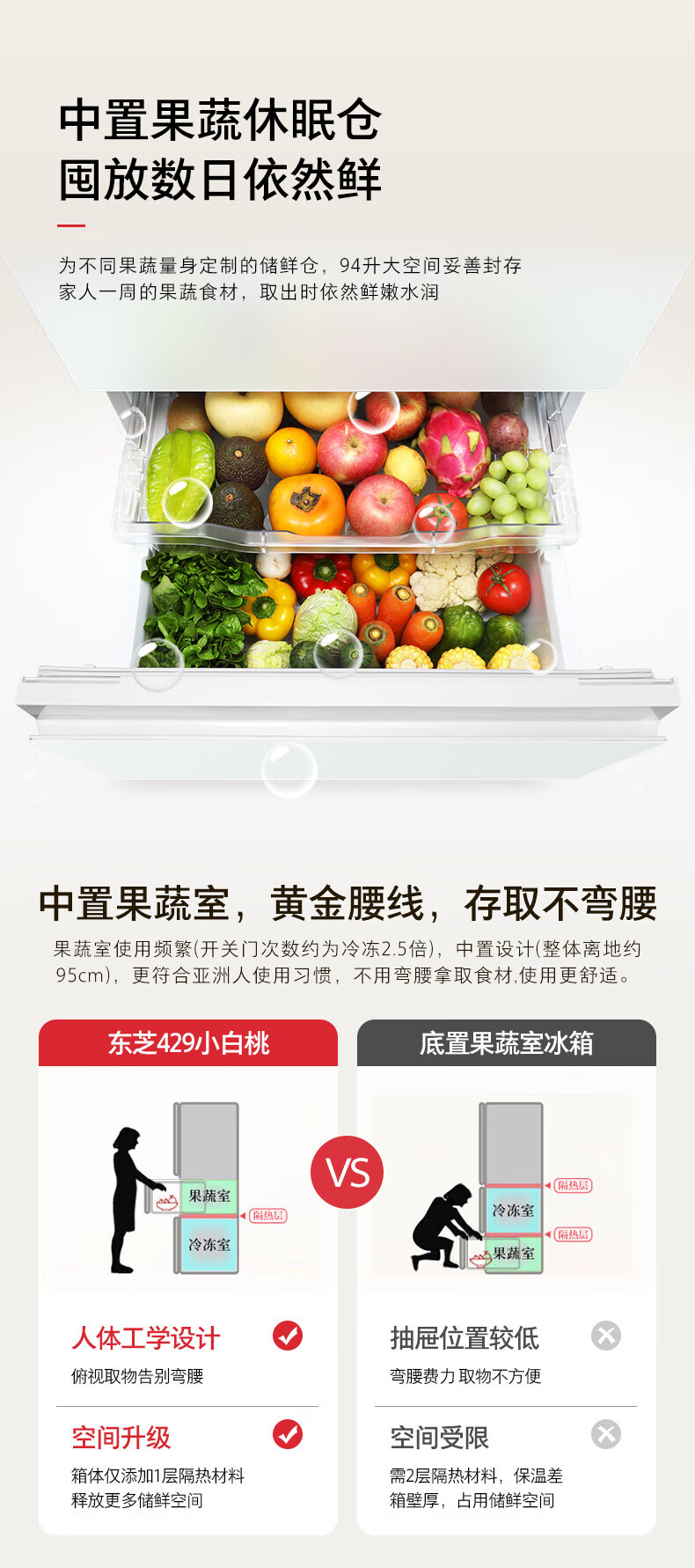 Toshiba (TOSHIBA) 429 small white peach, the same style as the Internet celebrity, Japanese-style five-door large-capacity small apartment built-in automatic ice-making air-cooled frost-free multi-door white household refrigerator GR-RM429WE-PG2B3 Fuji white glass panel