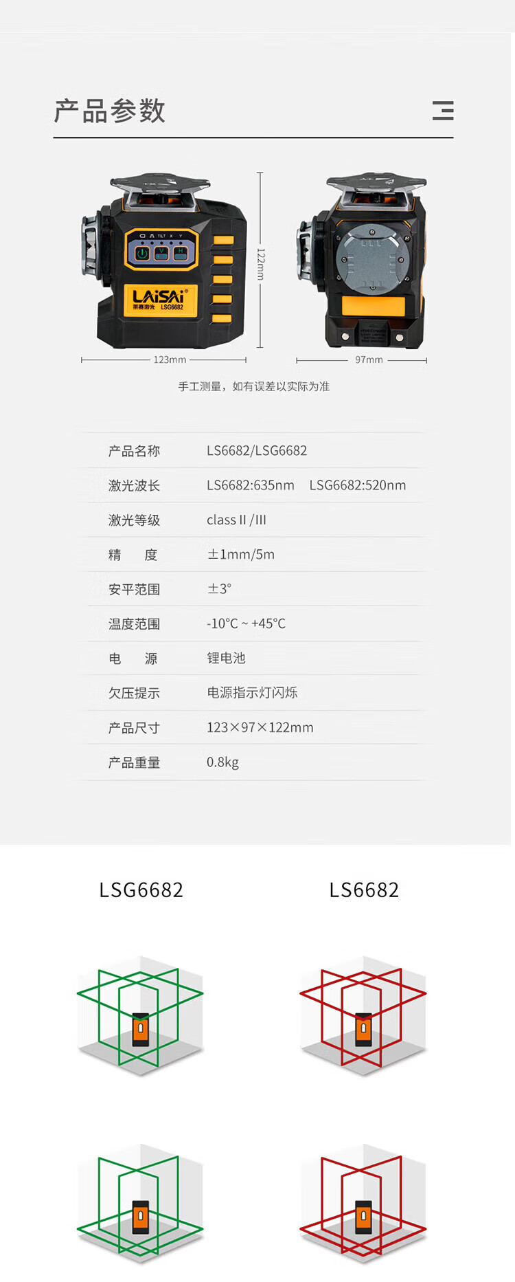 Laisai laser level high-precision strong light thin line new LSG6682/LS6682 green light red light 12-line laser green light 12-line dual power standard