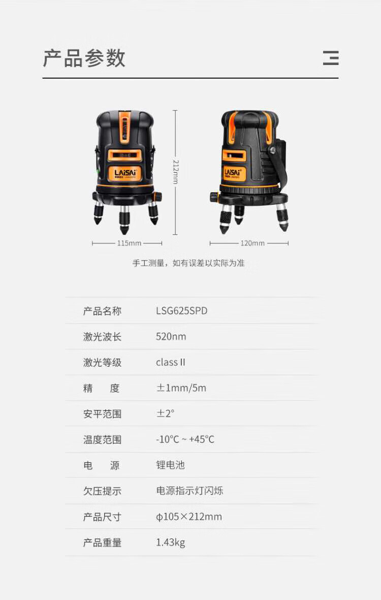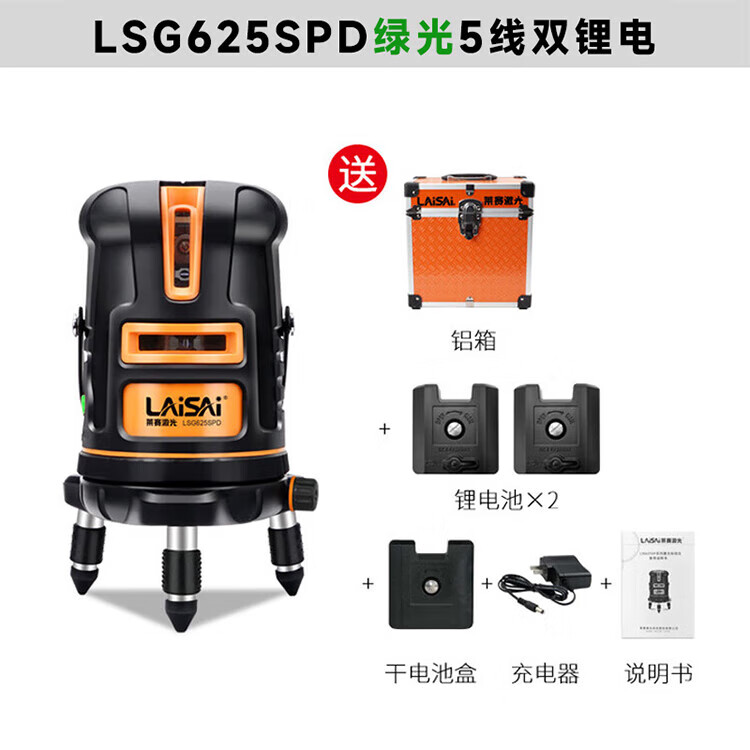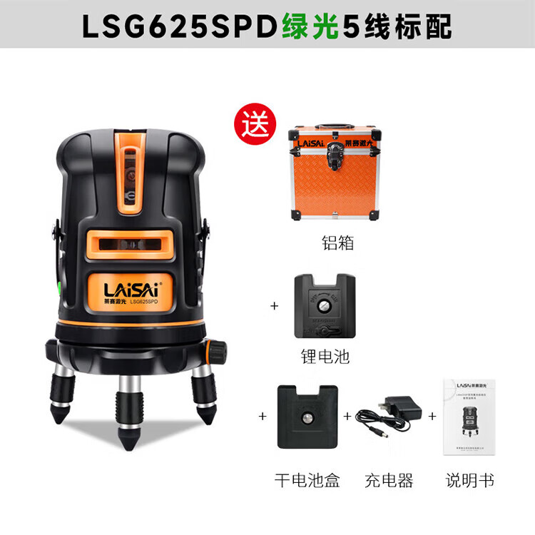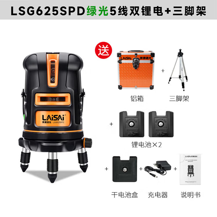 Laser laser level green light 5-line LSG625SPD high-precision thin line with laser enhanced point measuring instrument tool marking instrument standard + 1 point 5-meter tripod