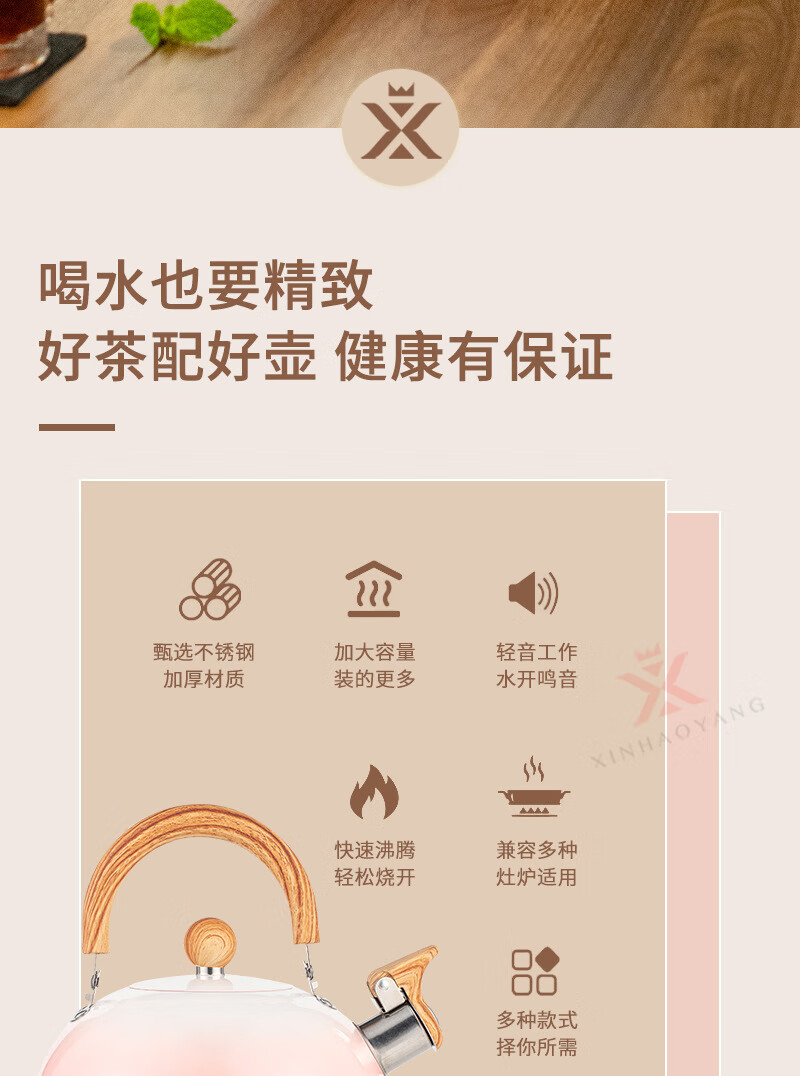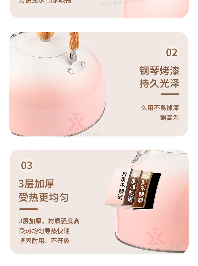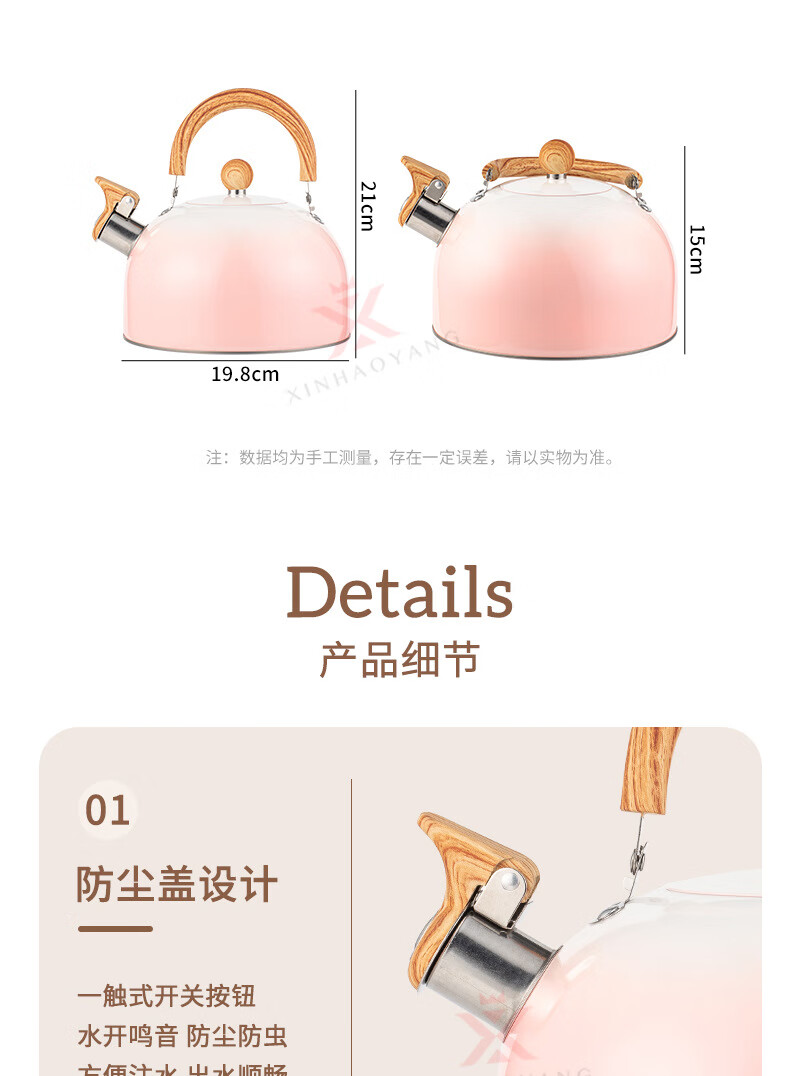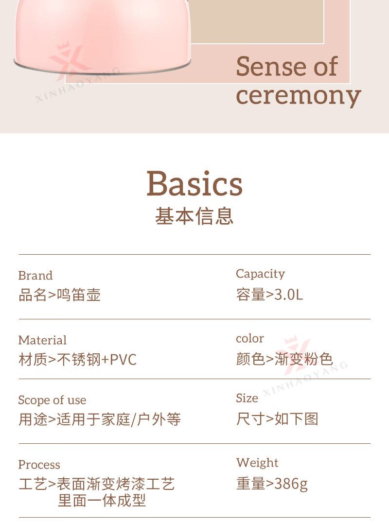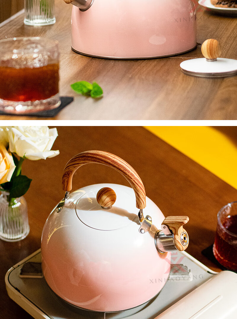 Fat Donglai household stainless steel chime kettle high-looking gradient kettle new hot water kettle pink 3L 3.0L