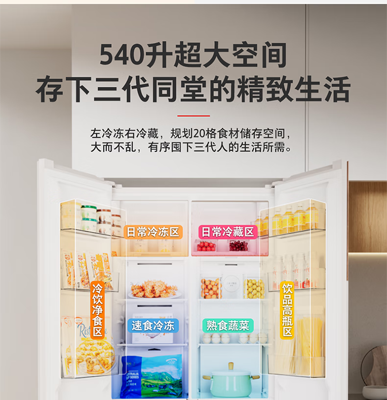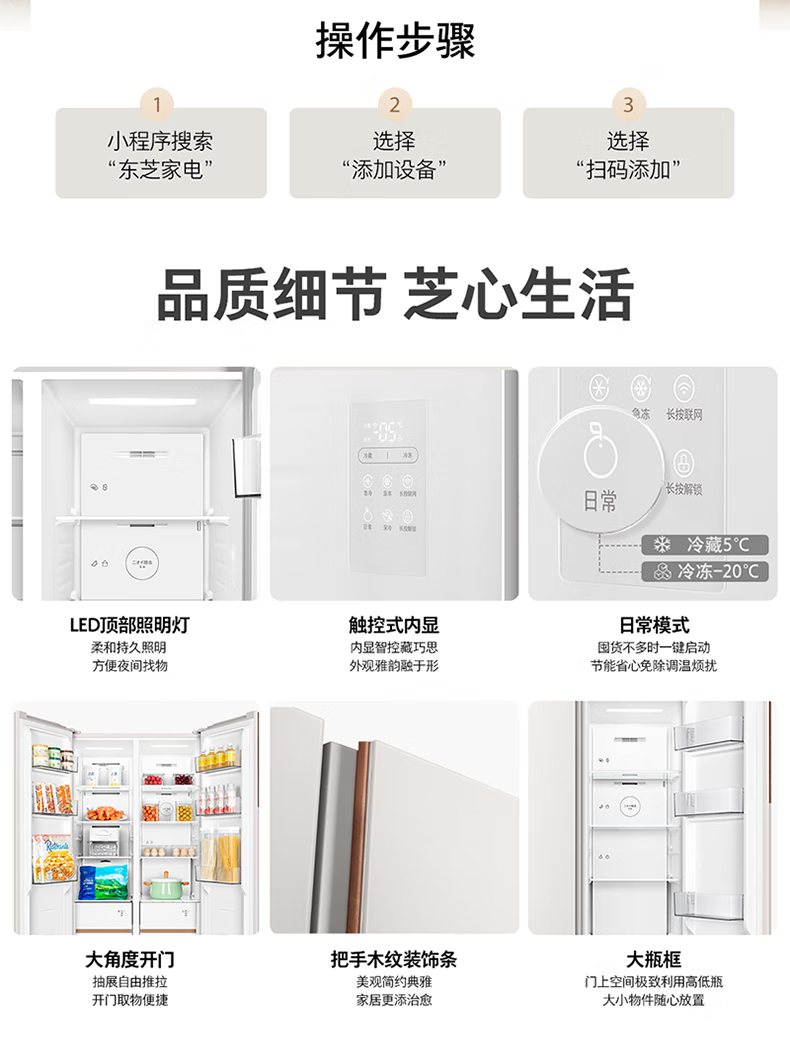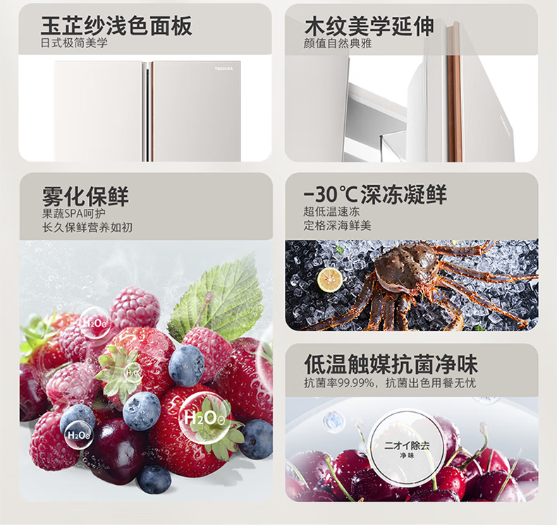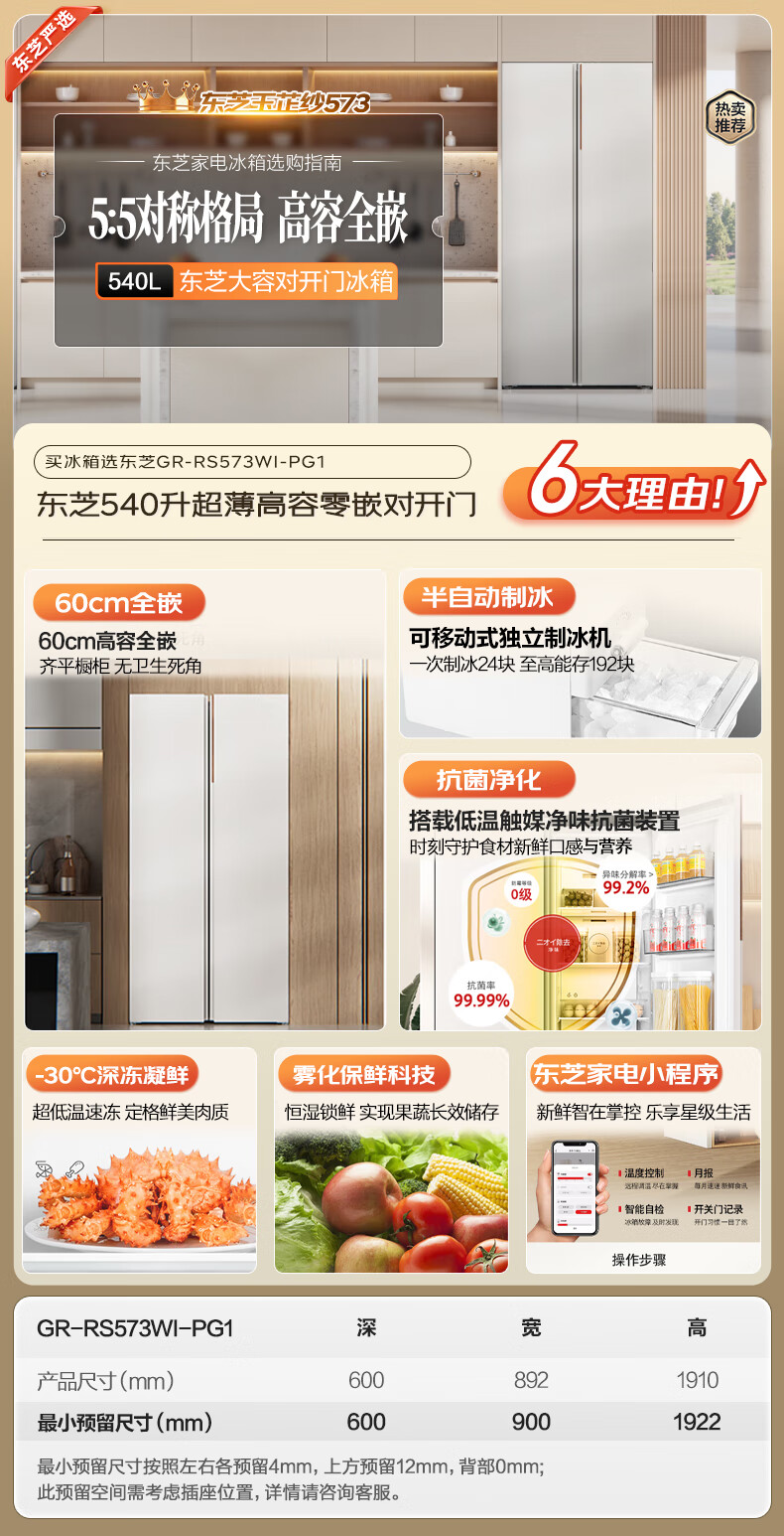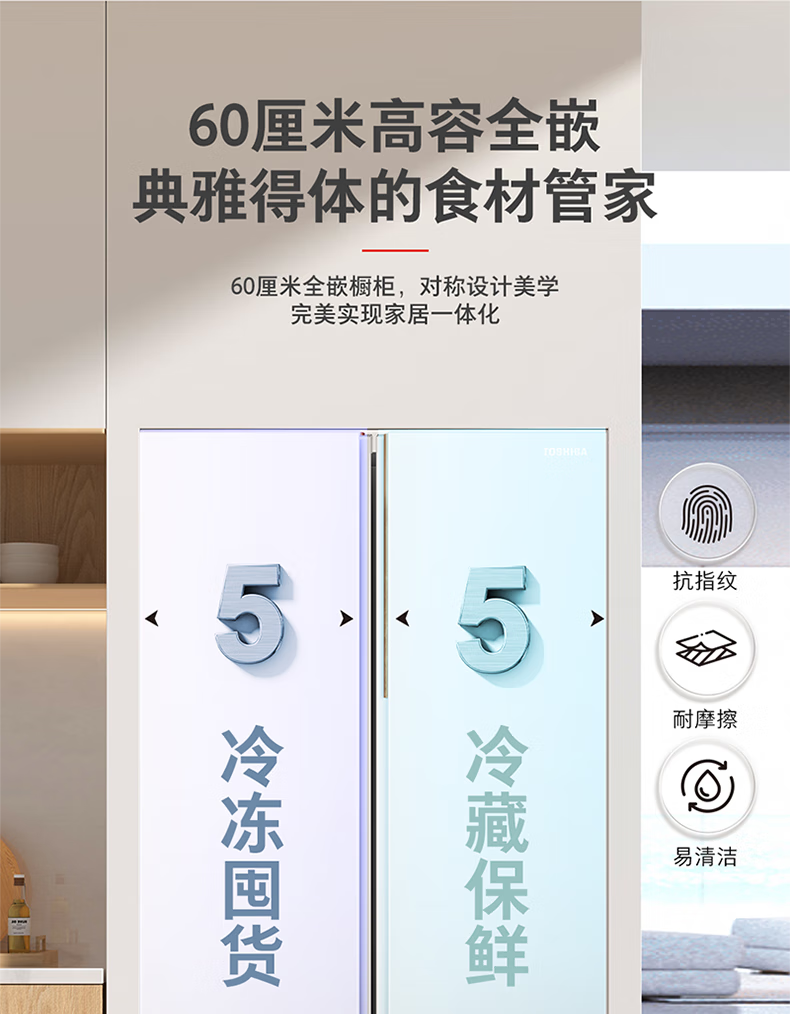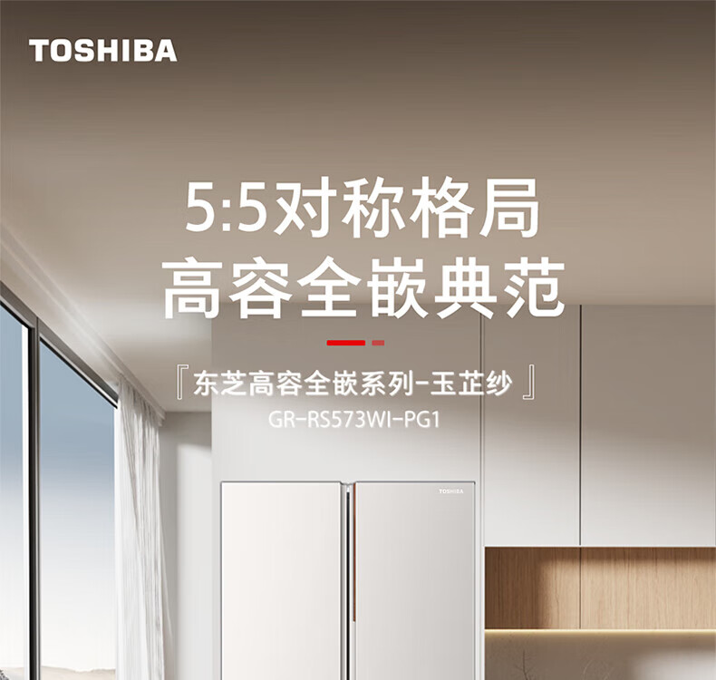 TOSHIBA 573 double-door 60cm ultra-thin high-capacity zero-embedded semi-automatic ice-making first-level energy-saving energy-saving frost-free three-generation household fresh-keeping refrigerator GR-RS573WI-PG1