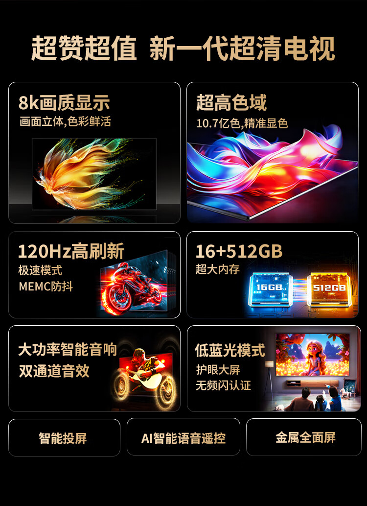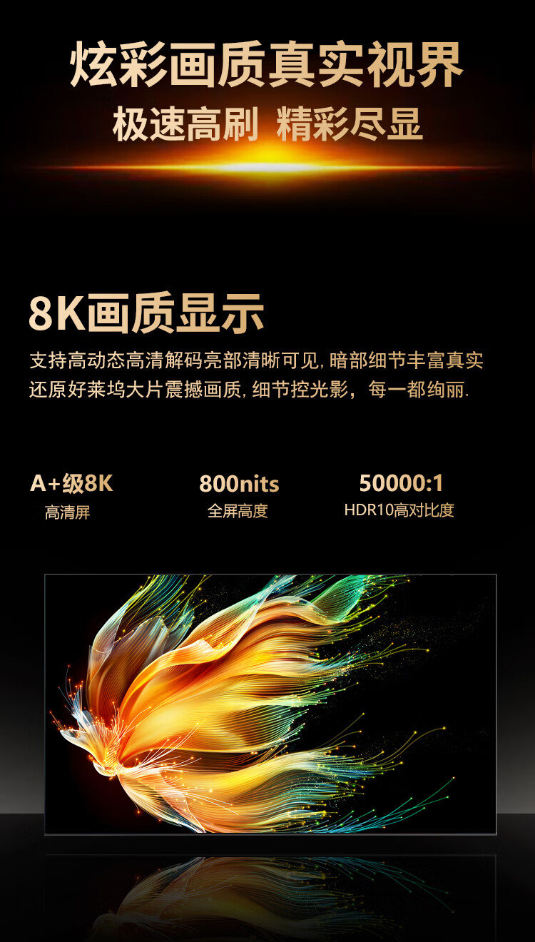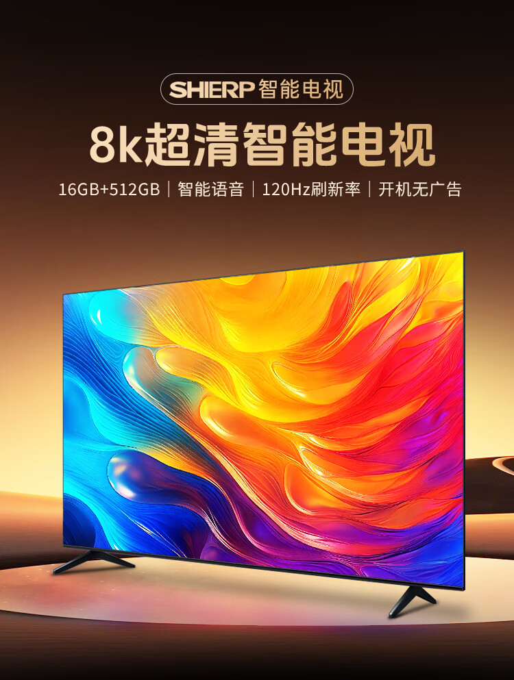 SHIERP original Japanese imported TV 8K Zhenhua HD ultra-thin smart network TV living room projection monitoring home LCD full screen with frame bedroom eye protection tablet 80 inches imported series A+ screen 8K smart screen luxury flagship version 16+512G free home installation + TV membership