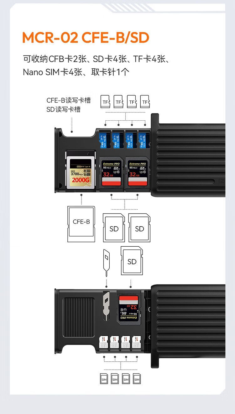 Youbasket MCR-01/02 multifunctional high-speed card box reader card slot storage read and write two-in-one MCR-02 CFE-B flash card box