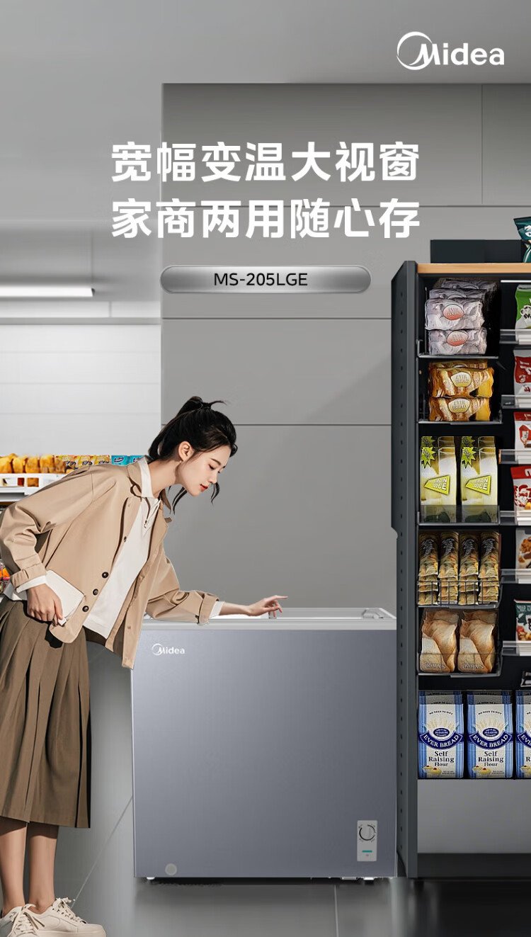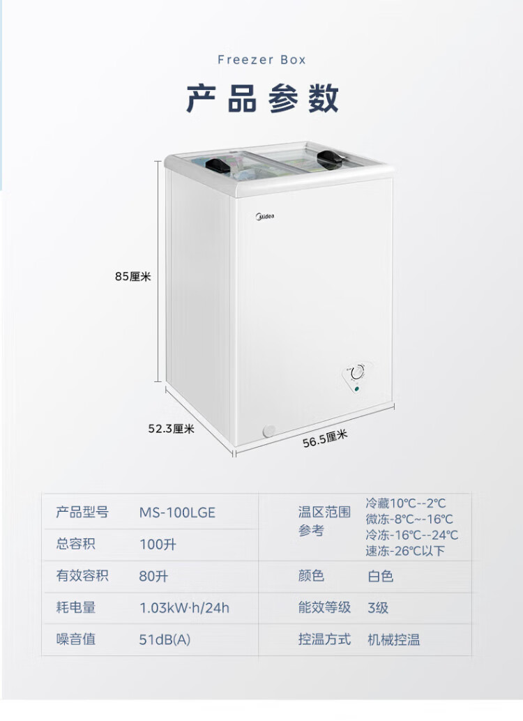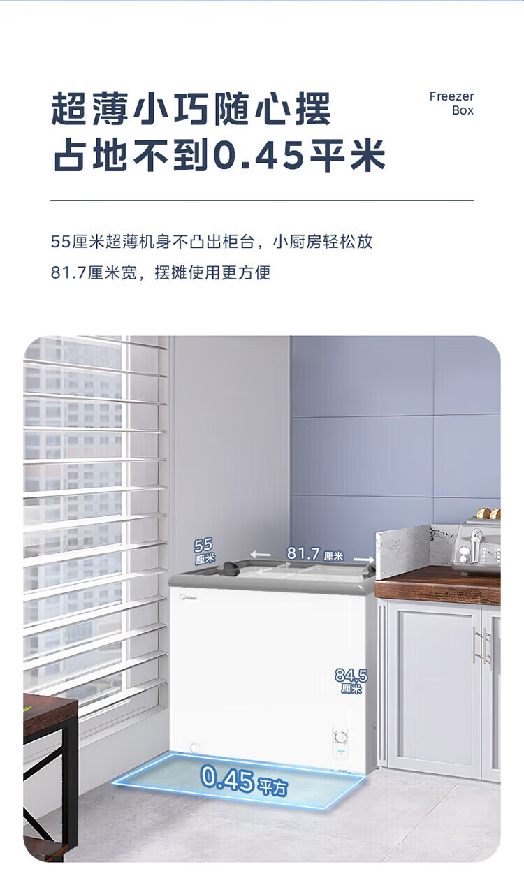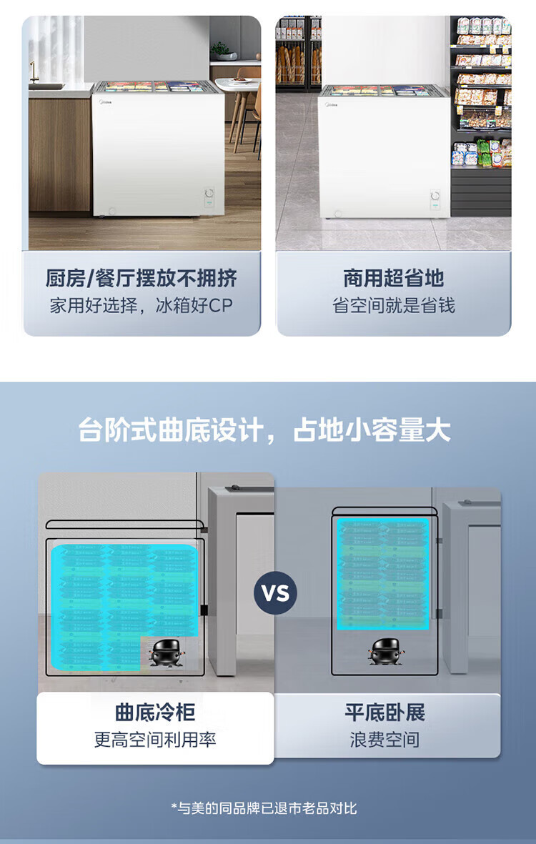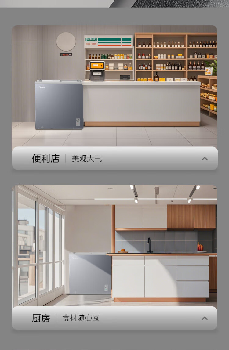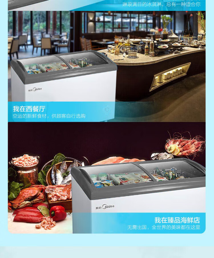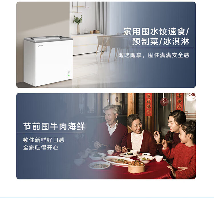 Midea's ready-made home freezer refrigerator ice cream cabinet small freezer display cabinet commercial large-capacity refrigerated fresh-keeping cabinet freezer dual-use first-class energy-saving display cabinet 100L comes with rollers upgraded with lock