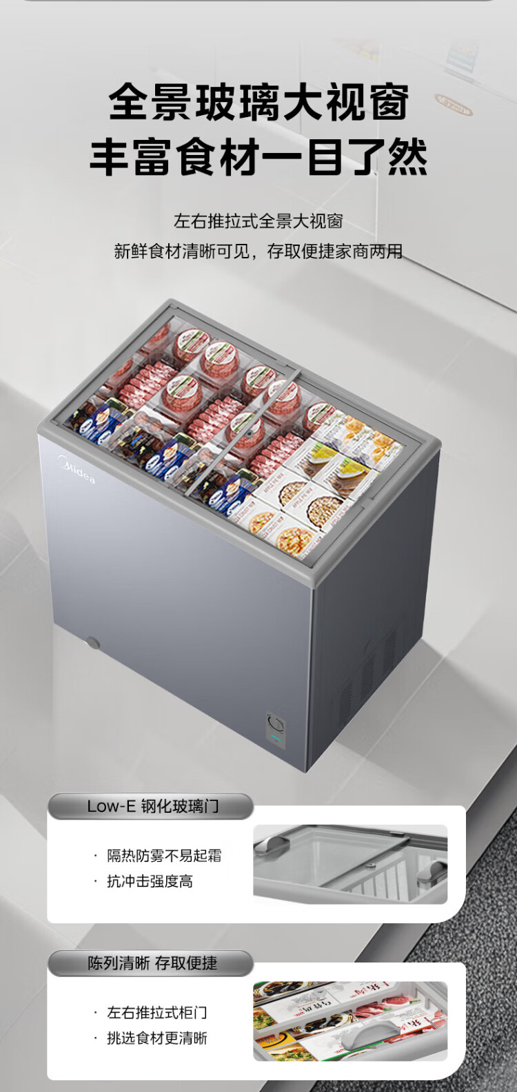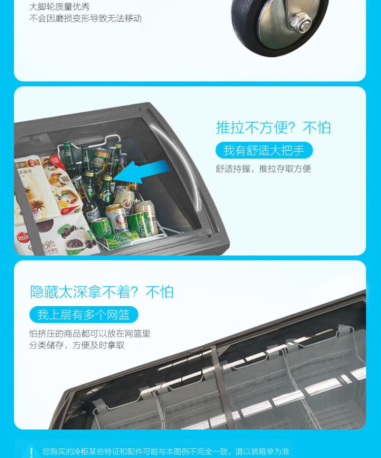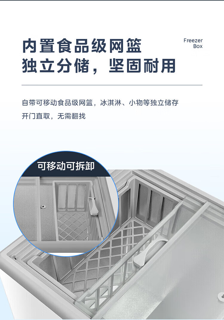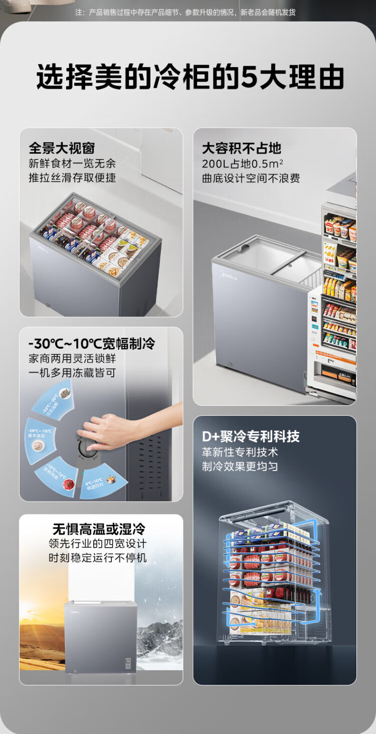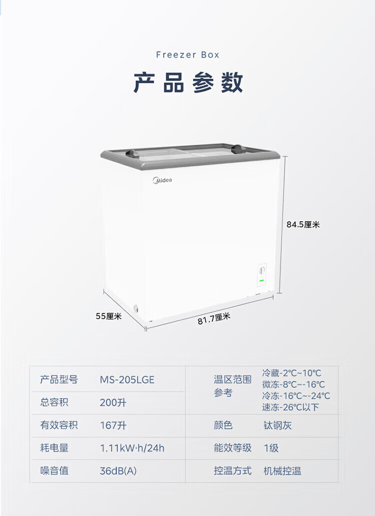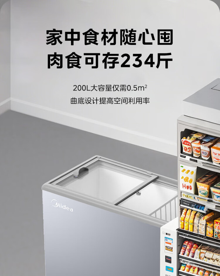 Midea's ready-made home freezer refrigerator ice cream cabinet small freezer display cabinet commercial large-capacity refrigerated fresh-keeping cabinet freezer dual-use first-class energy-saving display cabinet 100L comes with rollers upgraded with lock