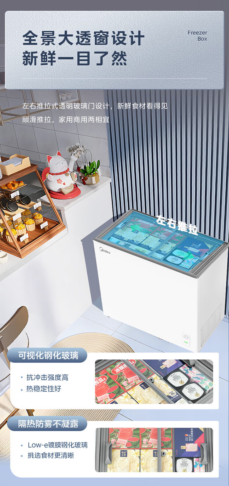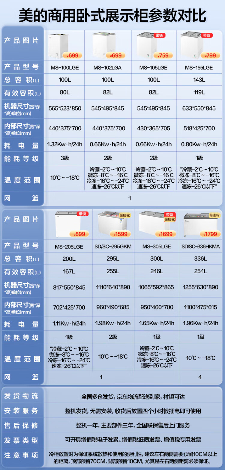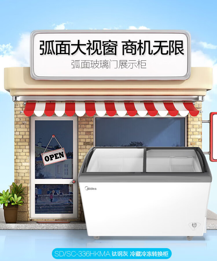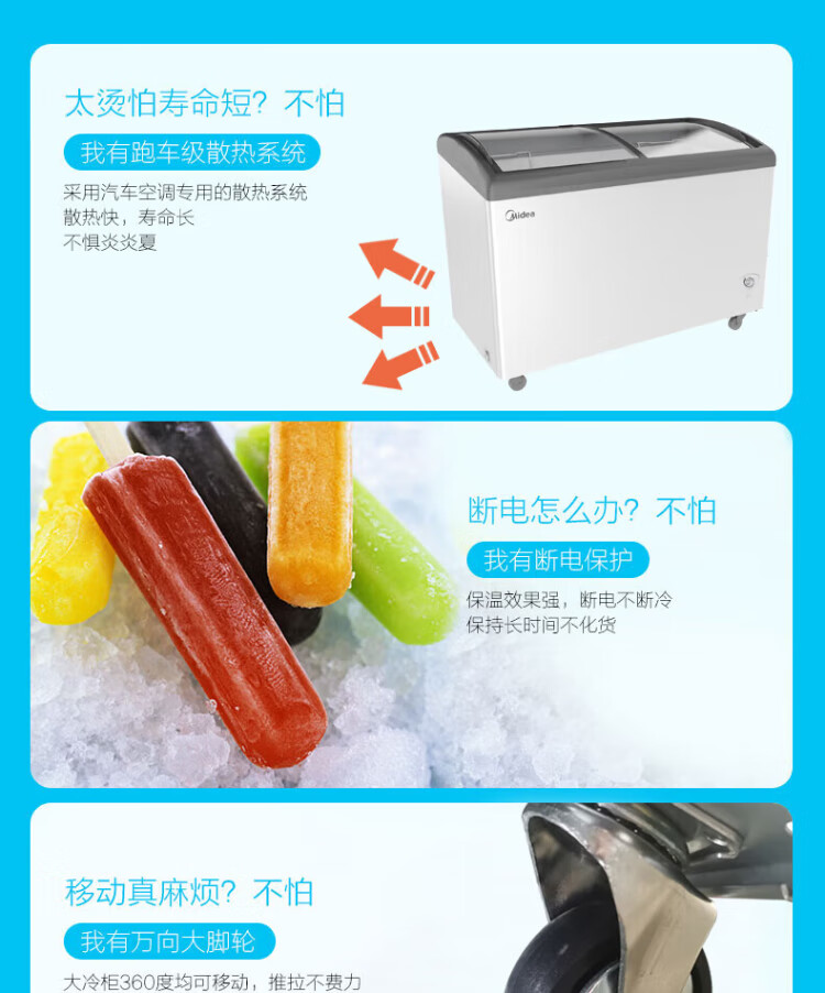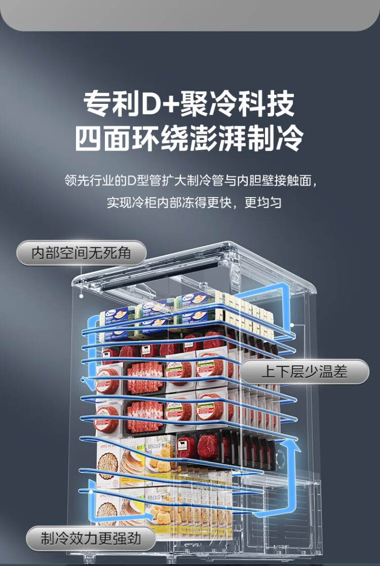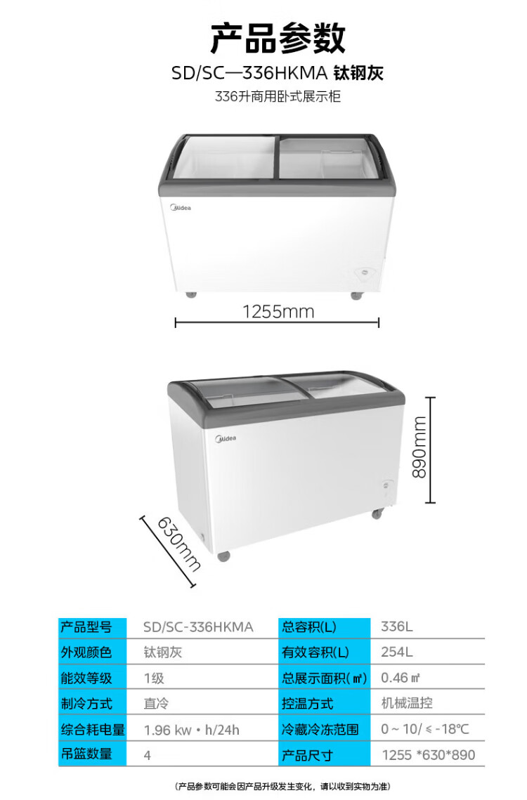 Midea's ready-made home freezer refrigerator ice cream cabinet small freezer display cabinet commercial large-capacity refrigerated fresh-keeping cabinet freezer dual-use first-class energy-saving display cabinet 100L comes with rollers upgraded with lock
