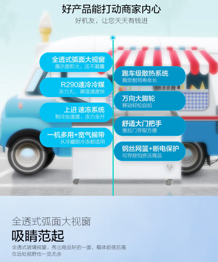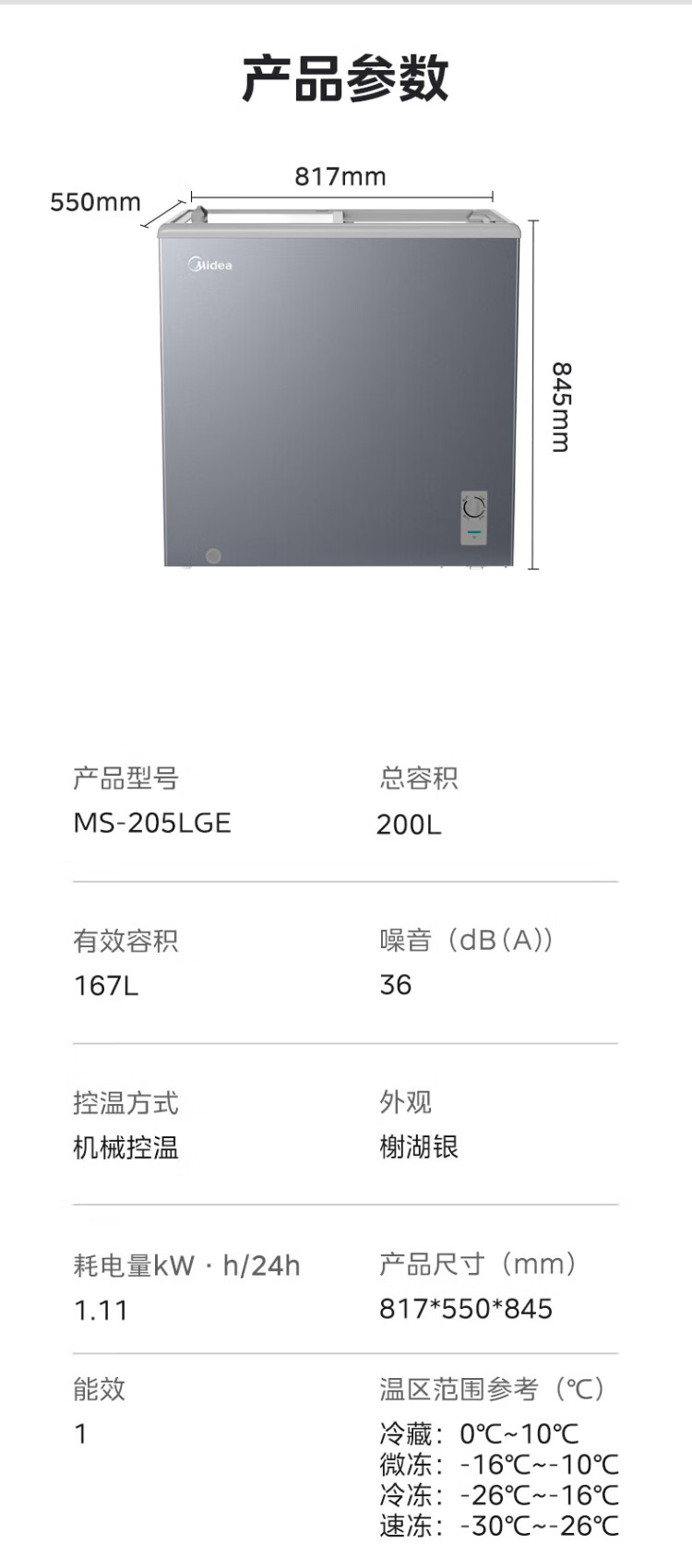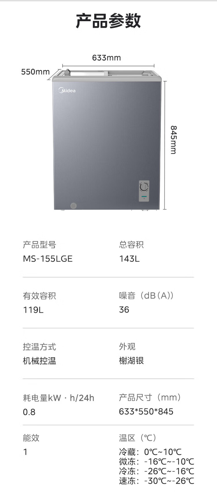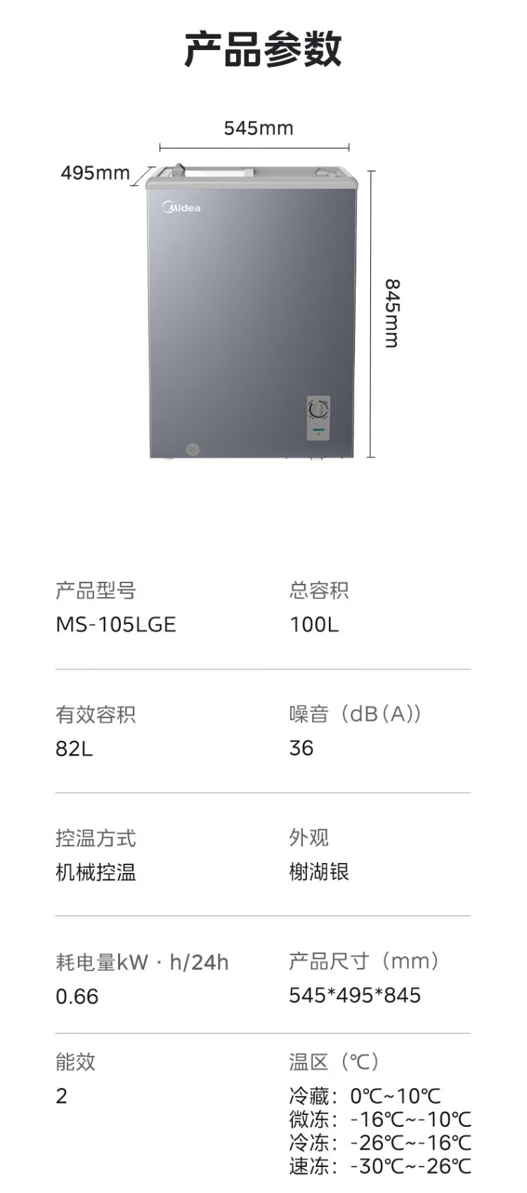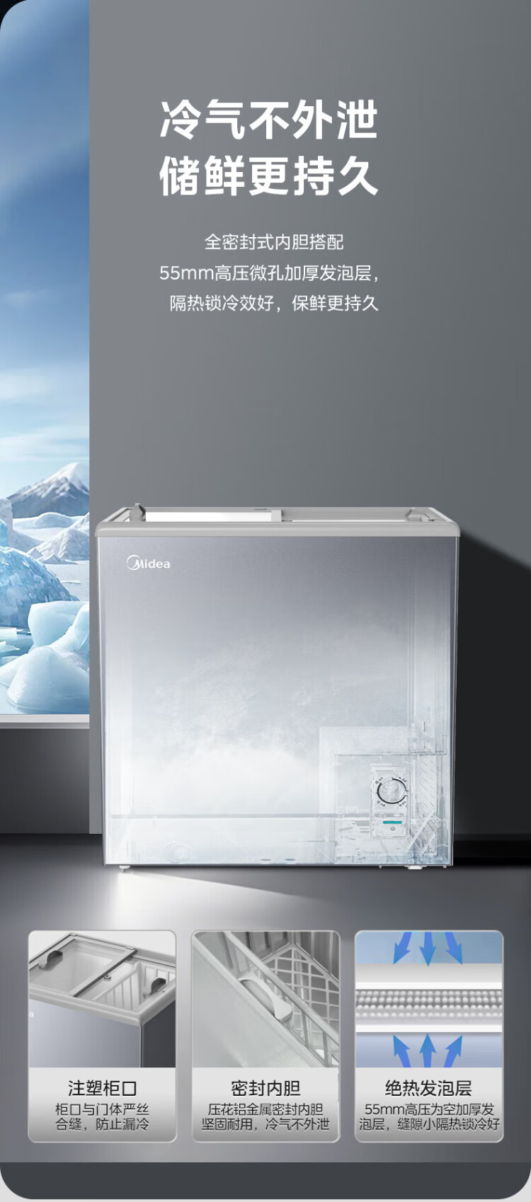 Midea's ready-made home freezer refrigerator ice cream cabinet small freezer display cabinet commercial large-capacity refrigerated fresh-keeping cabinet freezer dual-use first-class energy-saving display cabinet 100L comes with rollers upgraded with lock