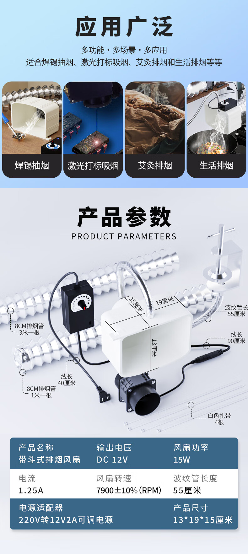 RSRDDY laser marking machine vacuum cleaner inkjet radium engraving smoke purification universal tube exhaust fan solder dust exhaust fan bracket adjustable violent smoke exhaust fan double blower + smoke pipe 1